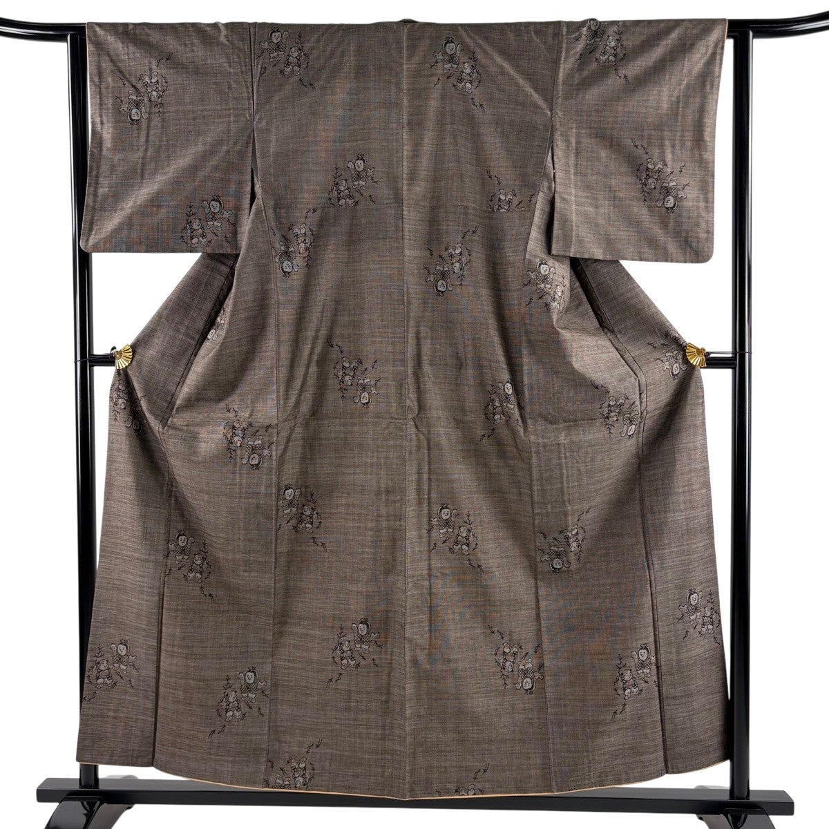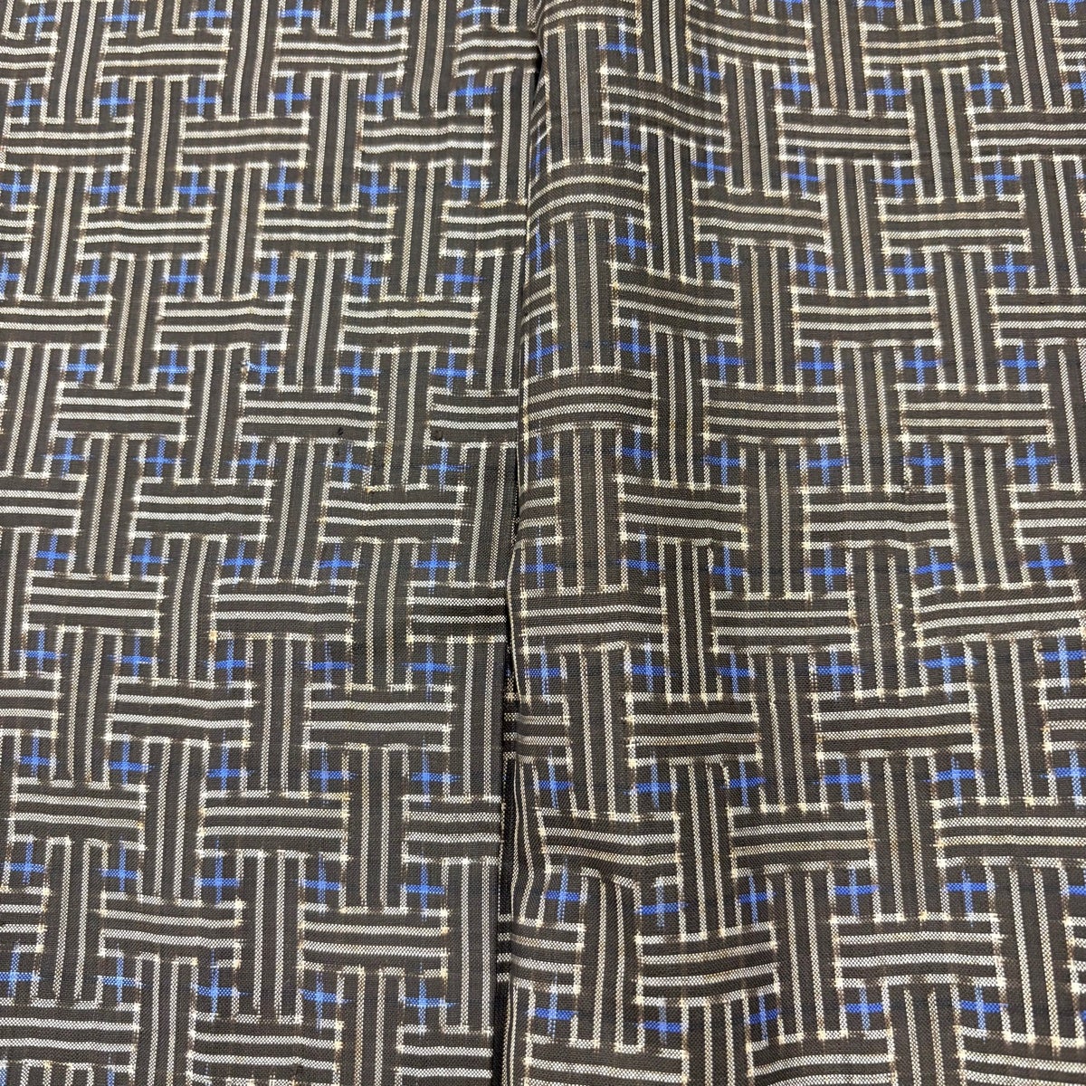 紬 身丈155cm 裄丈62cm S 袷 麻の葉 短冊 6 焦茶色 正絹 秀品