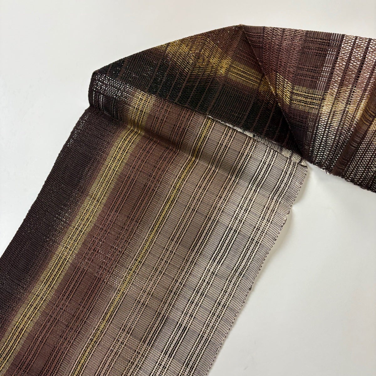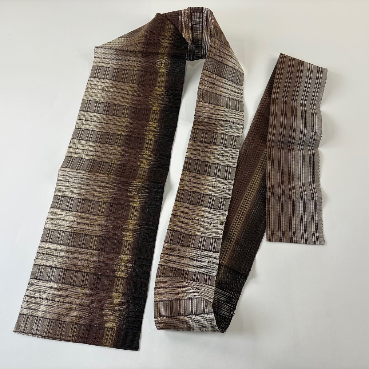 70%OFF 【美品】 袋帯 秀品 縞 金通し 焦茶色 全通 正絹 K70