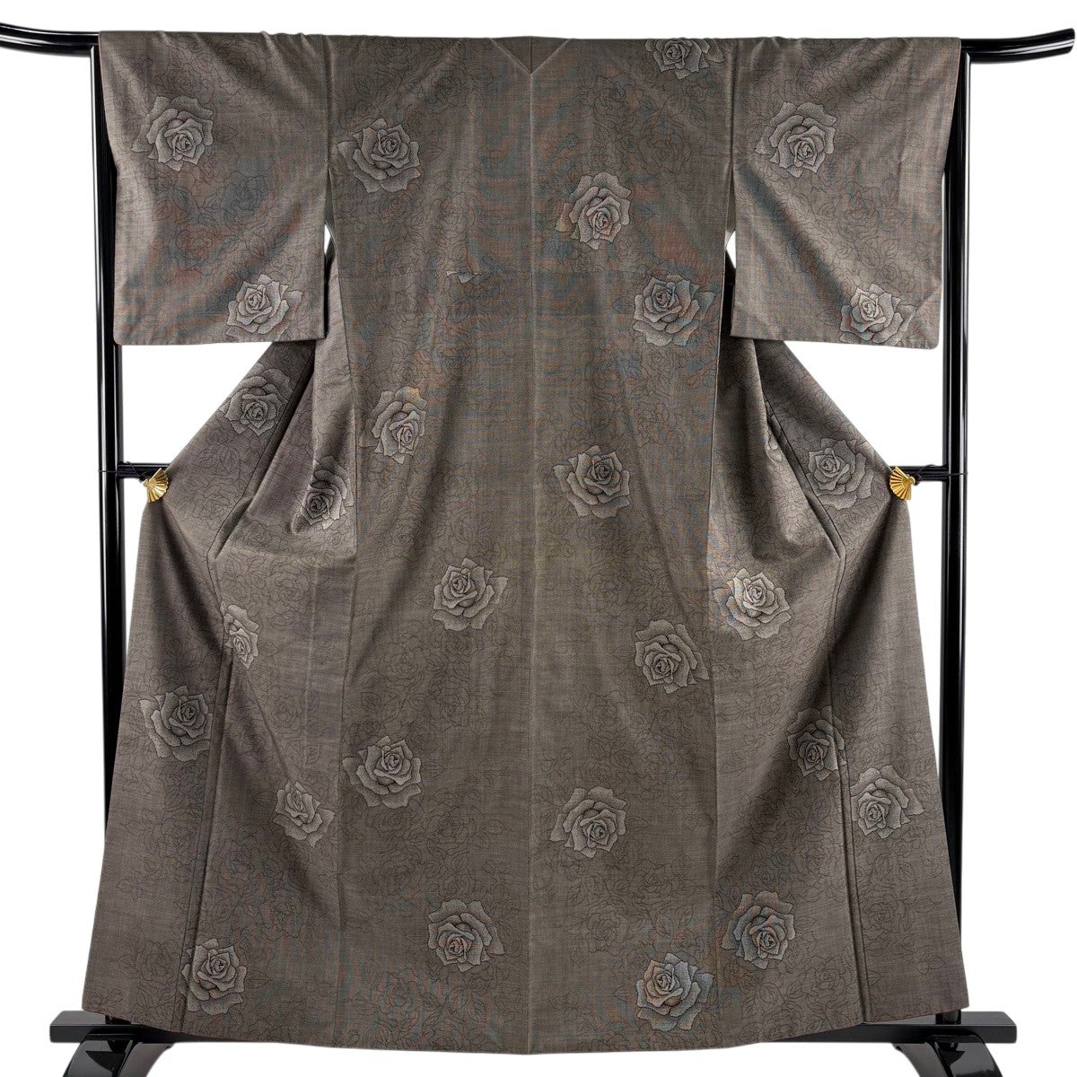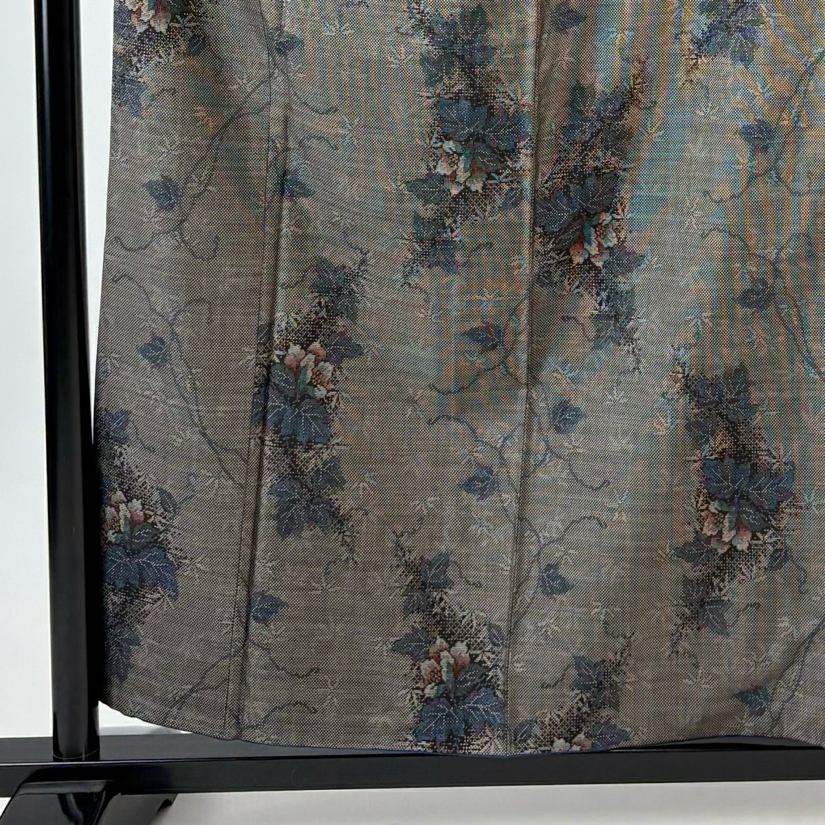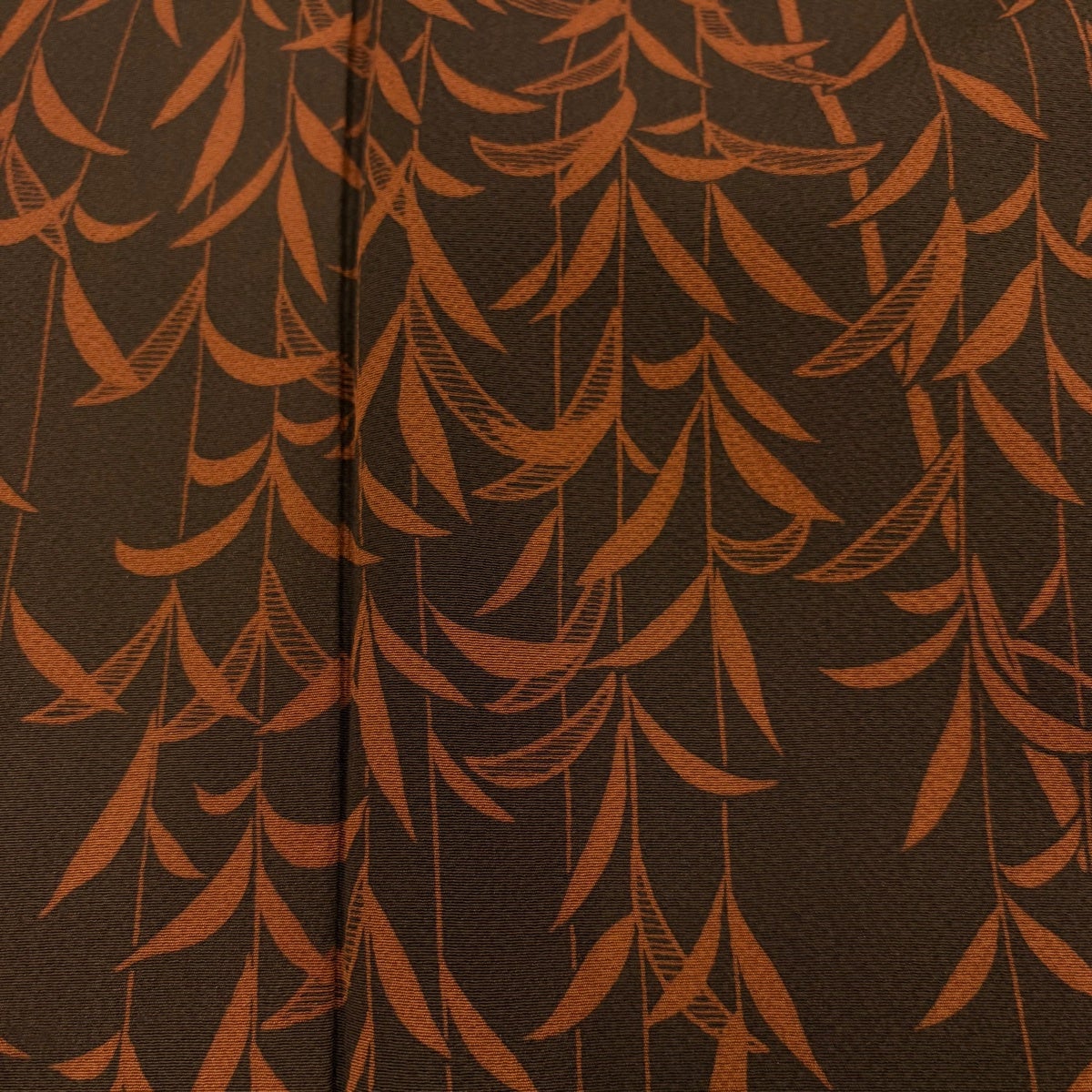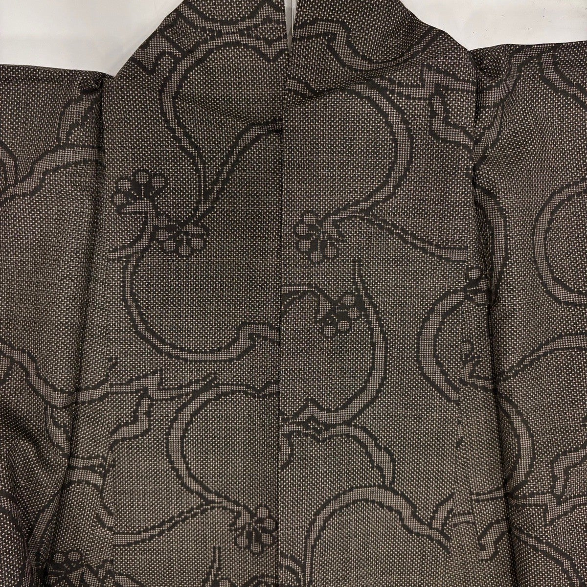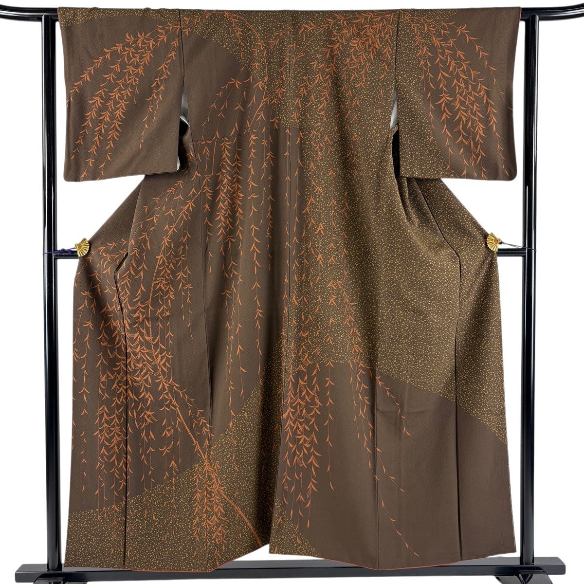 【美品】 お召 身丈164.5cm 裄丈67cm M 袷 麻の葉 焦茶色 正絹 逸品