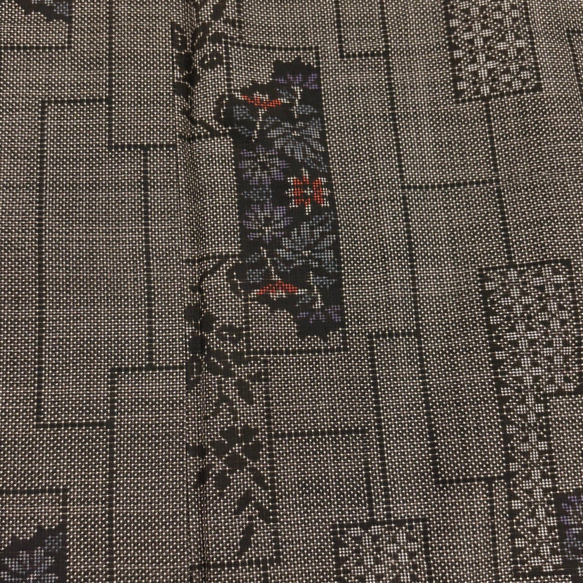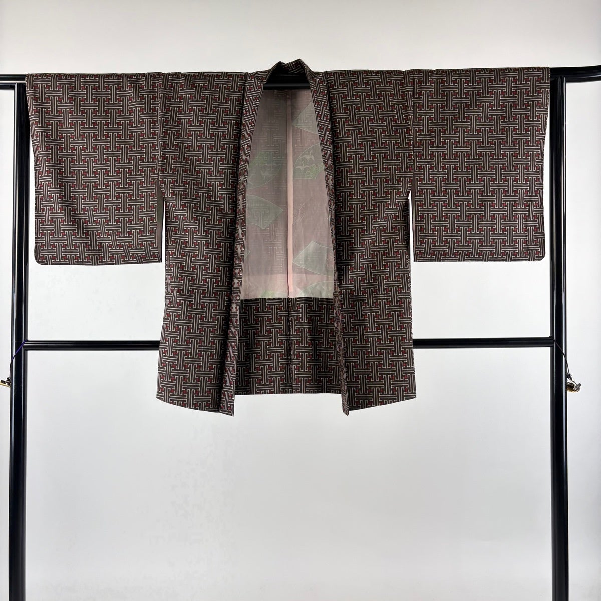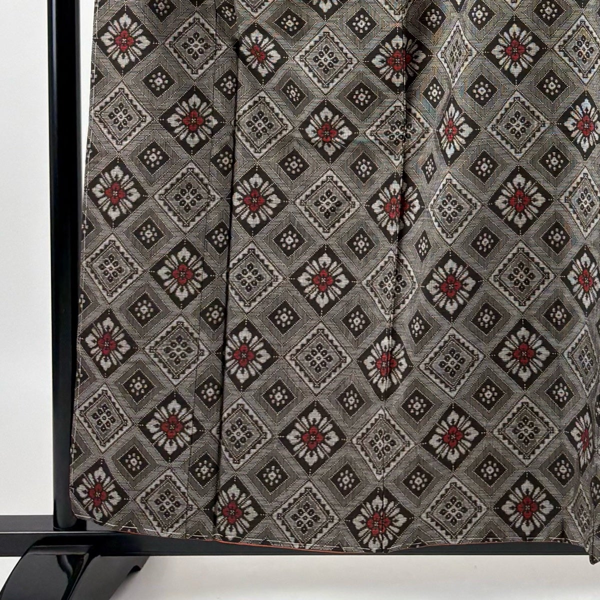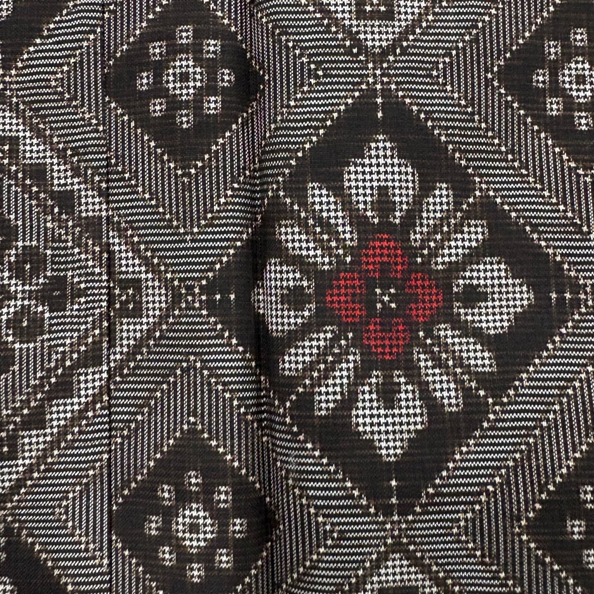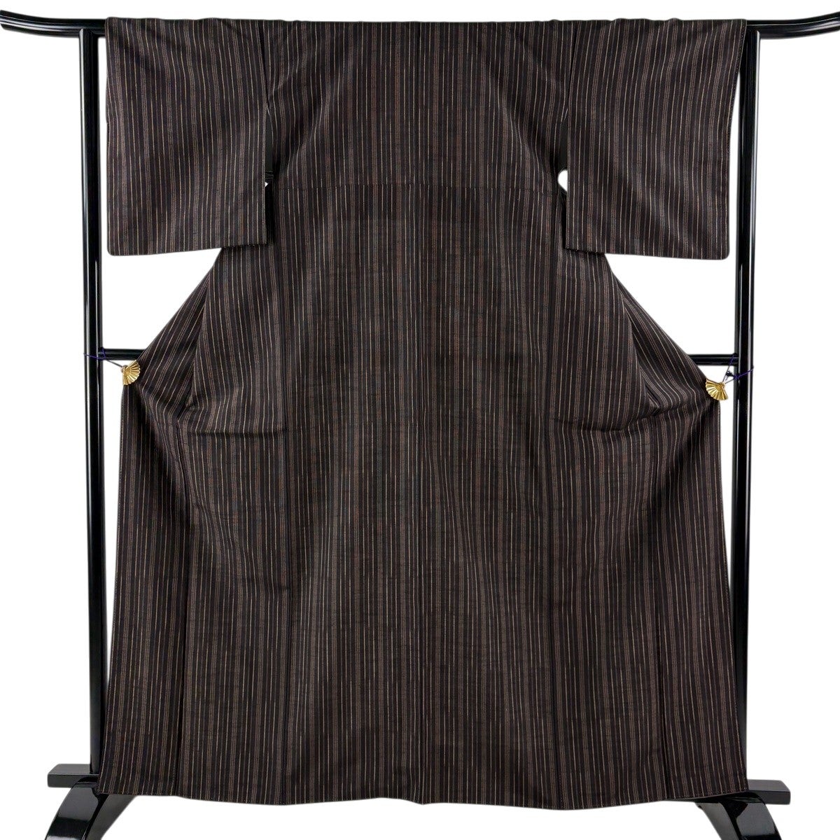紬 身丈152cm 裄丈64cm M 袷 アンサンブル 幾何学 焦茶色 正絹 逸品