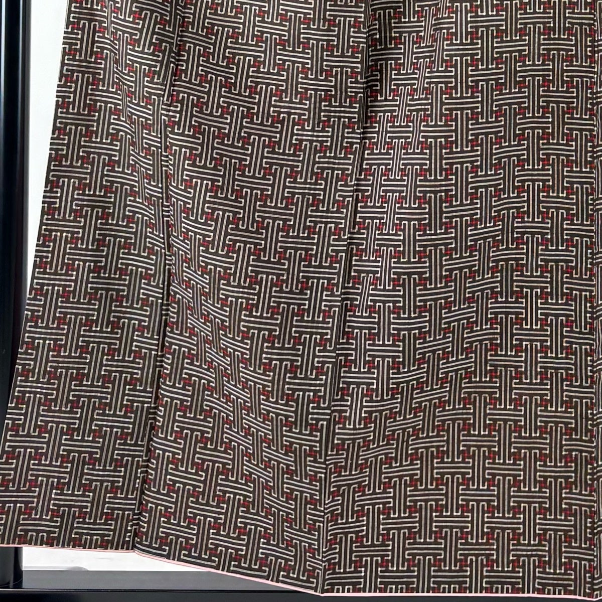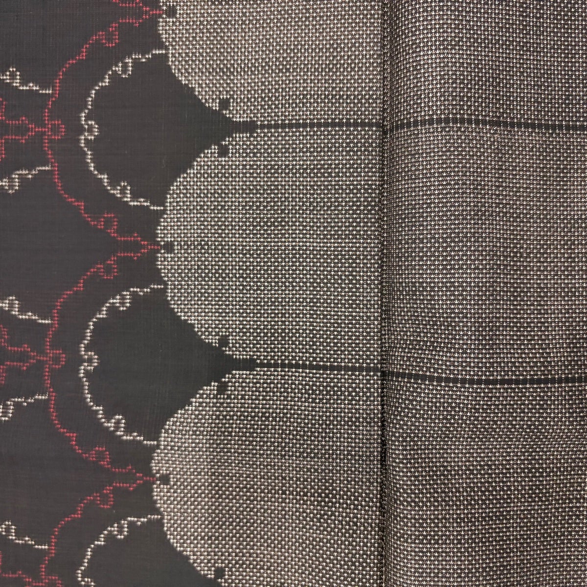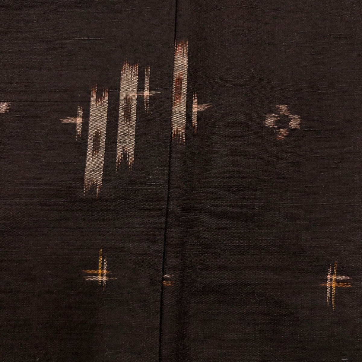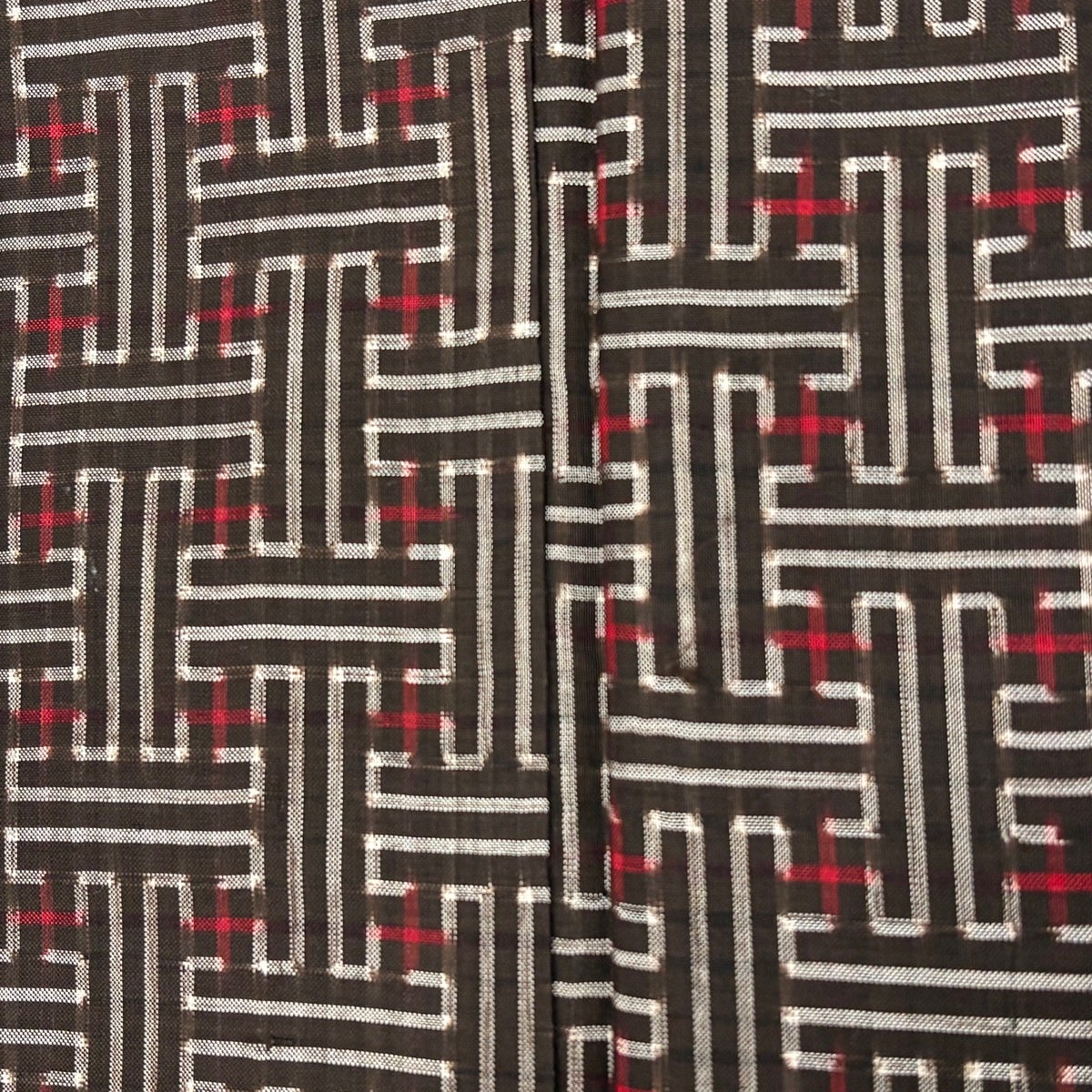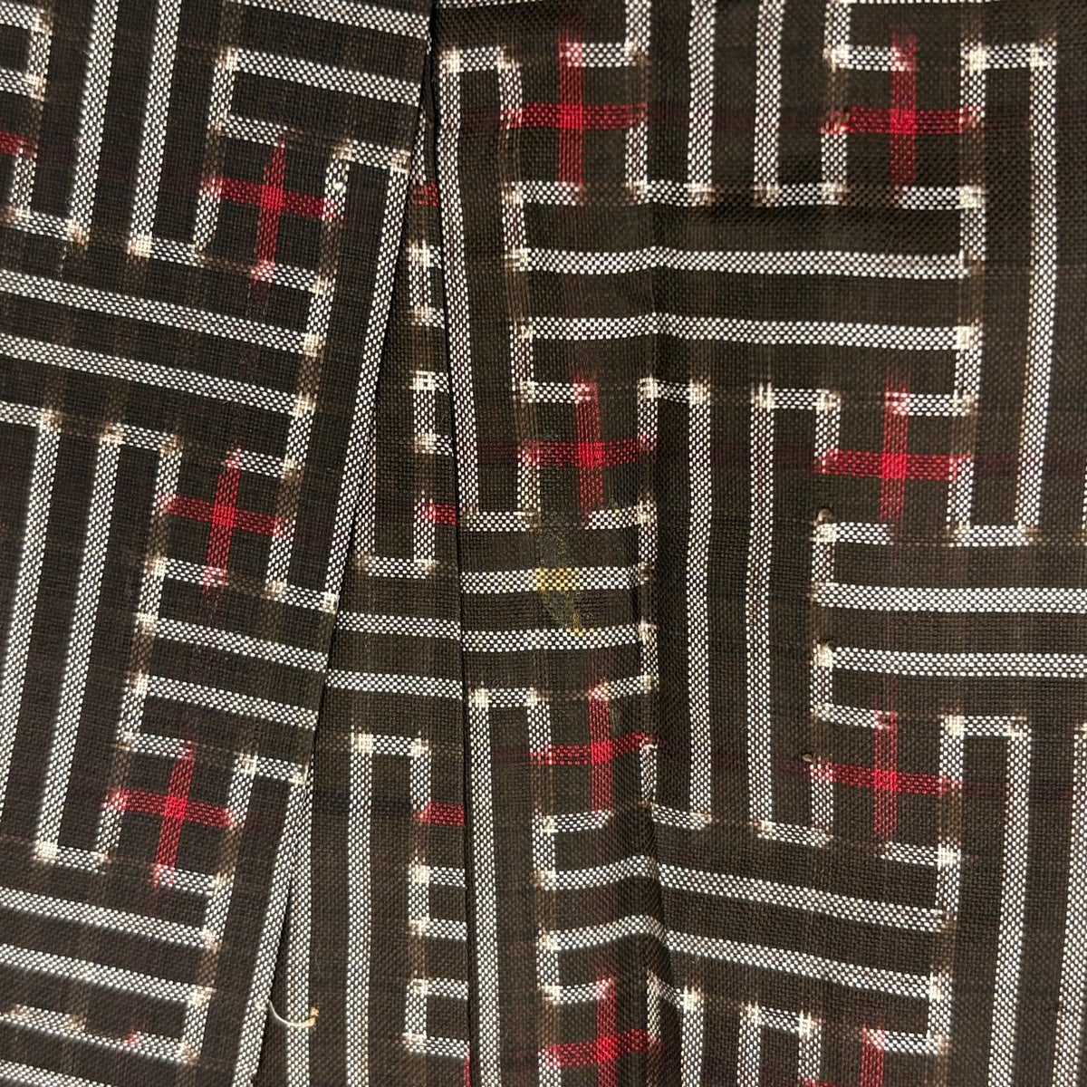 紬 身丈152cm 裄丈64cm M 袷 アンサンブル 幾何学 焦茶色 正絹 逸品
