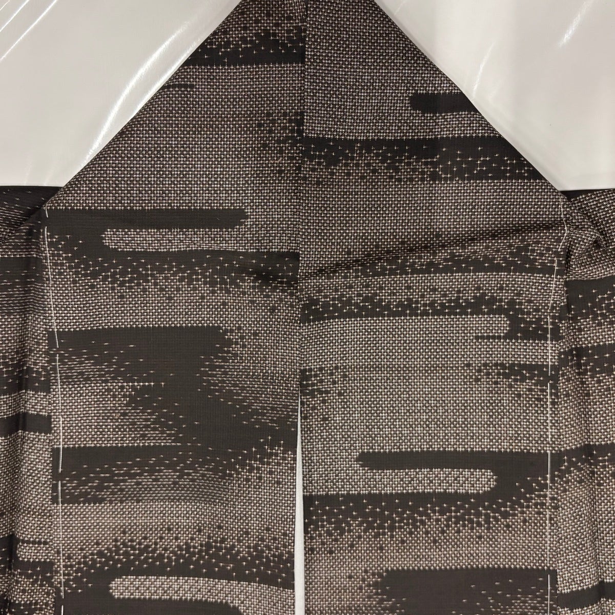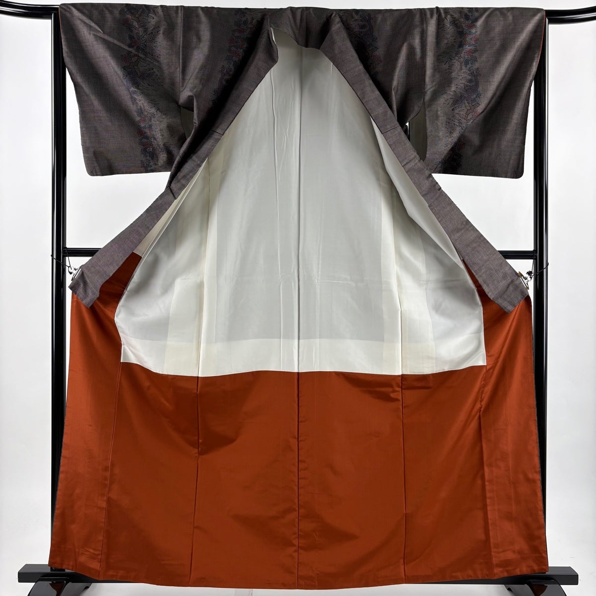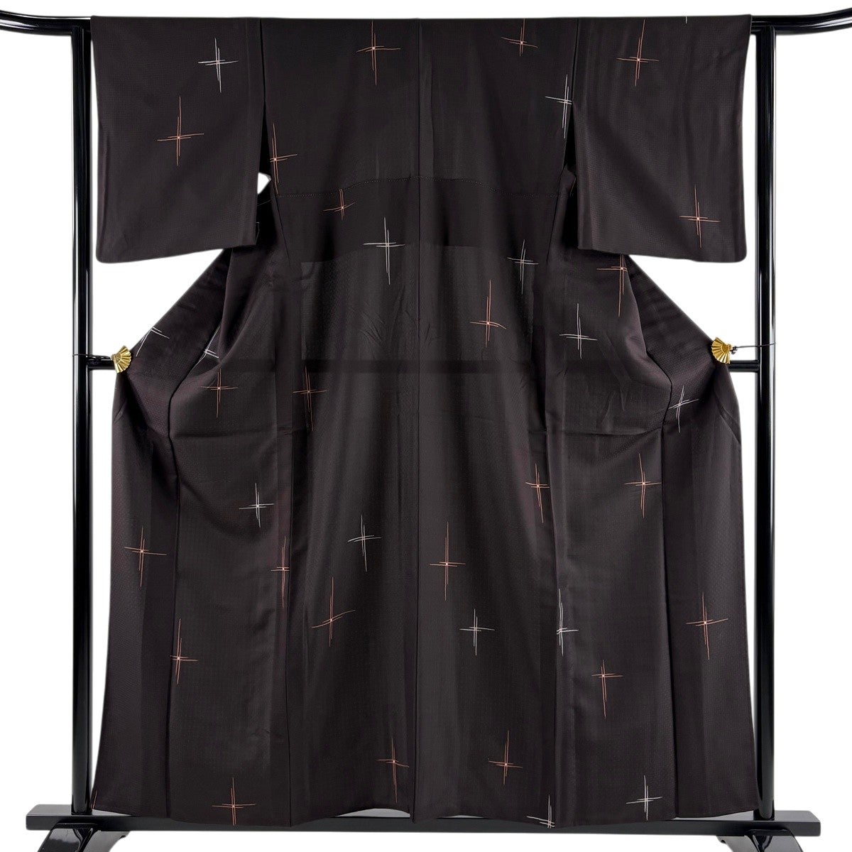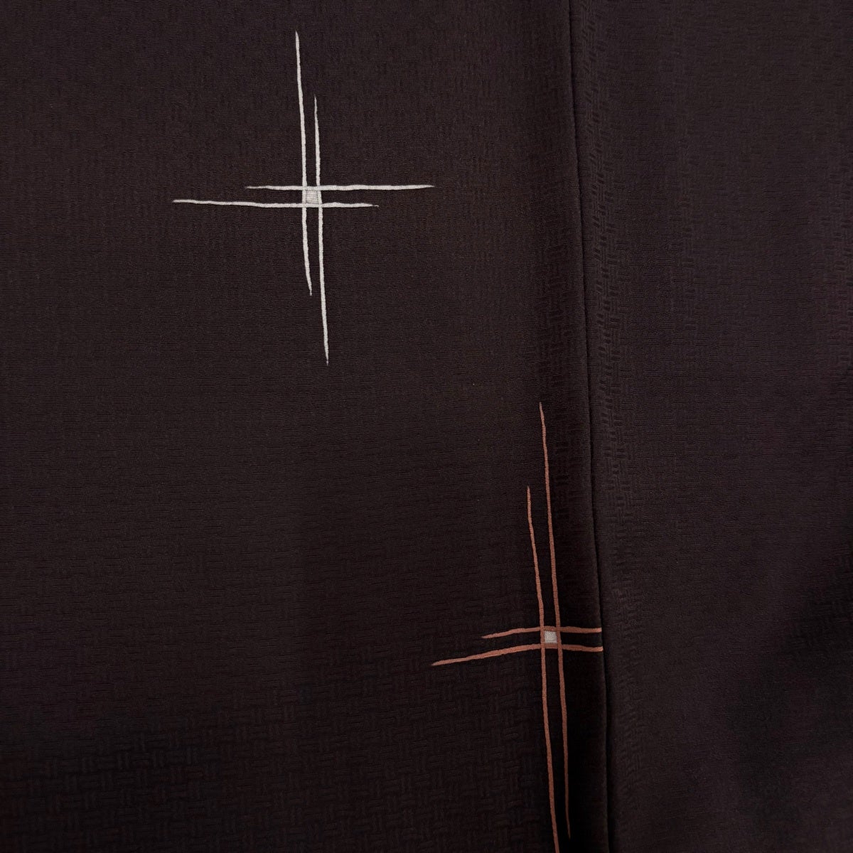 付下げ 身丈171cm 裄丈66cm M 袷 紬地 幾何学 刺繍 焦茶色 正絹 秀品