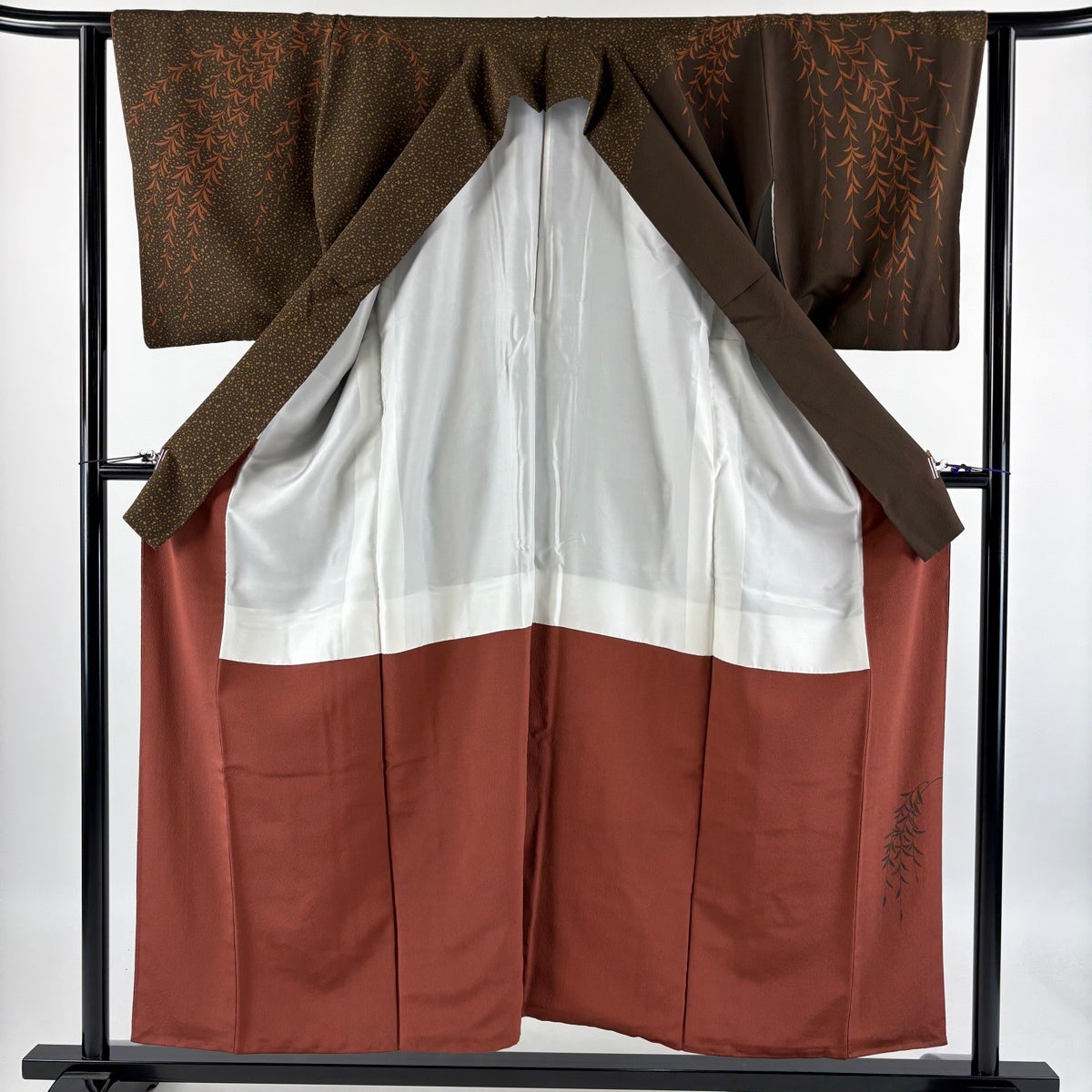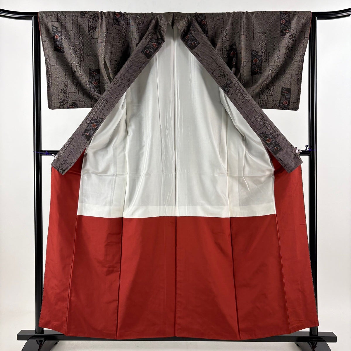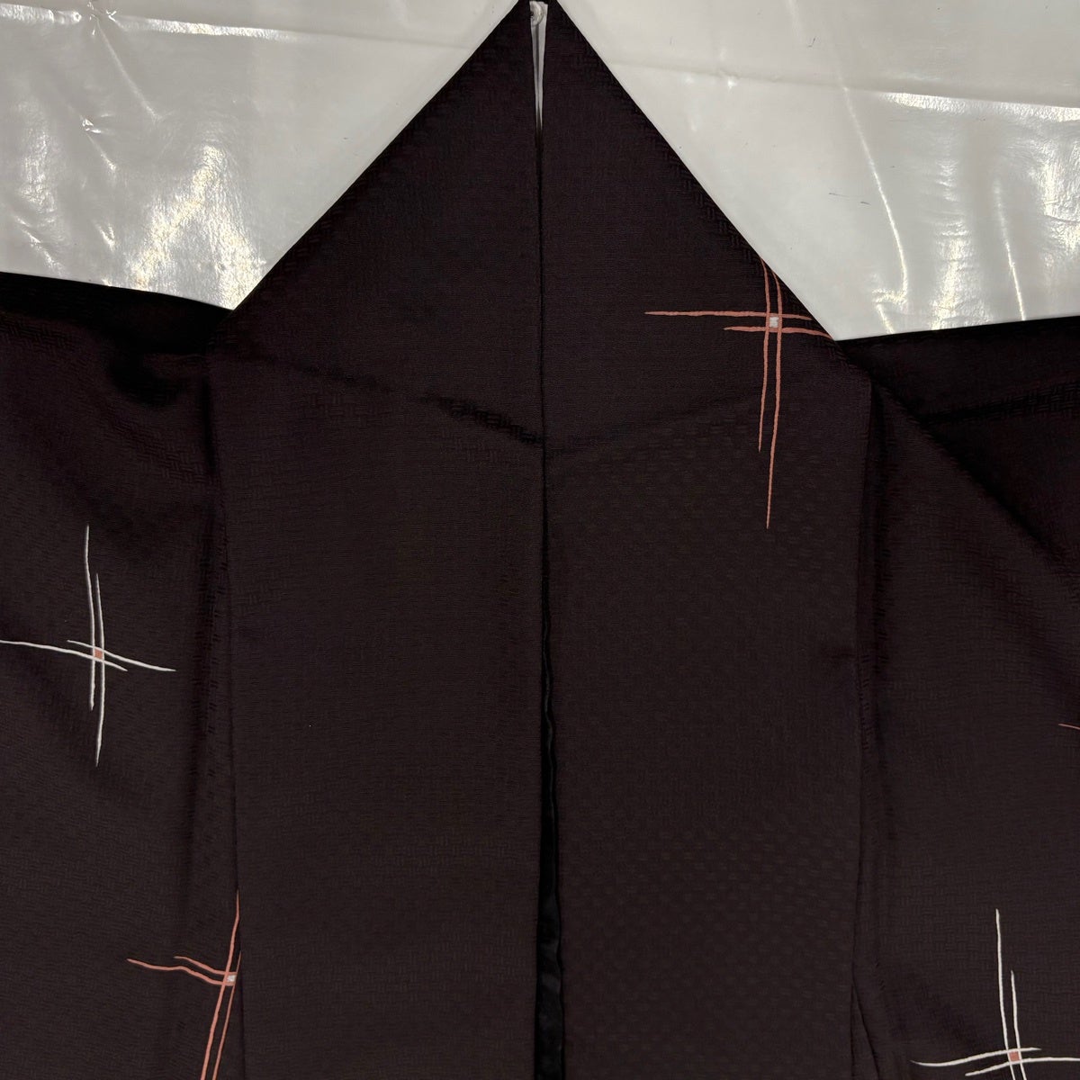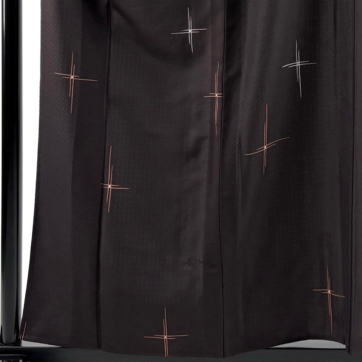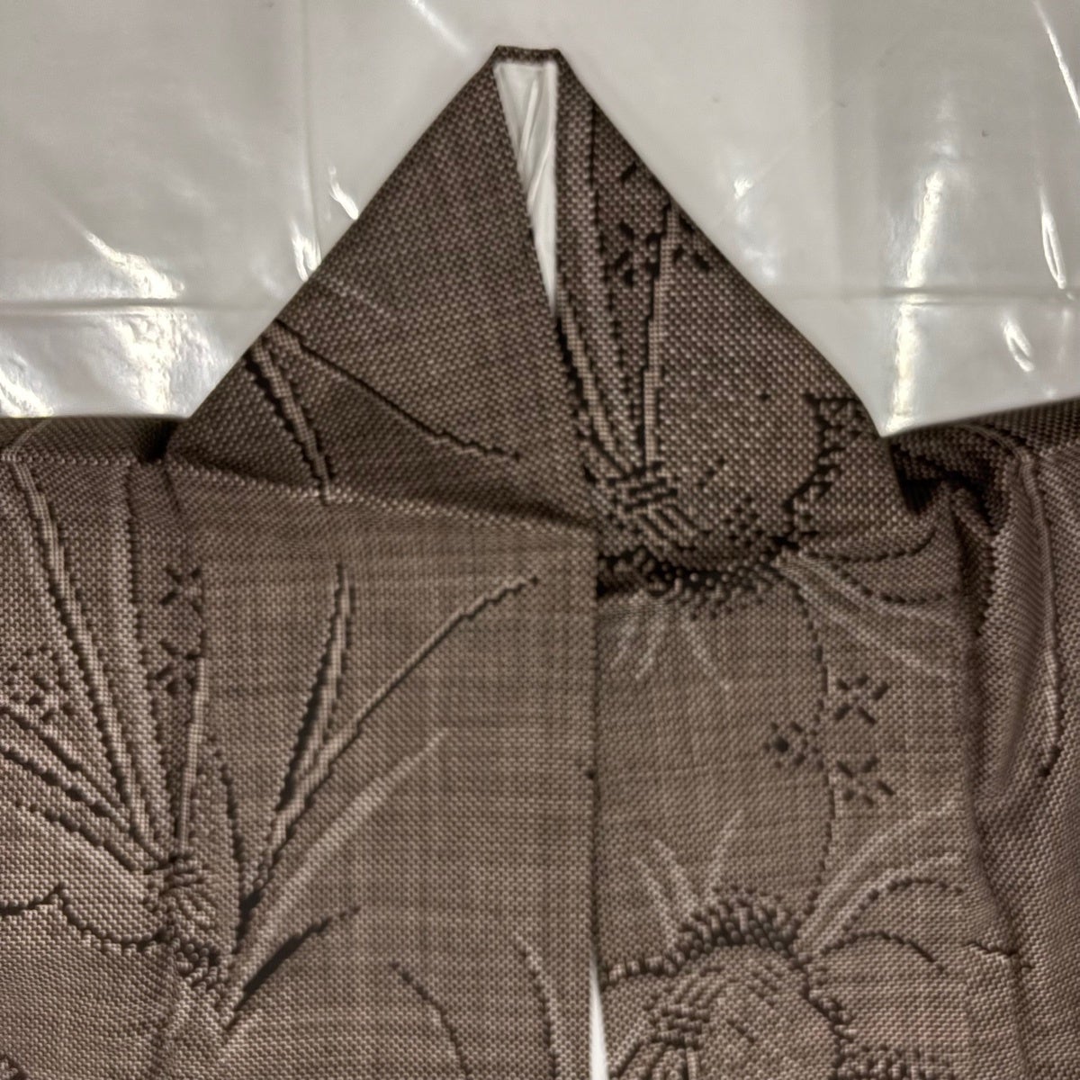 付下げ 身丈171cm 裄丈66cm M 袷 紬地 幾何学 刺繍 焦茶色 正絹 秀品