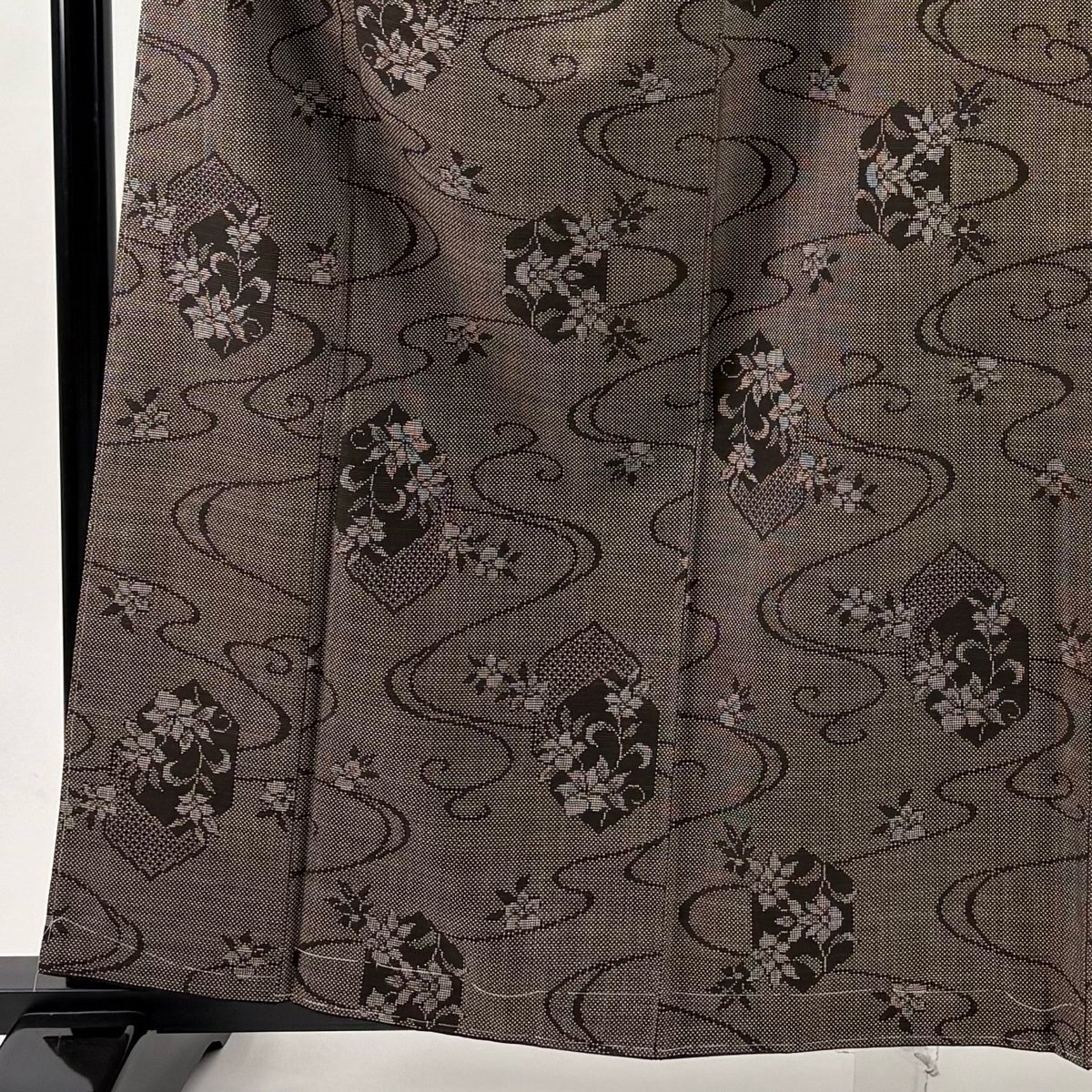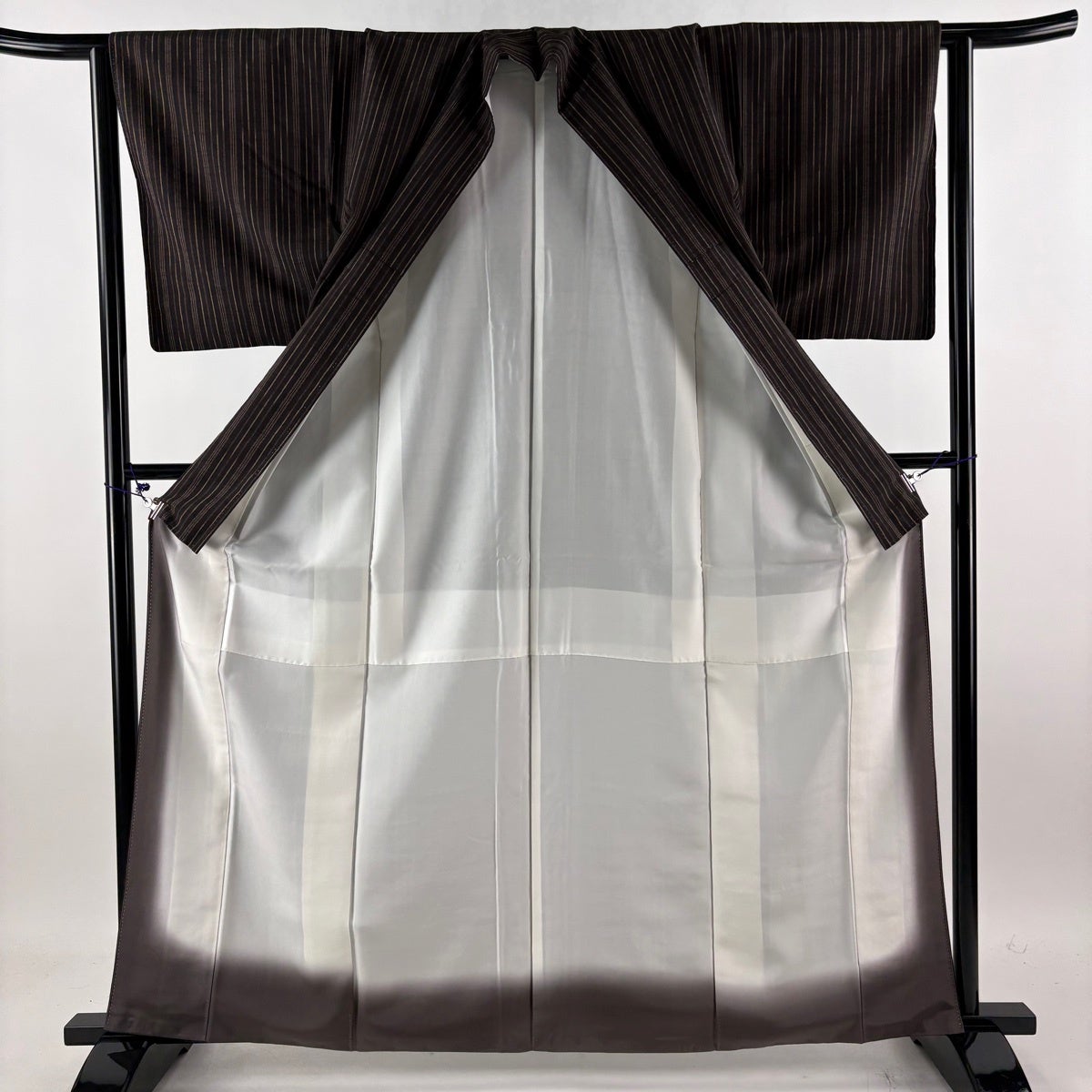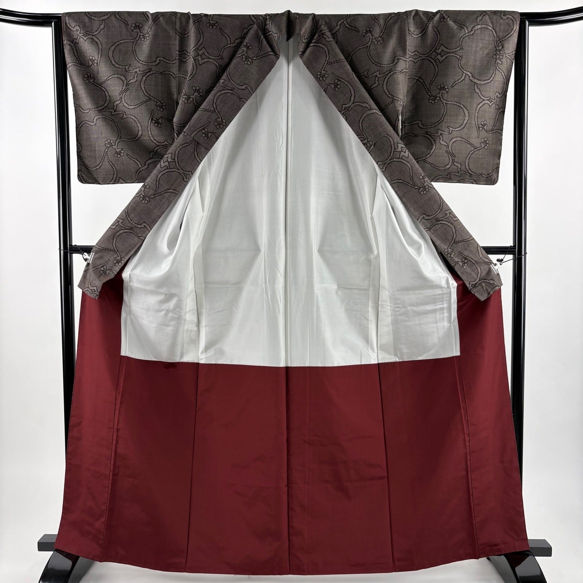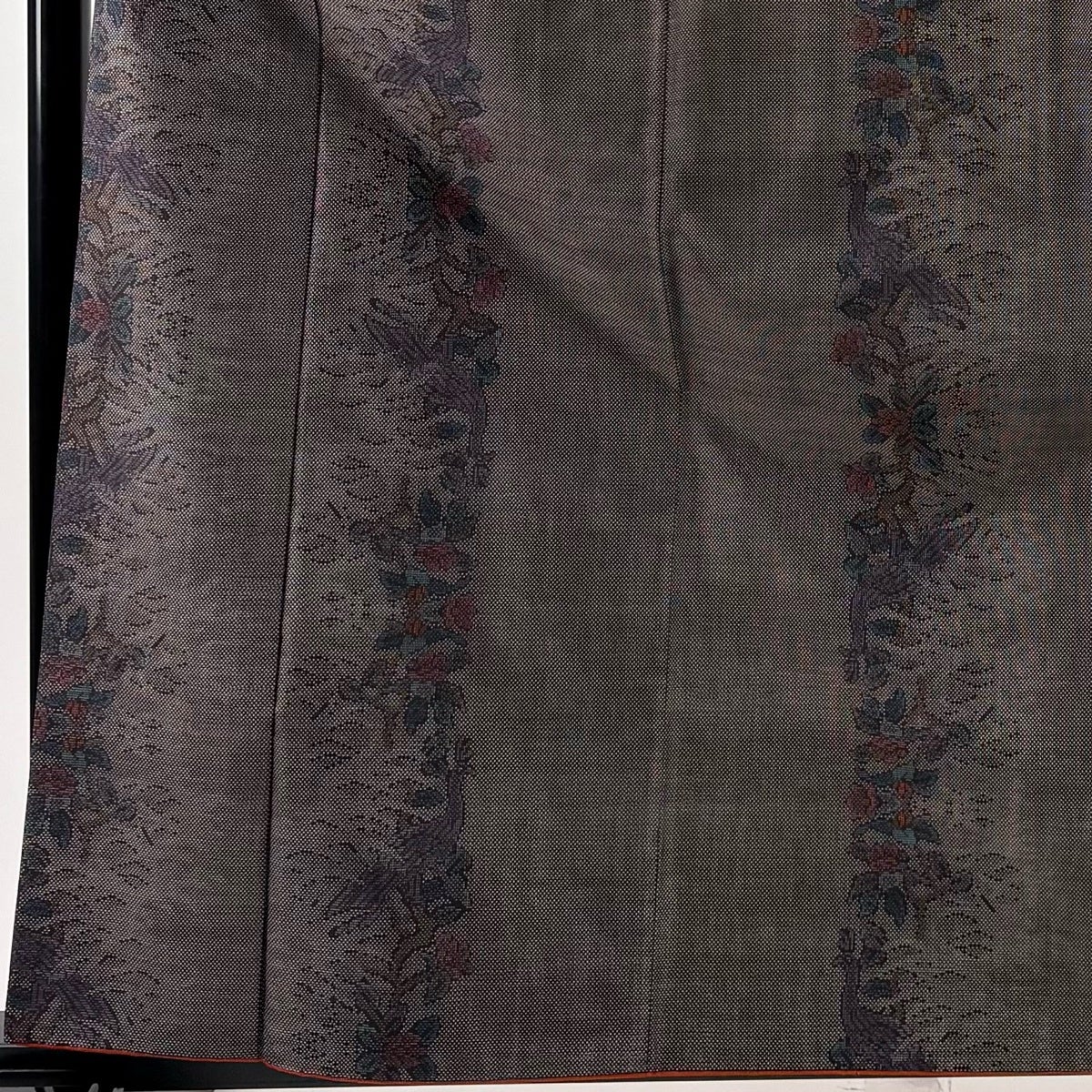 付下げ 身丈171cm 裄丈66cm M 袷 紬地 幾何学 刺繍 焦茶色 正絹 秀品