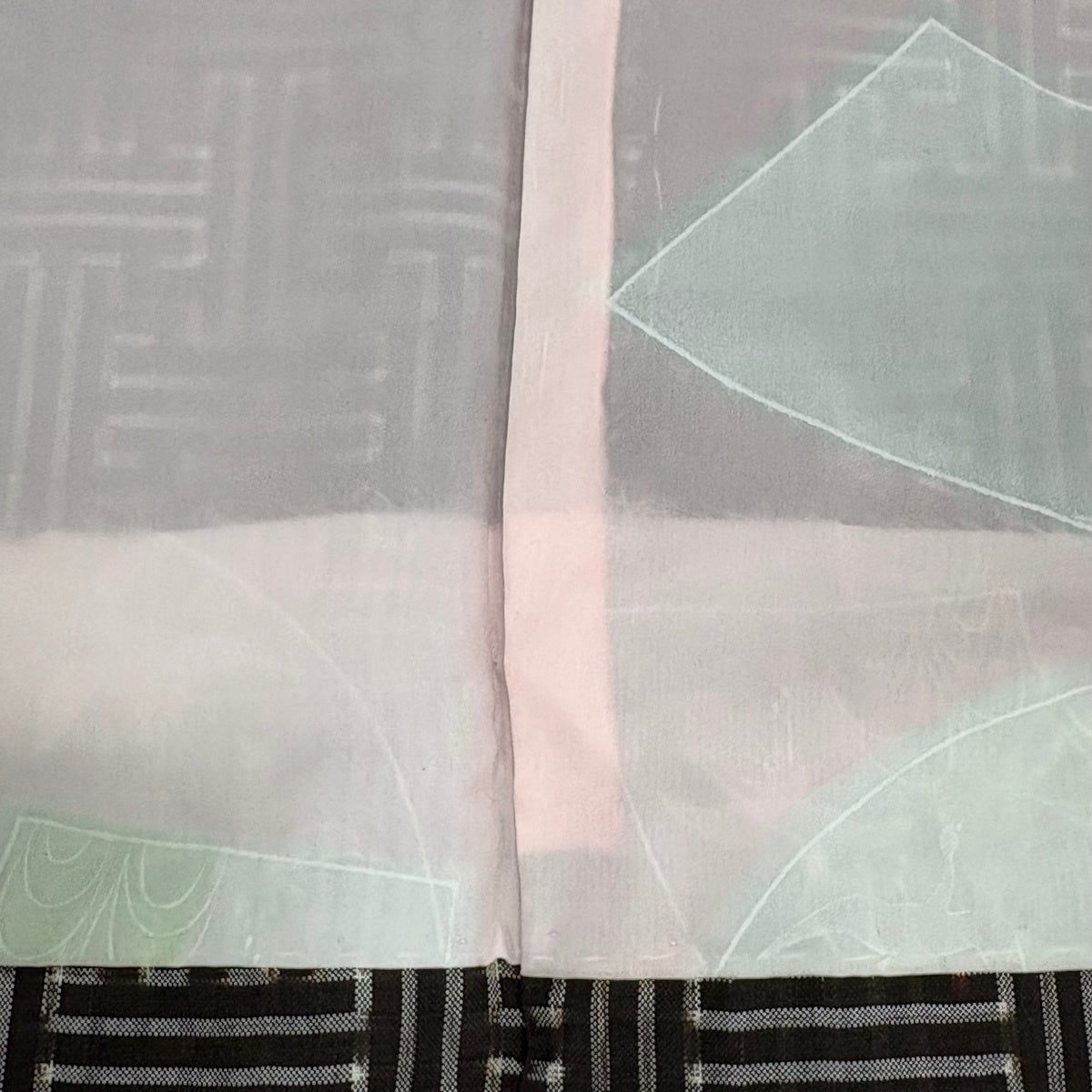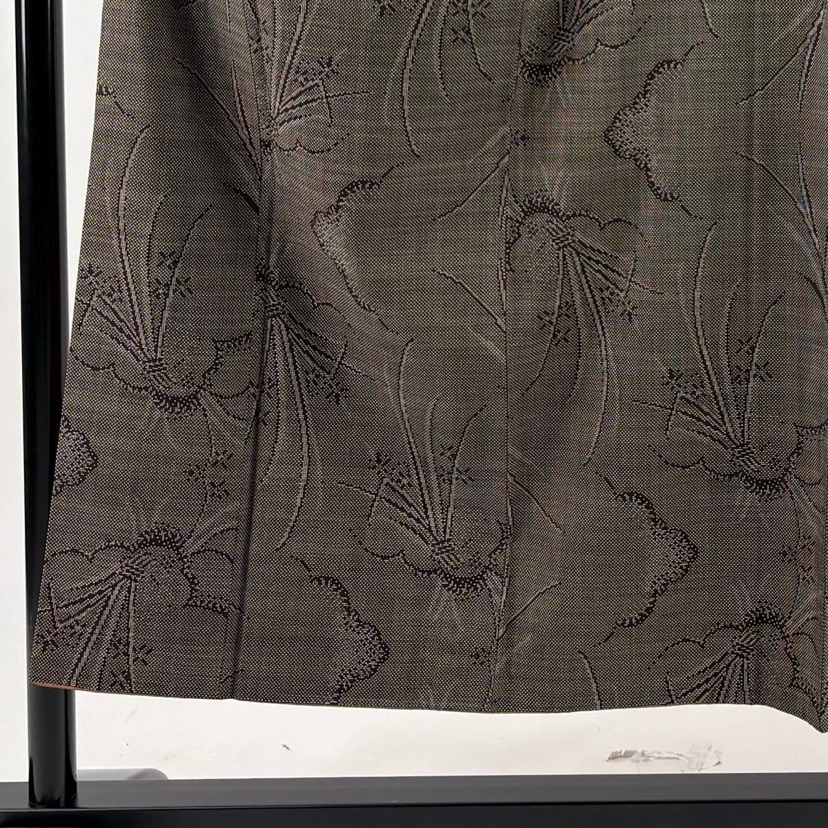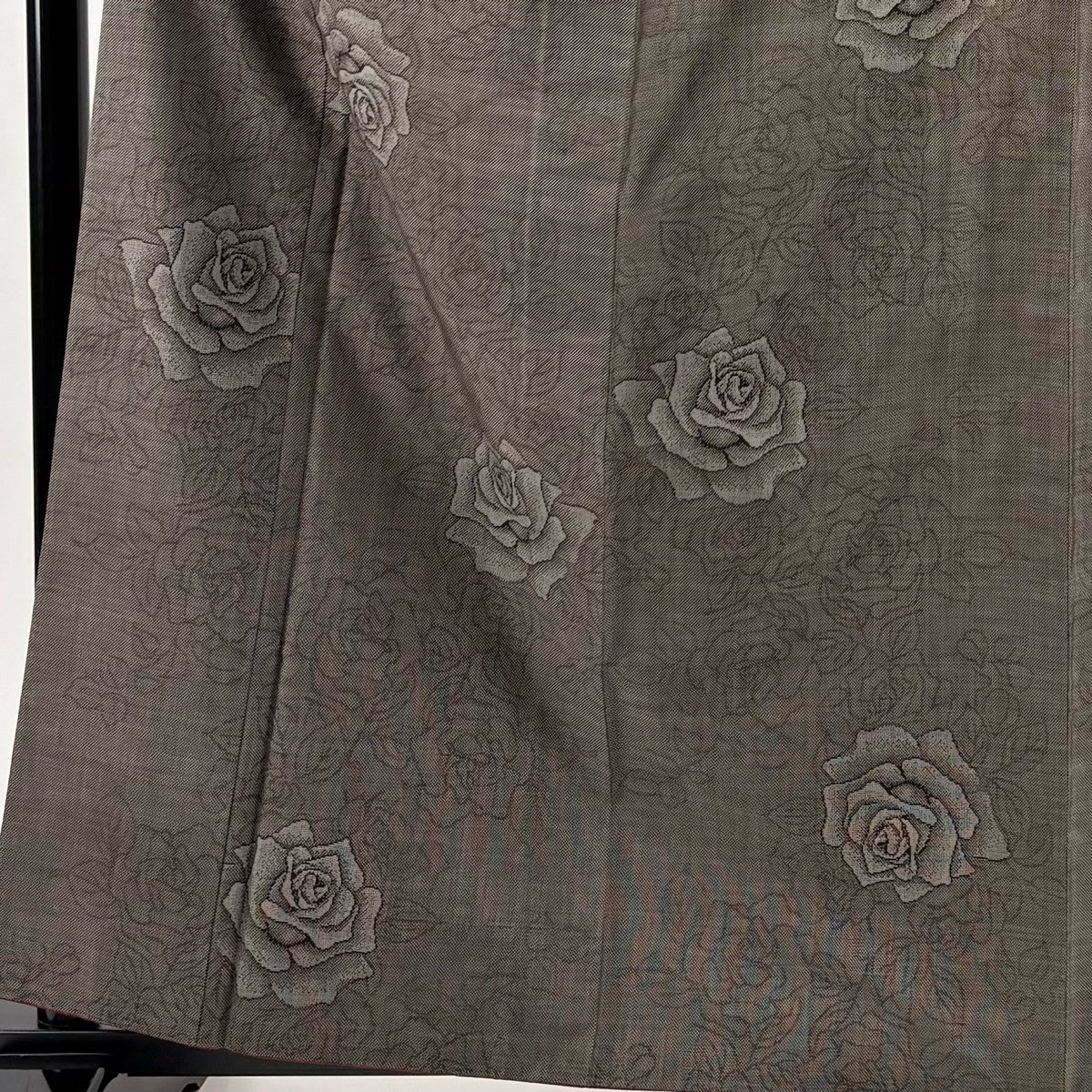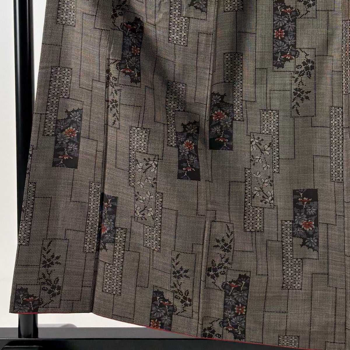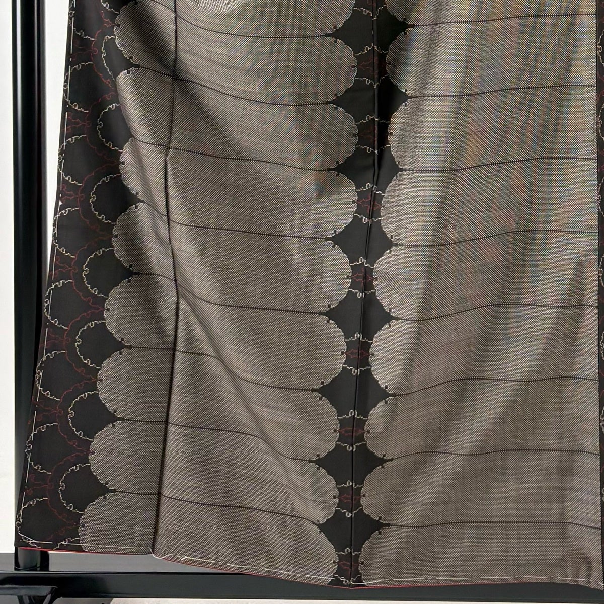 付下げ 身丈171cm 裄丈66cm M 袷 紬地 幾何学 刺繍 焦茶色 正絹 秀品