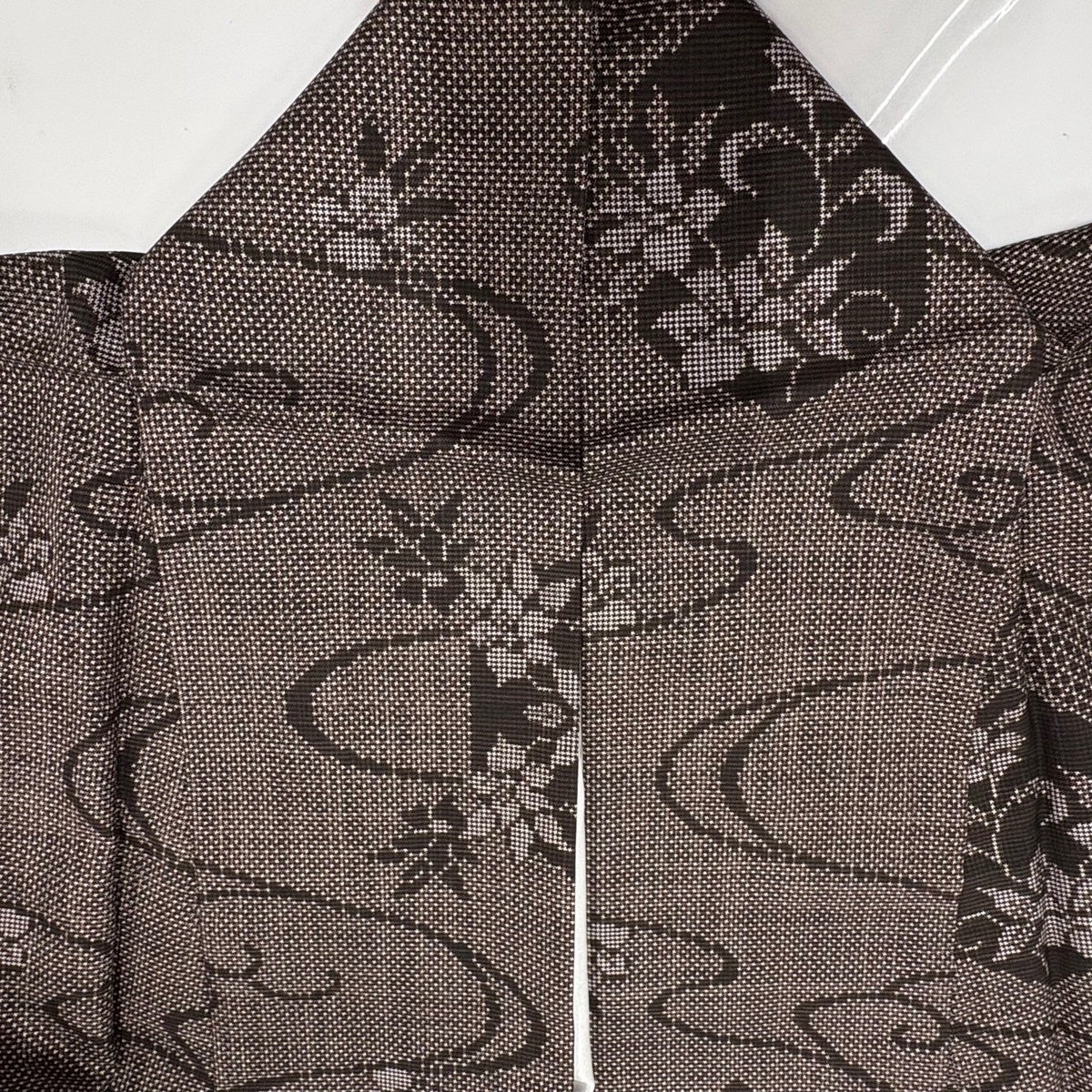 【美品】 紬 身丈158.5cm 裄丈64.5cm M 袷 短冊 菊 焦茶色 正絹 秀品