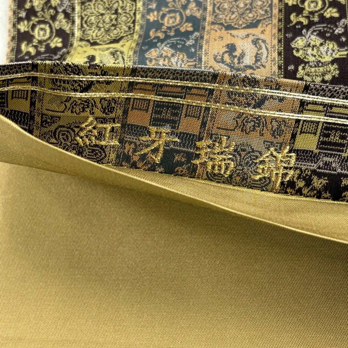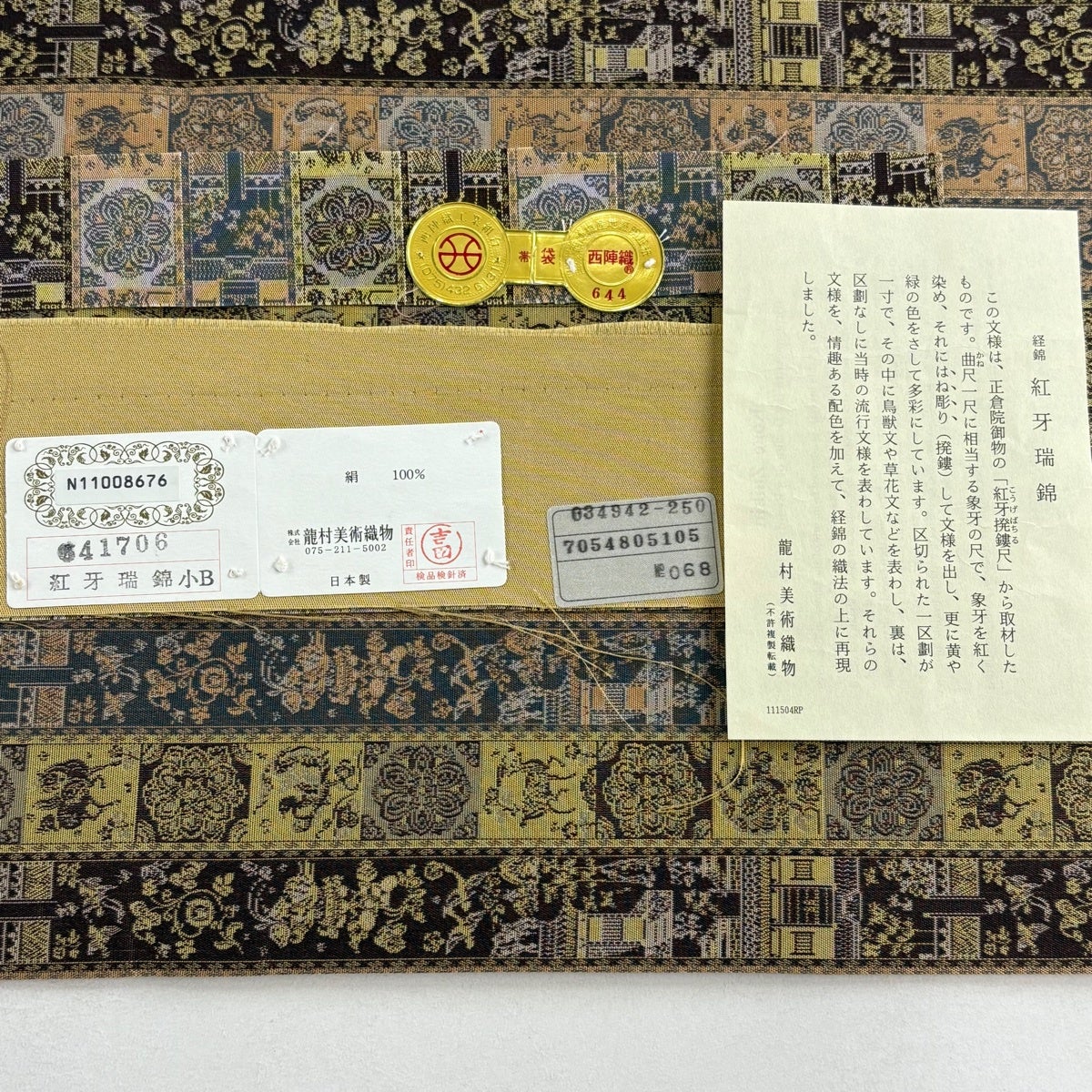 【美品】 袋帯 逸品 龍村美術織物 落款あり 証紙あり 紅牙瑞錦 焦茶色 全通 正絹