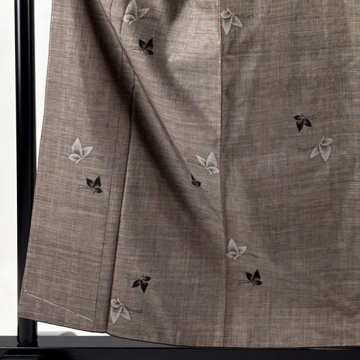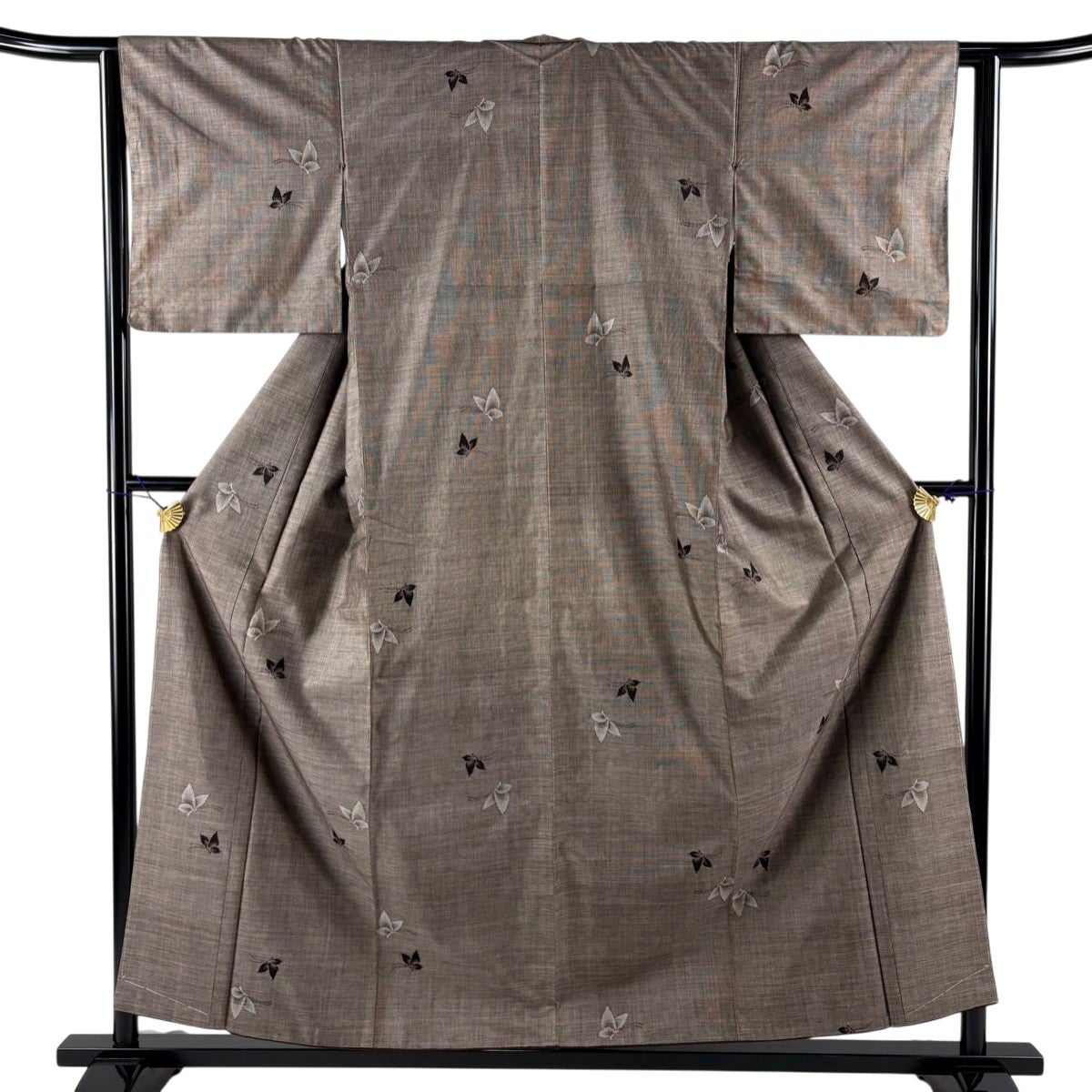 【美品】 紬 身丈164.5cm 裄丈68cm L 袷 蝶 焦茶色 正絹 秀品