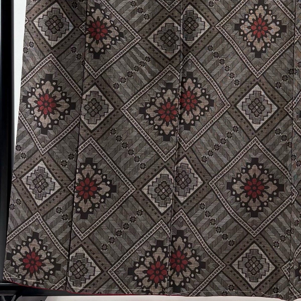紬 身丈165cm 裄丈65.5cm M 薄物 夏紬 幾何学 焦茶色 正絹 秀品