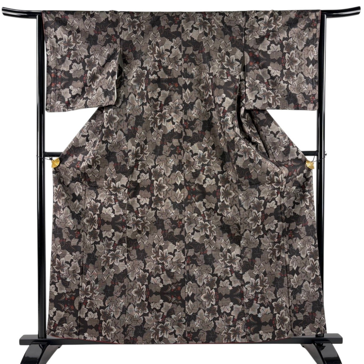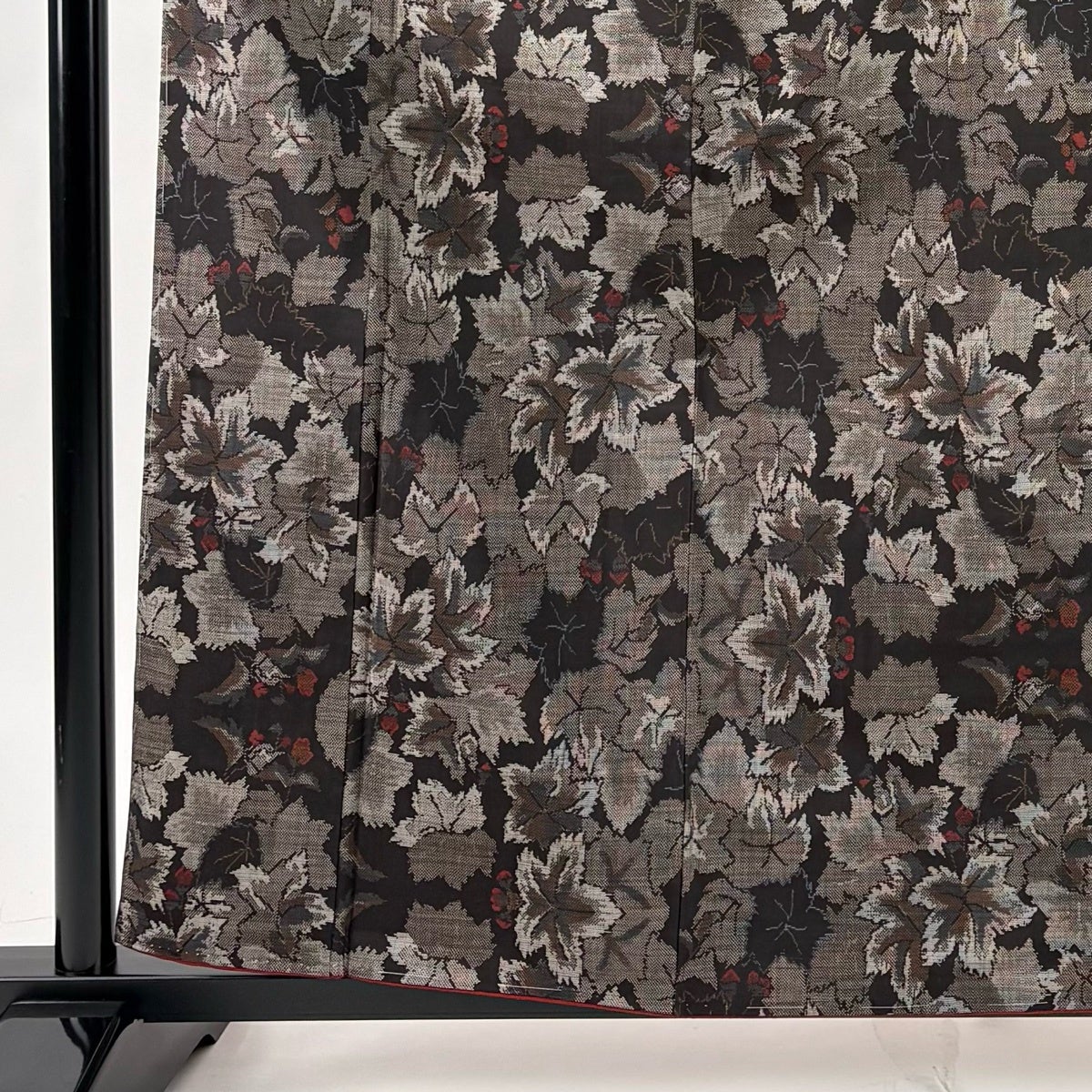 【美品】 紬 身丈160cm 裄丈62.5cm S 袷 葉 焦茶色 正絹 秀品