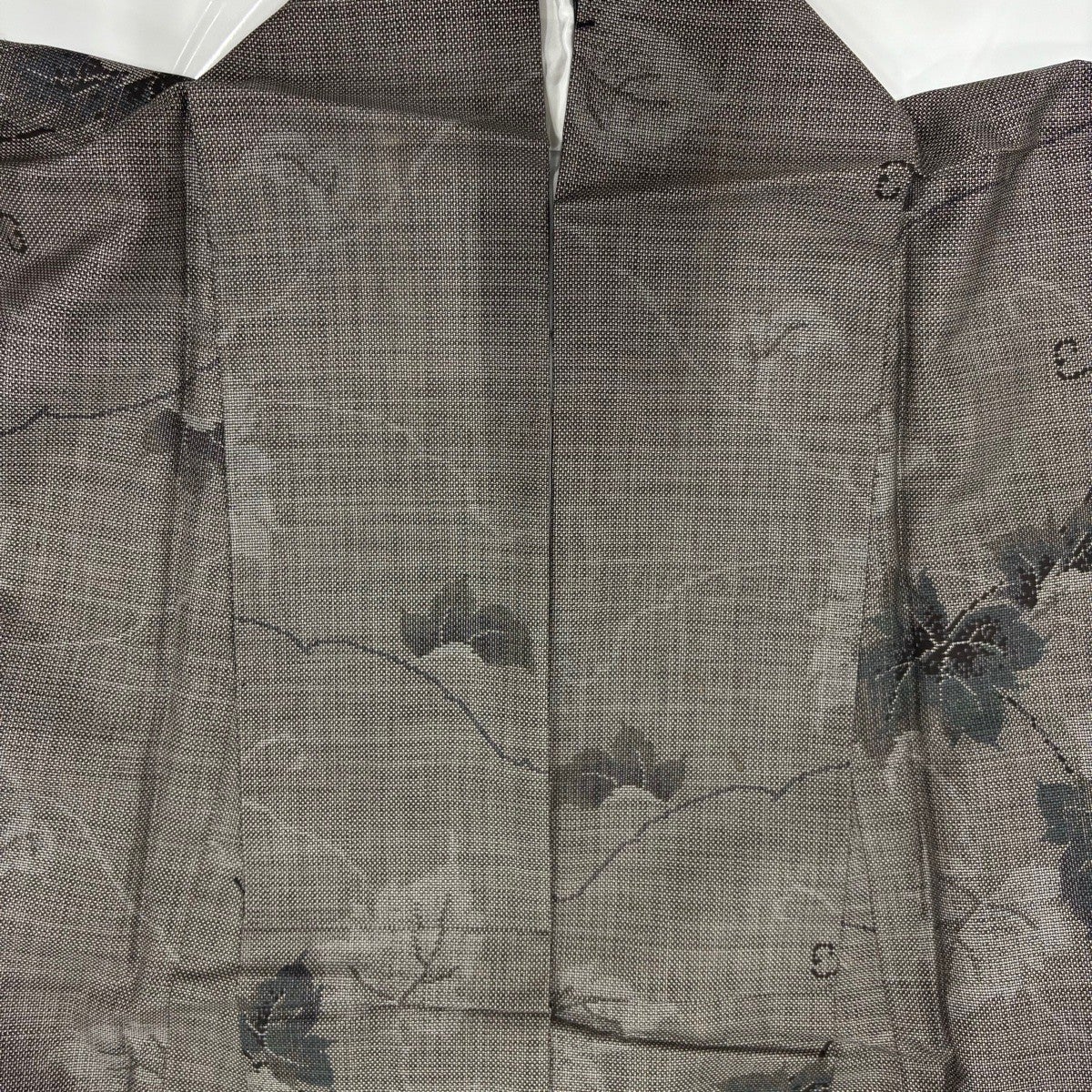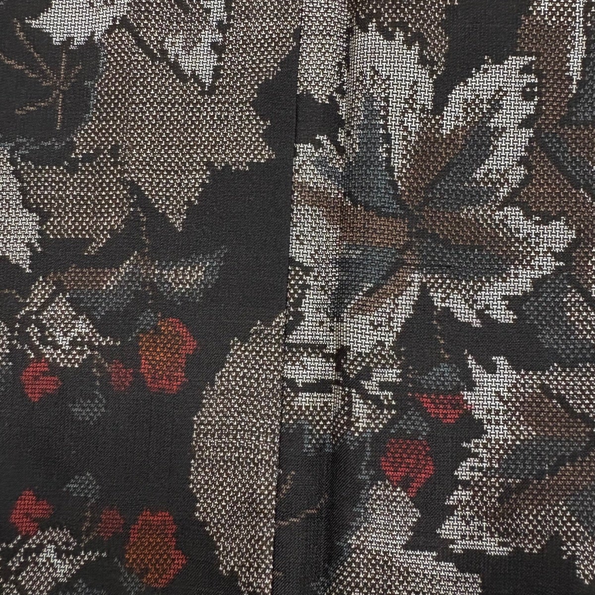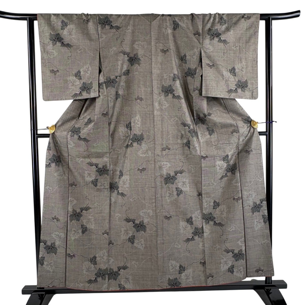 紬 身丈159.5cm 裄丈65cm M 袷 葡萄唐草 草花 焦茶色 正絹 名品
