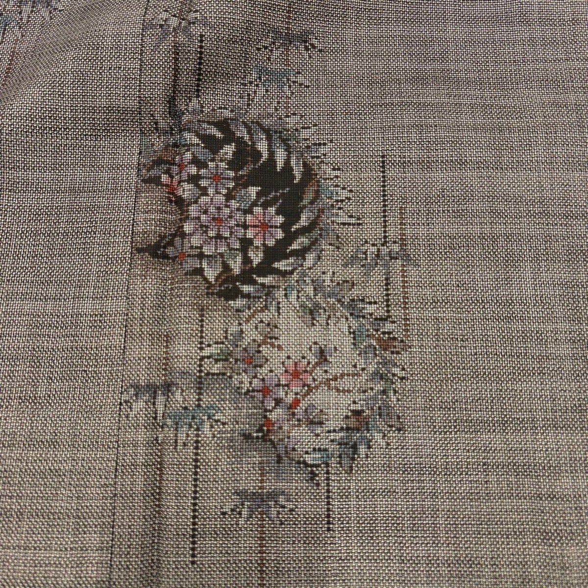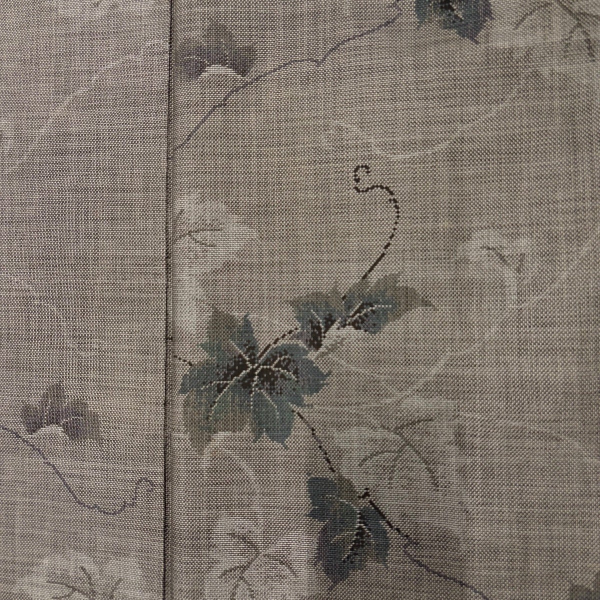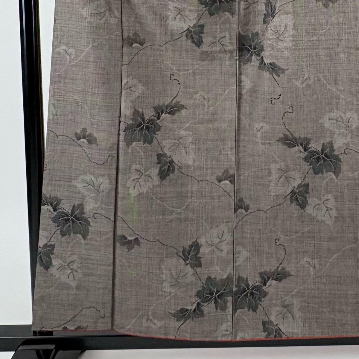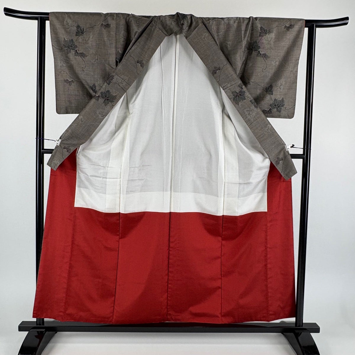 紬 身丈159.5cm 裄丈65cm M 袷 葡萄唐草 草花 焦茶色 正絹 名品
