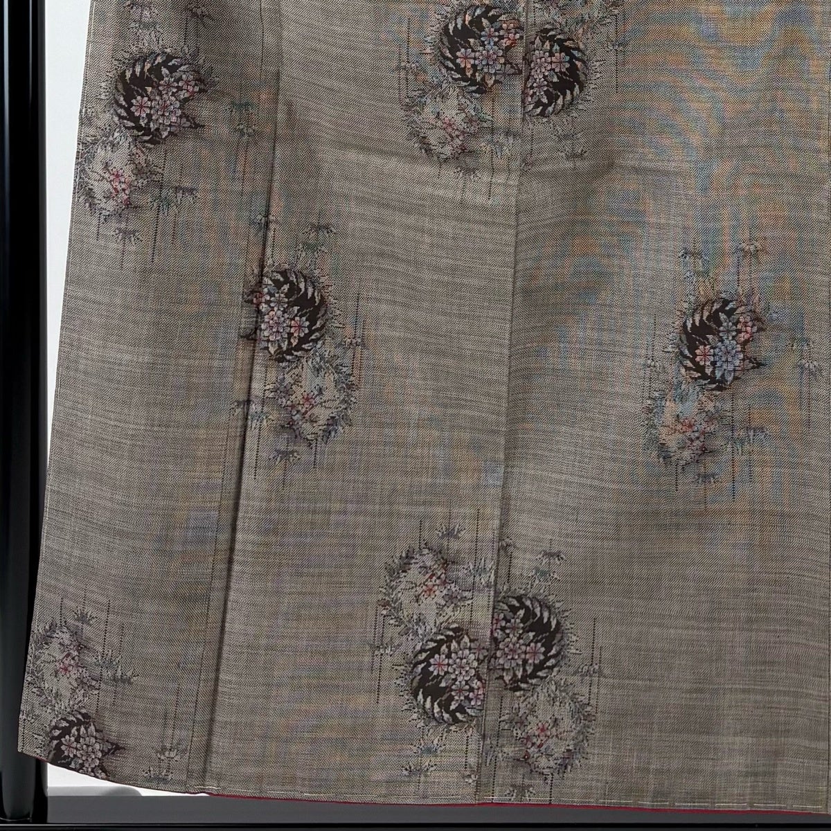 紬 身丈158cm 裄丈64.5cm M 袷 草花 幾何学 焦茶色 正絹 秀品