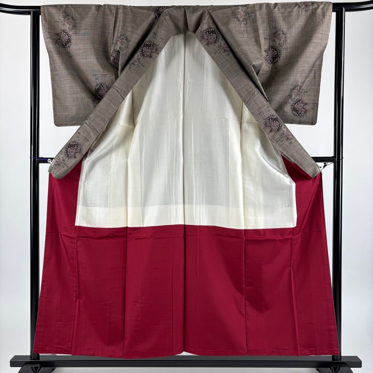 【美品】 紬 身丈164cm 裄丈67.5cm L 袷 花 焦茶色 正絹 秀品