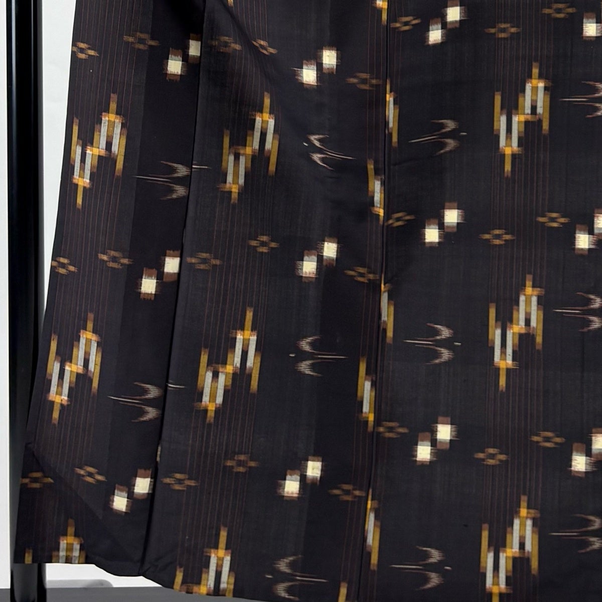 紬 身丈152cm 裄丈64cm M 袷 アンサンブル 幾何学 焦茶色 正絹 逸品