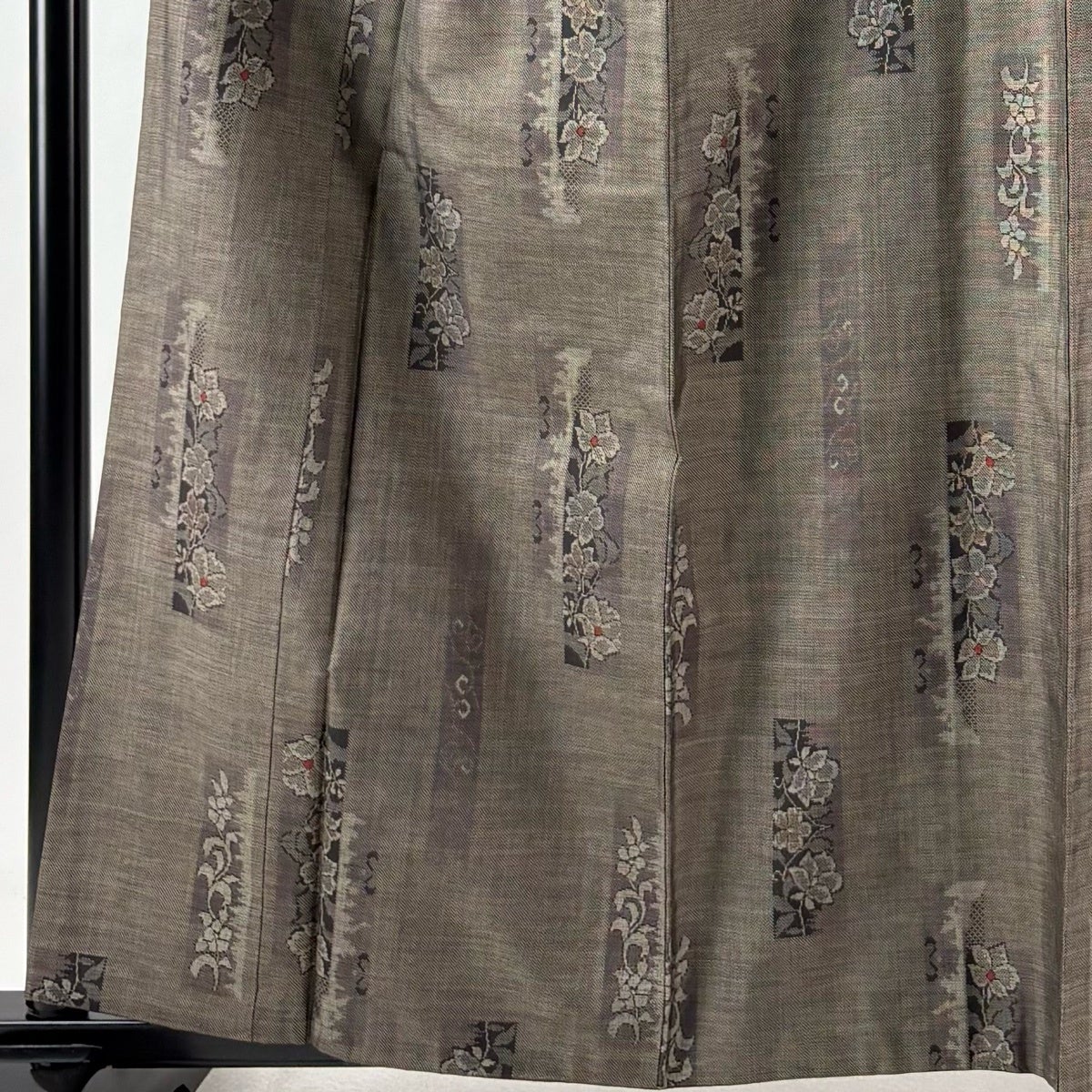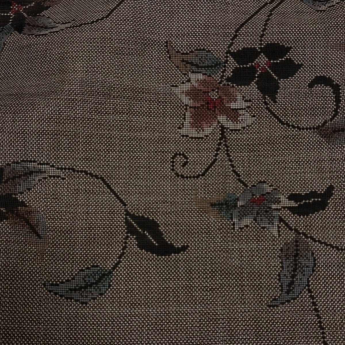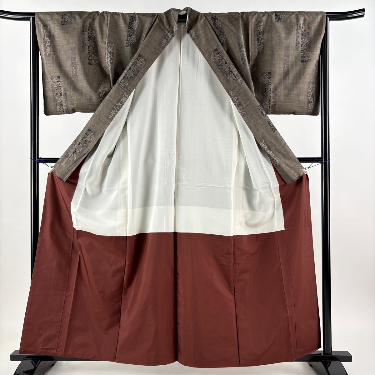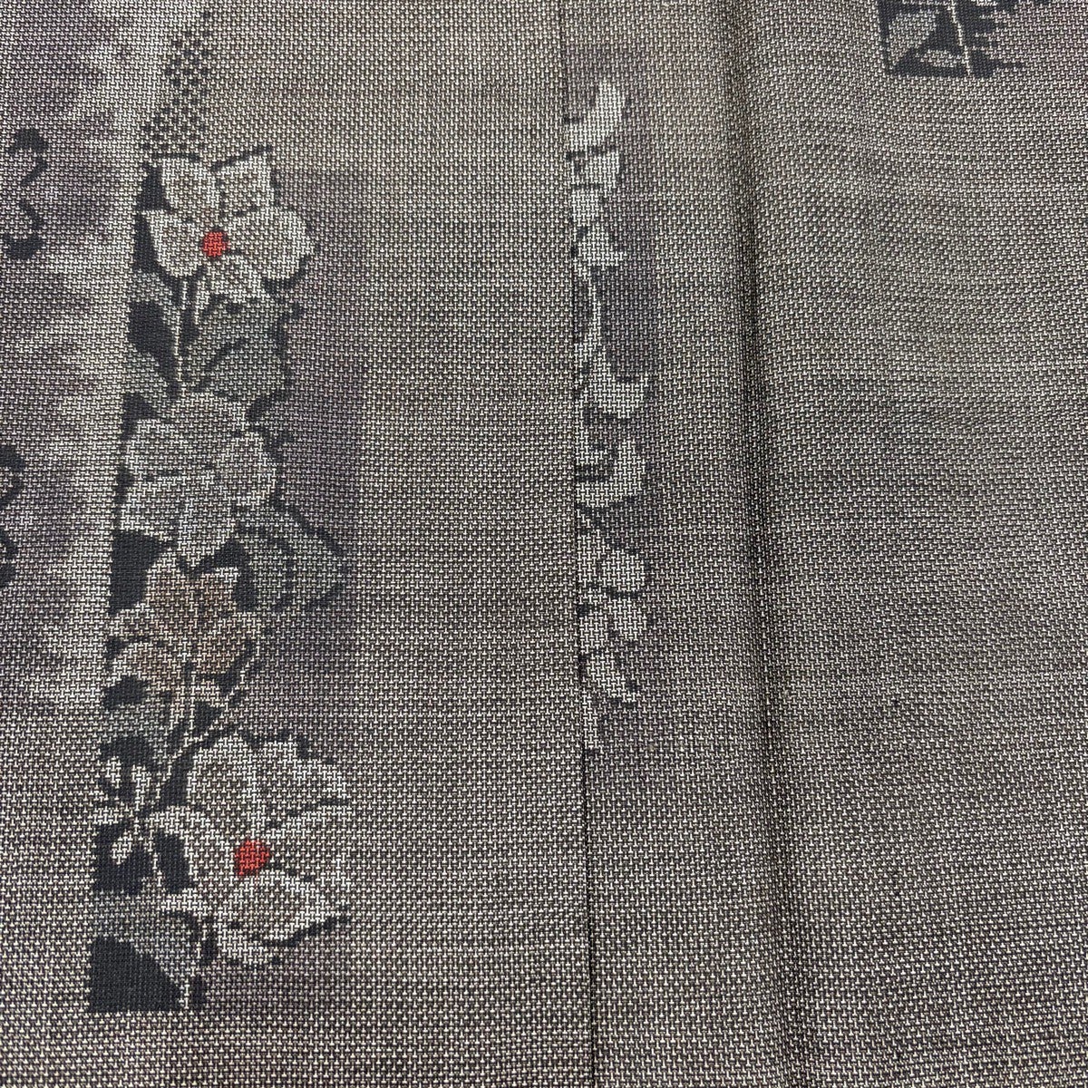 紬 身丈168.5cm 裄丈66cm M 袷 草花 幾何学模様 焦茶色 正絹 秀品