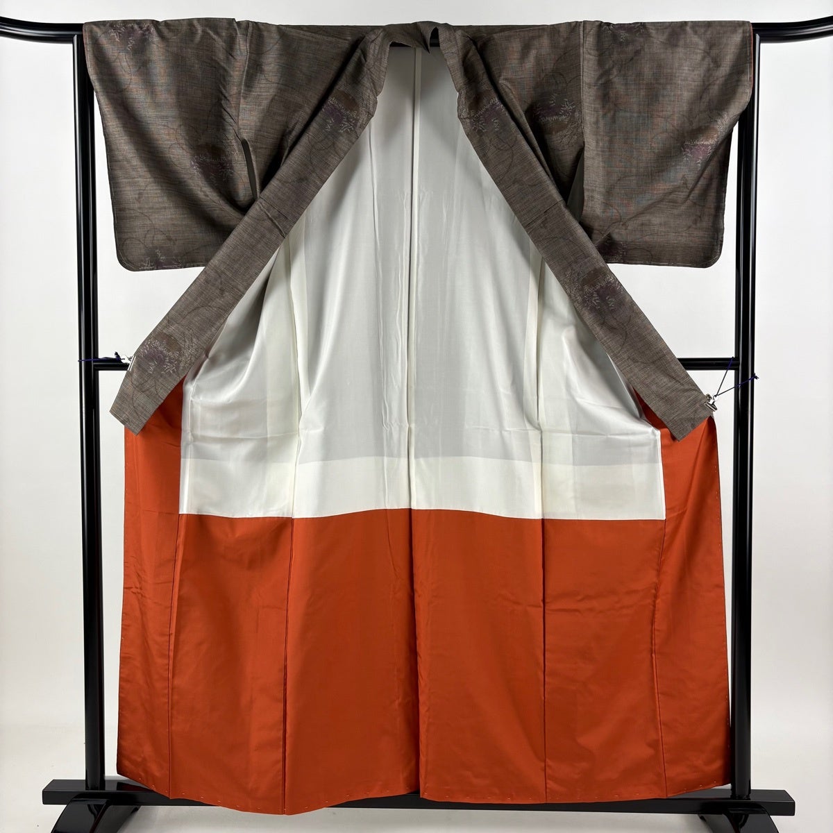 付下げ 身丈171cm 裄丈66cm M 袷 紬地 幾何学 刺繍 焦茶色 正絹 秀品
