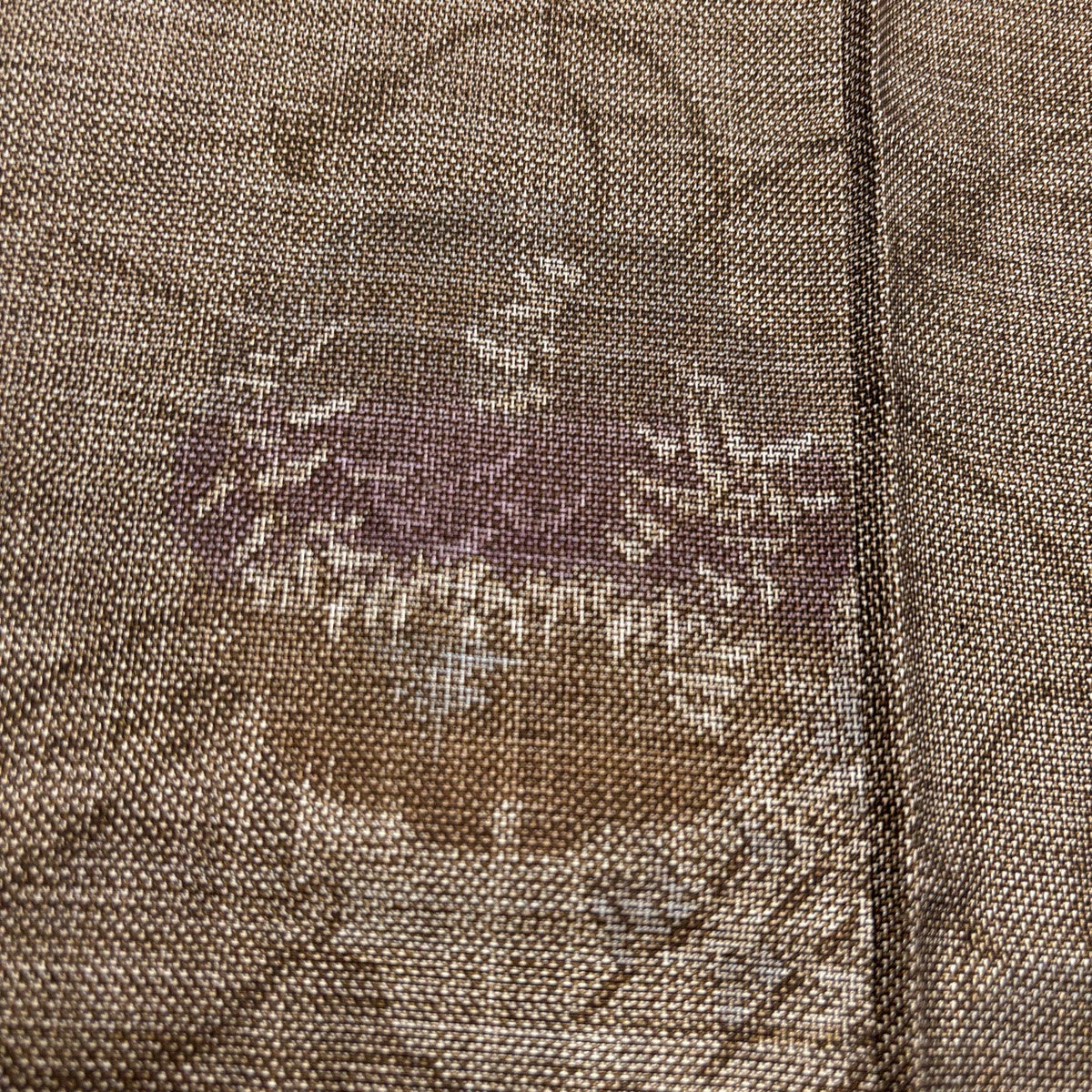 付下げ 身丈160cm 裄丈67cm M 袷 紬地 木兎 刺繍 焦茶色 正絹 名品