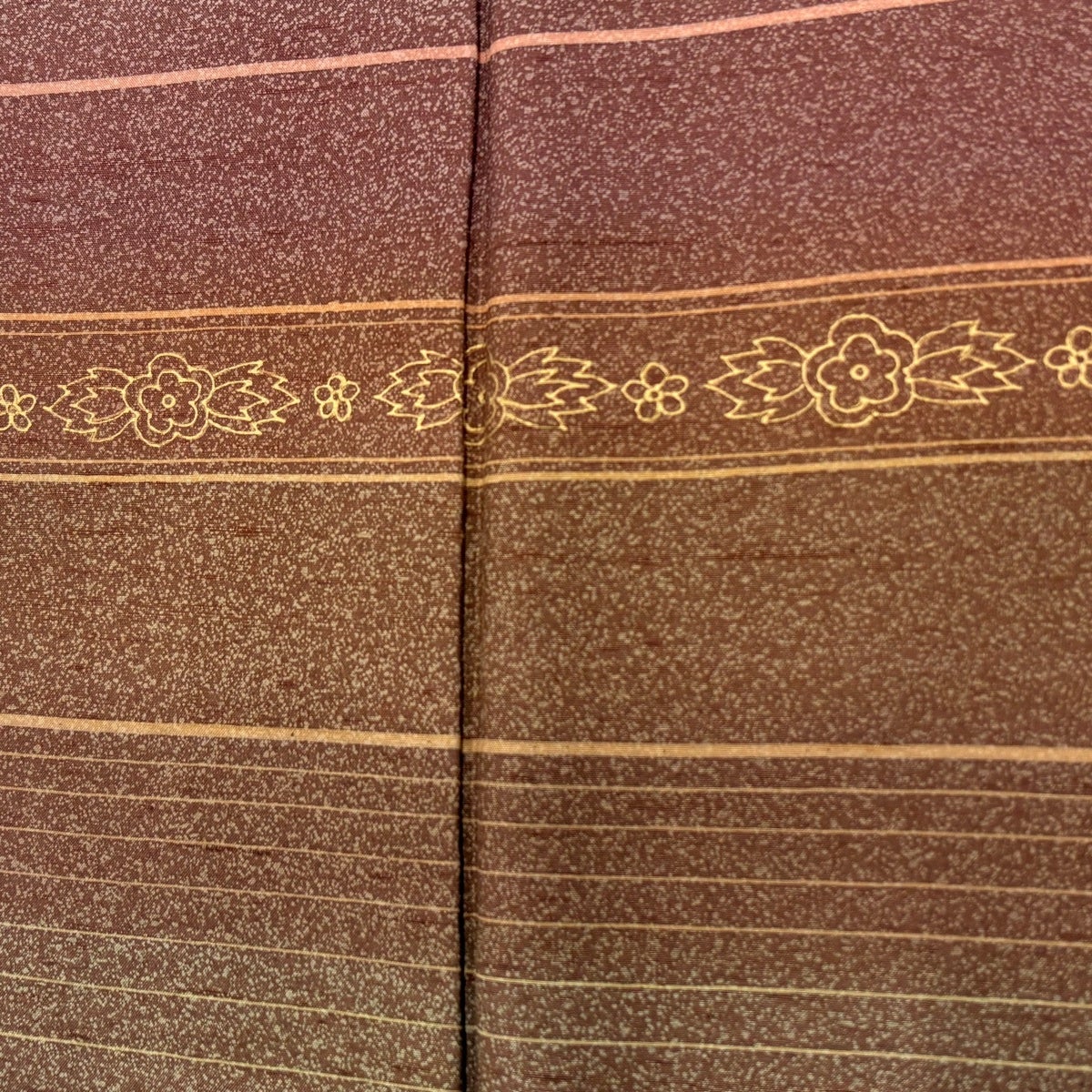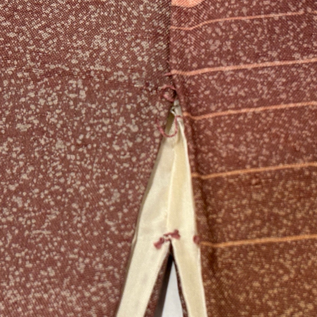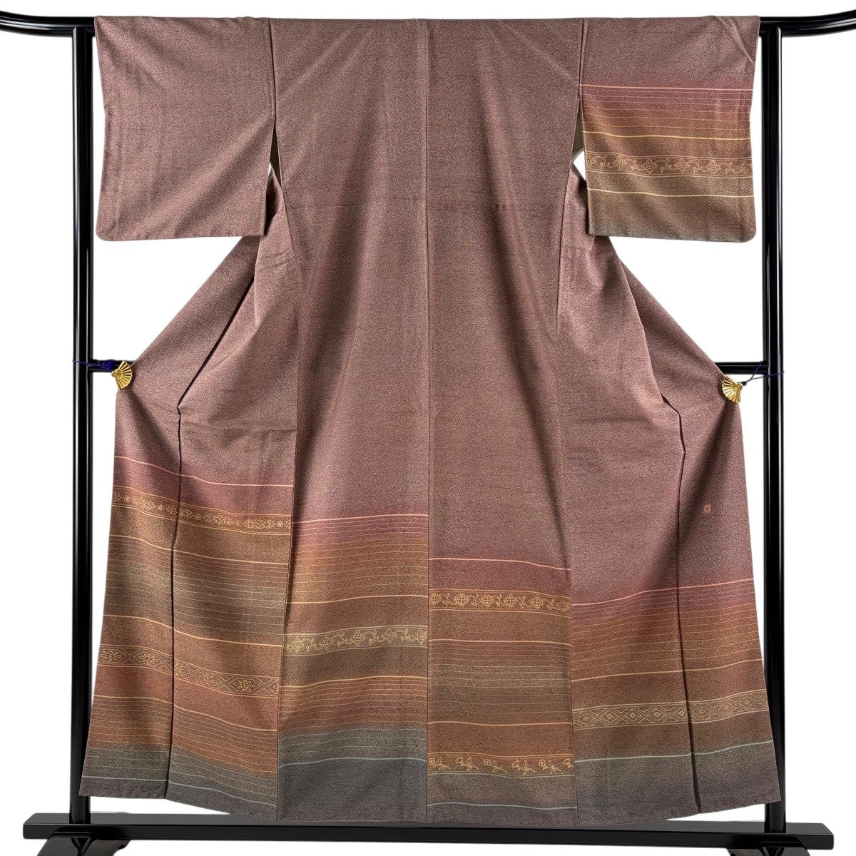 訪問着 身丈155.5cm 裄丈62.5cm S 袷 牛首紬地 落款あり 縞 花 金彩 ぼかし 小豆色 正絹 名品