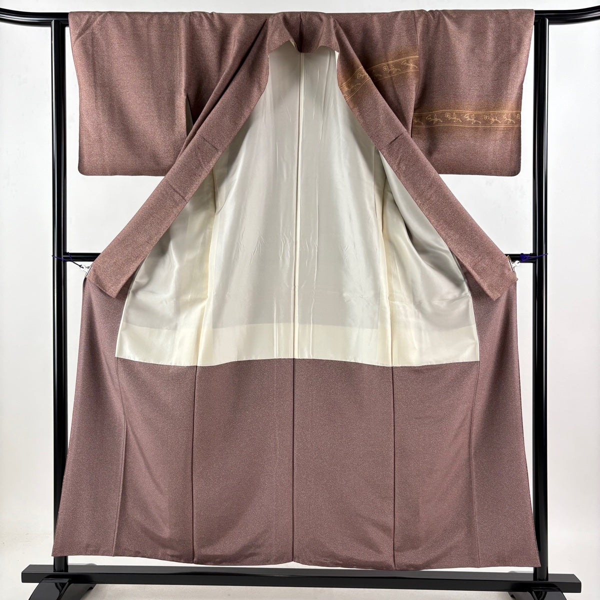 【在庫一掃】 訪問着 身丈160cm 裄丈63cm S 袷 牛首紬地 落款あり 草花 霞 金銀彩 ぼかし 薄小豆 正絹 逸品
