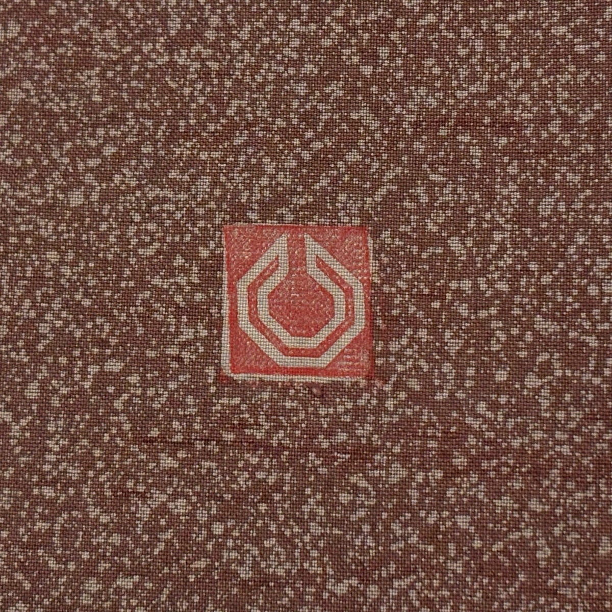 【美品】 小紋 身丈156.5cm 裄丈63cm S 単衣 牛首紬地 証紙あり 幾何学模様 小豆色 正絹 逸品