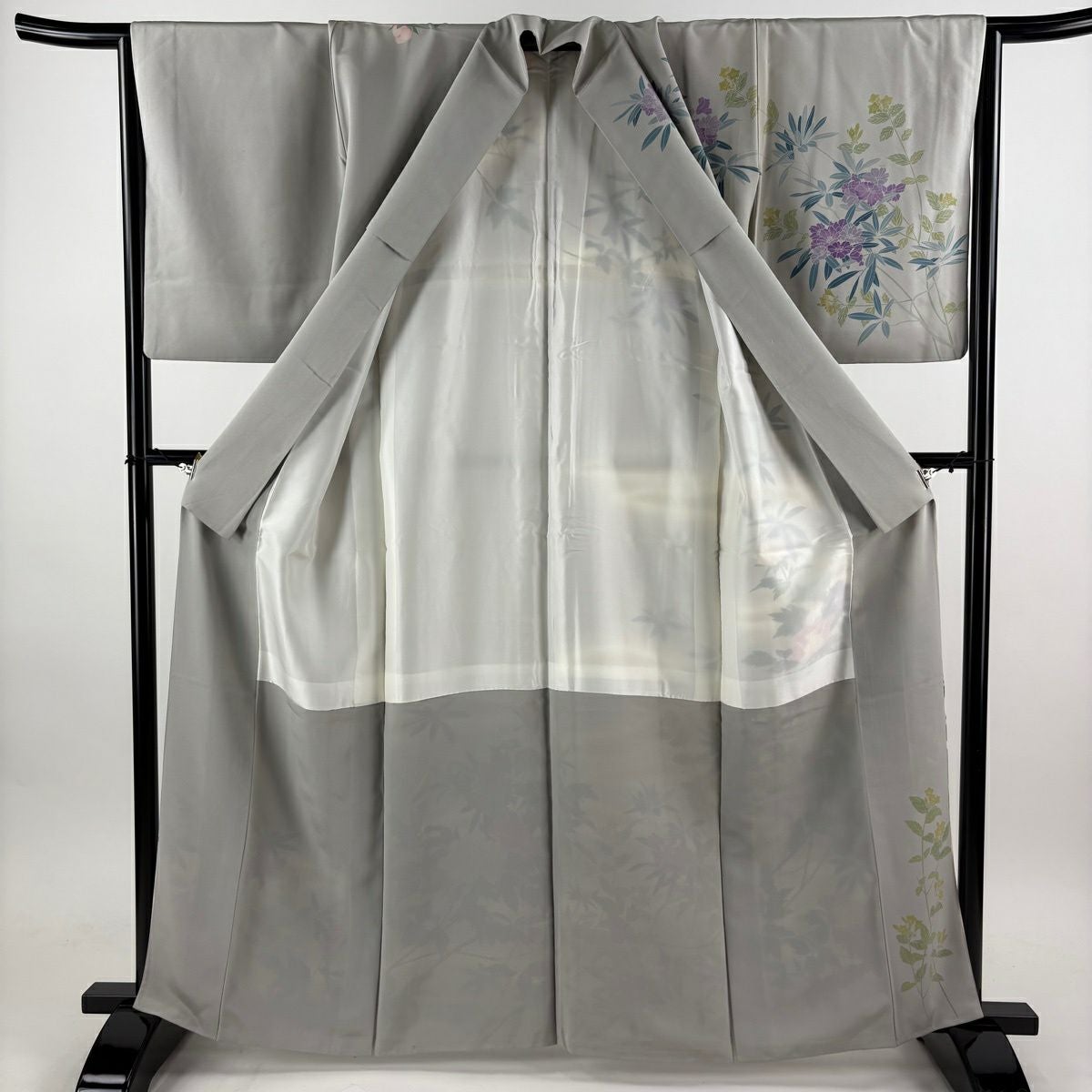 訪問着 身丈152.5cm 裄丈63cm S 袷 落款あり 牡丹 萩 ぼかし 灰色 正絹 秀品