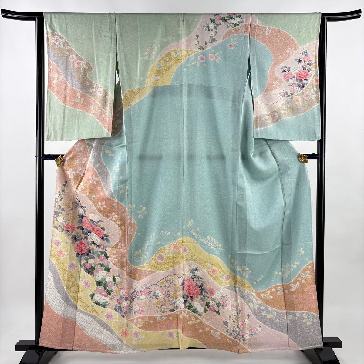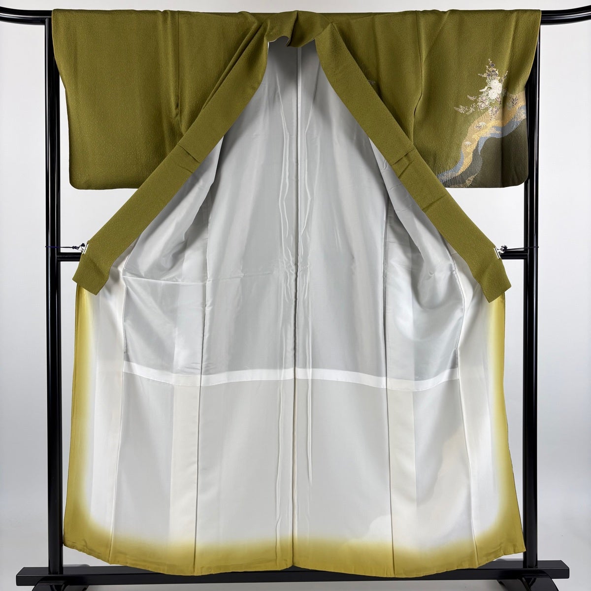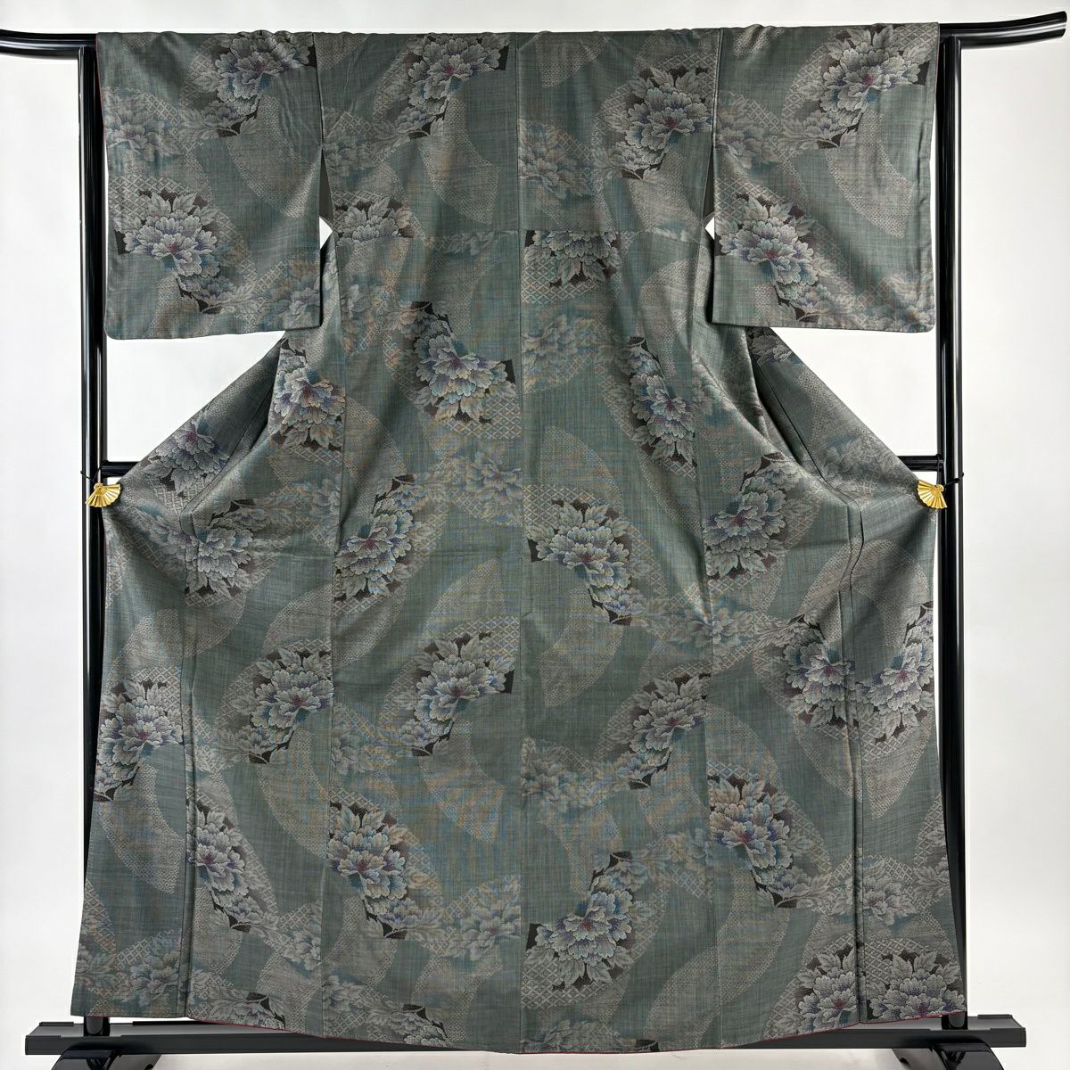 【在庫一掃】 訪問着 身丈154cm 裄丈64.5cm M 袷 牡丹 菊 金糸 金彩 薄緑 正絹 名品