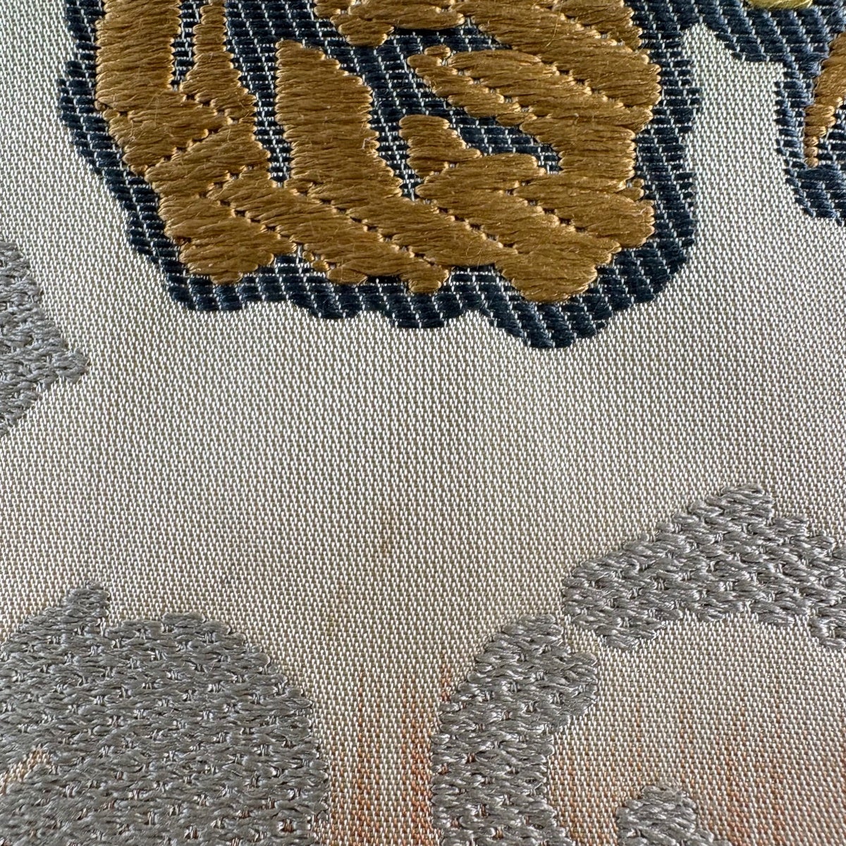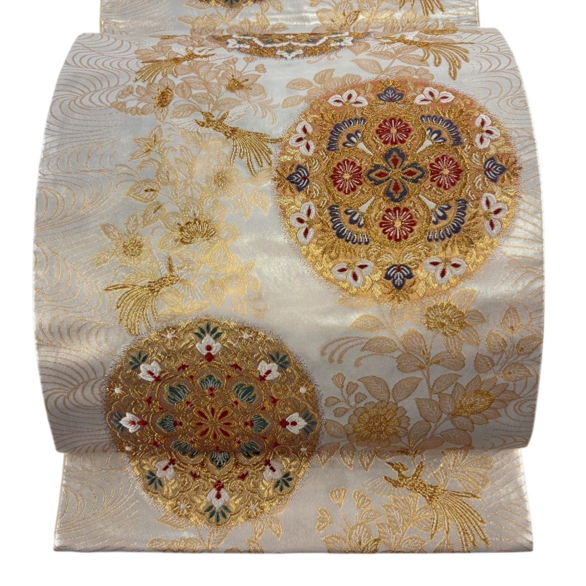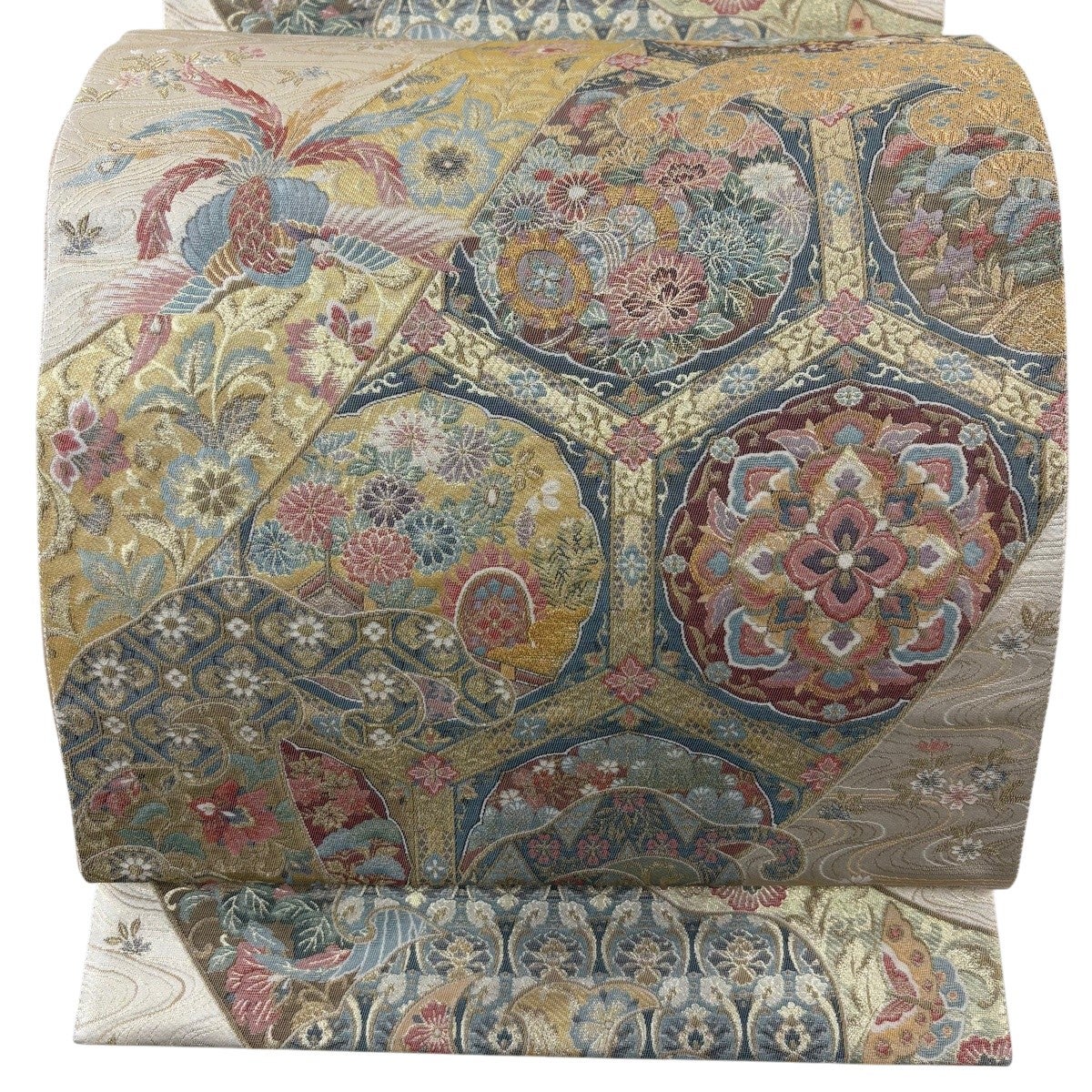 【美品】 袋帯 逸品 皇綾彩錦 華文 草花 唐織 金糸 クリーム 六通 正絹