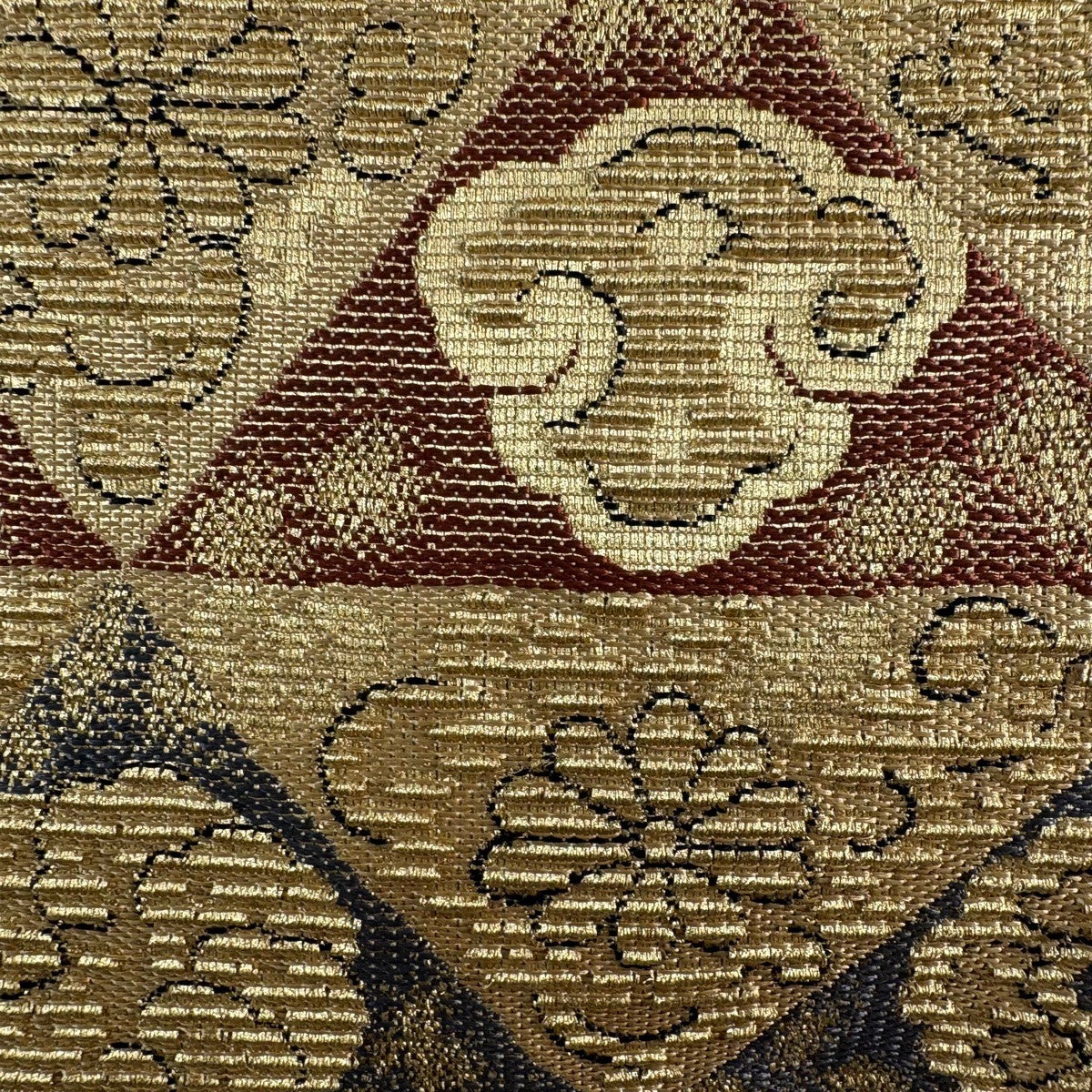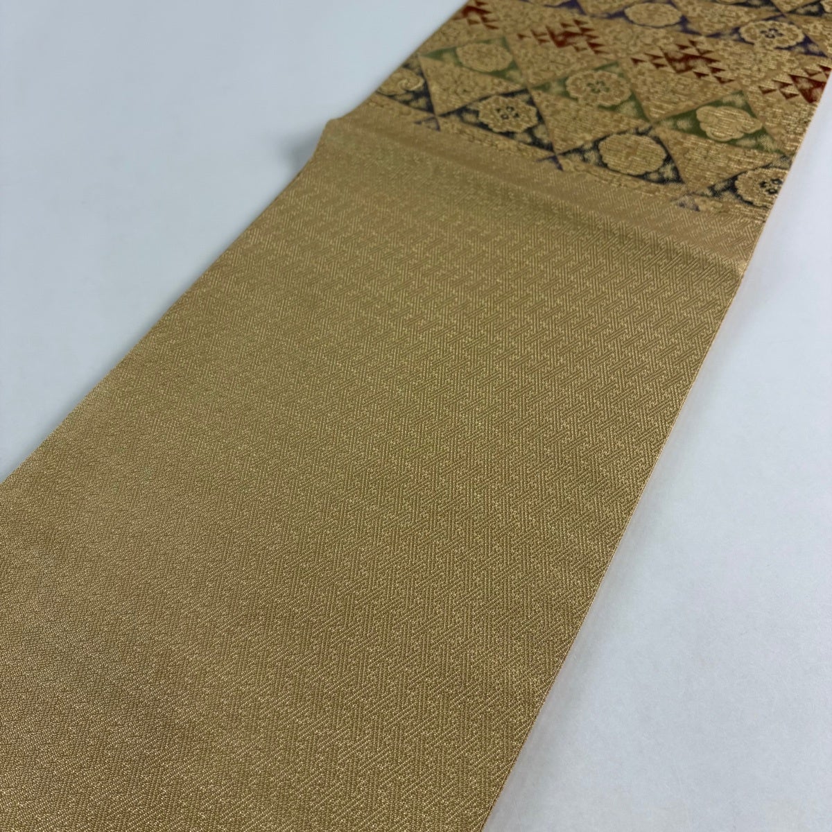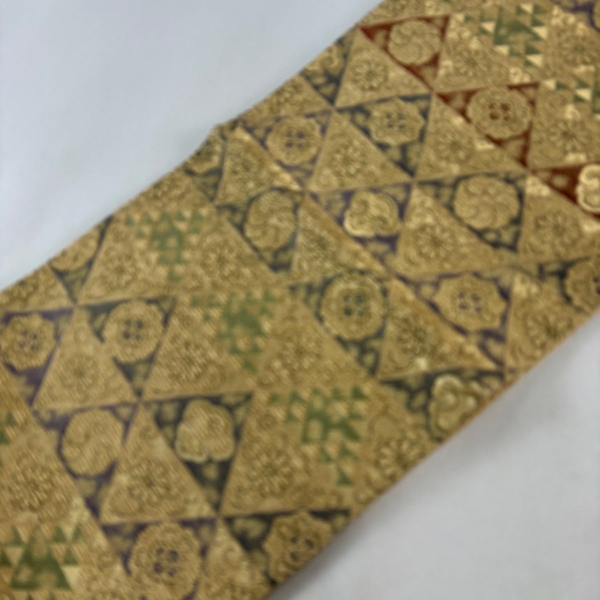 【美品】 袋帯 名品 鱗 花唐草 金糸 金色 六通 正絹