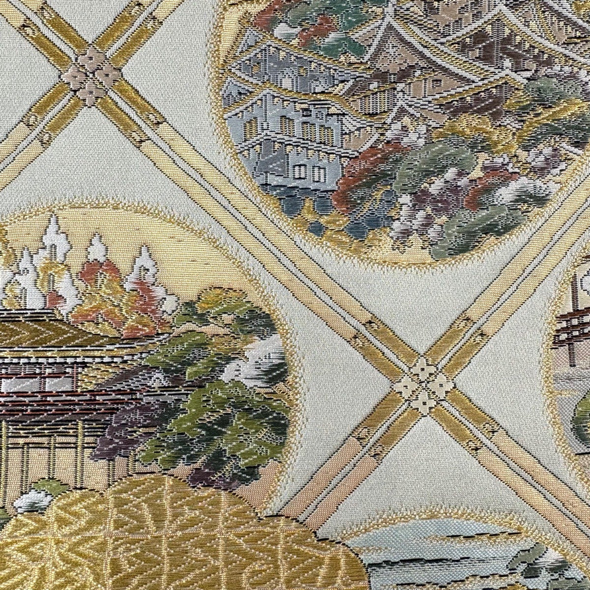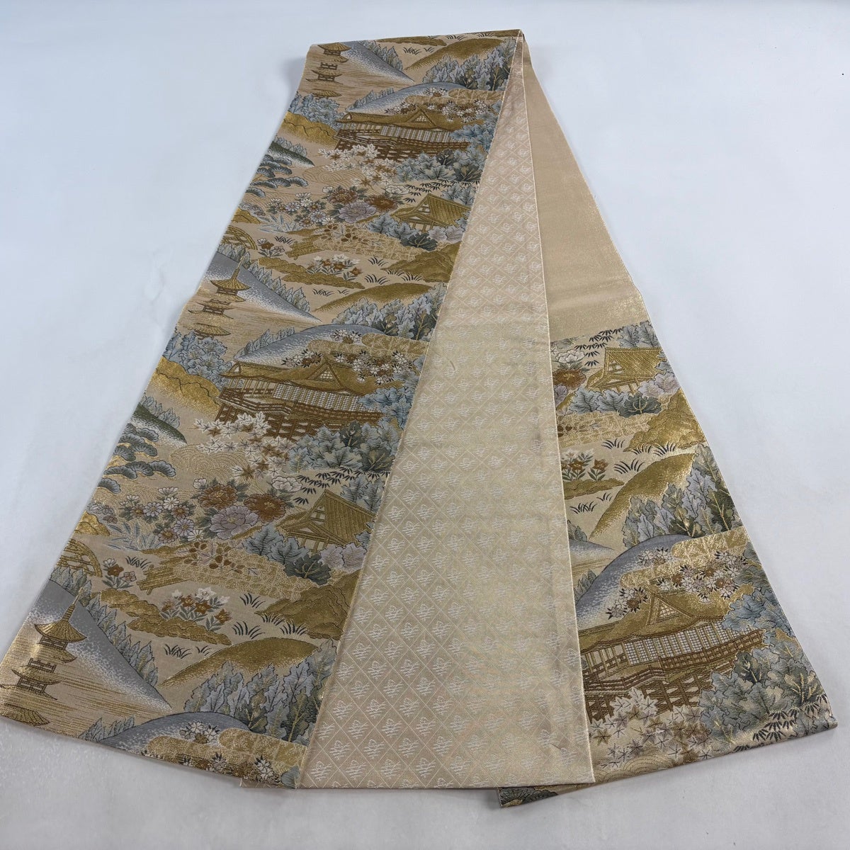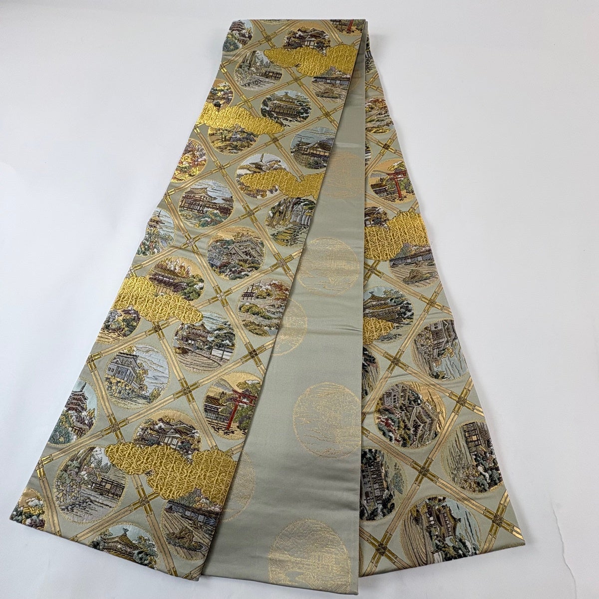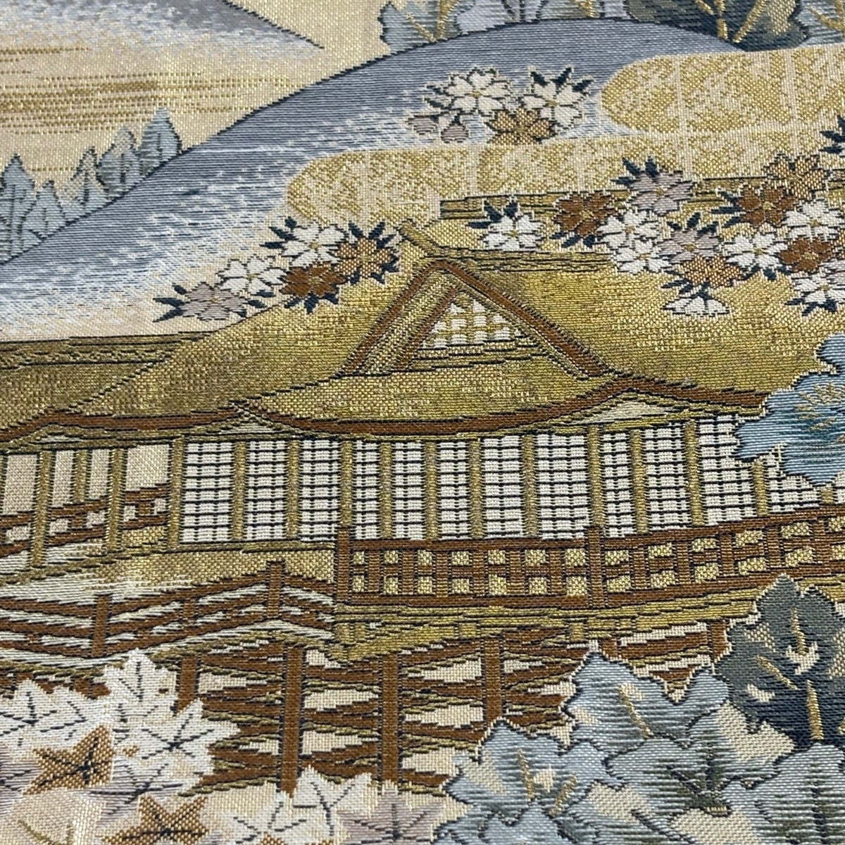 袋帯 名品 分析通知書付 東海道五十三次 箔 金色 お太鼓柄 正絹