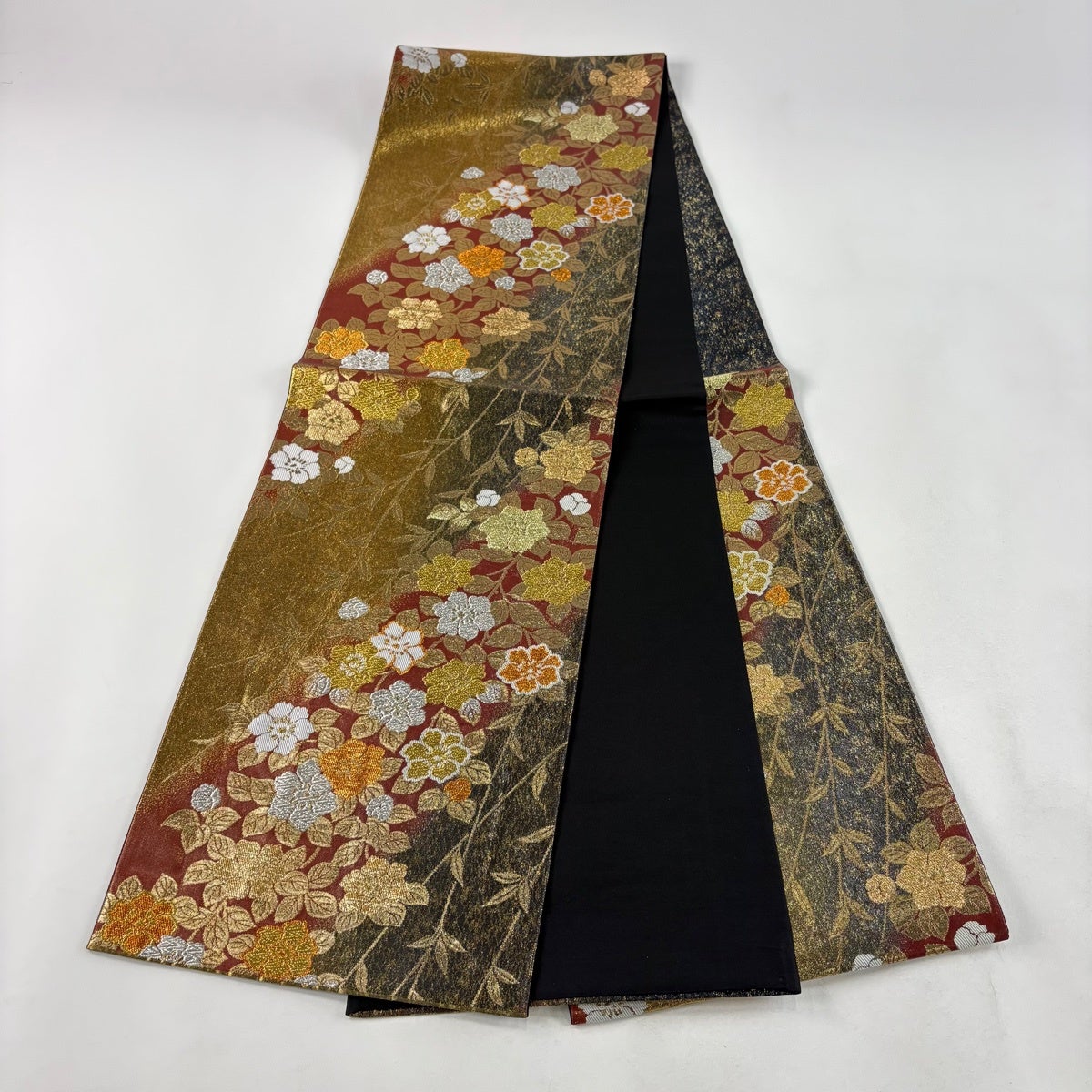 袋帯 秀品 桜 組紐 箔 金色 六通 正絹