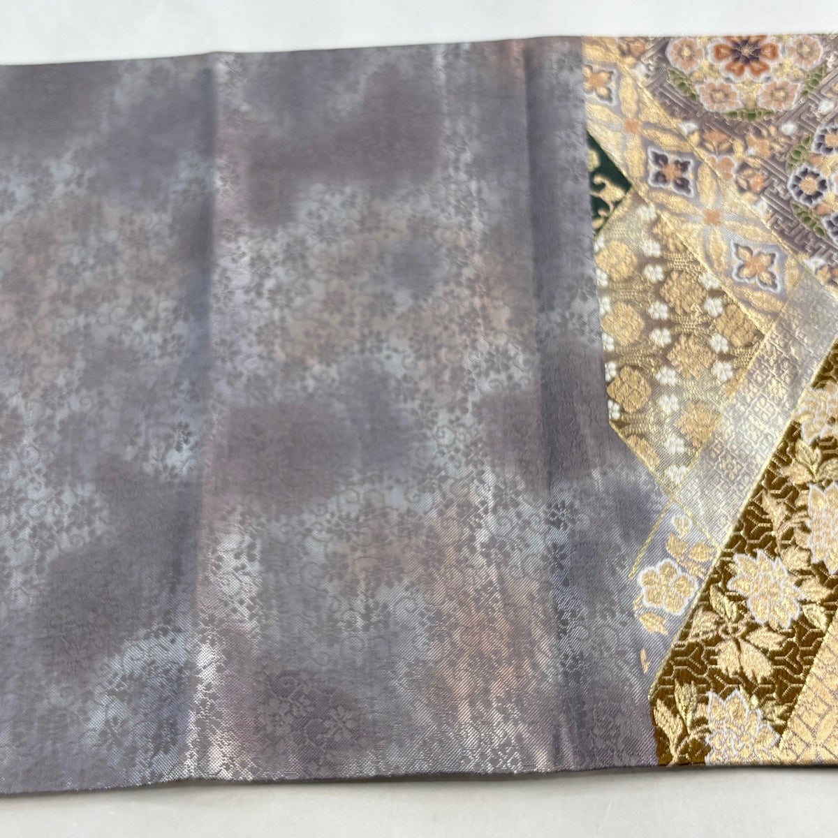 【美品】 袋帯 名品 吉祥露芝文 唐織 金糸 灰紫 六通 正絹