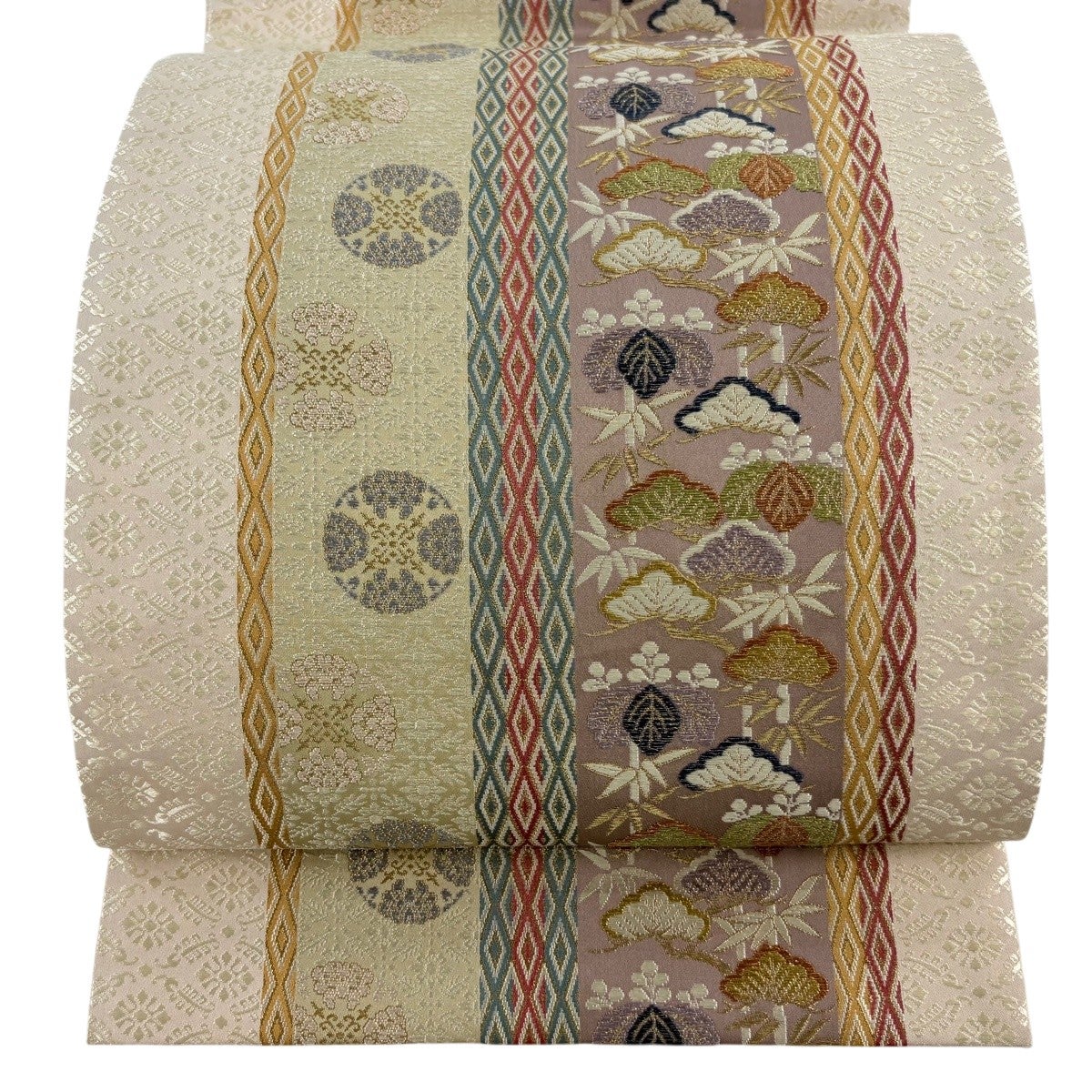 袋帯 名品 中村乃武夫 落款あり 松竹梅 牡丹 金糸 箔 銀色 六通 正絹