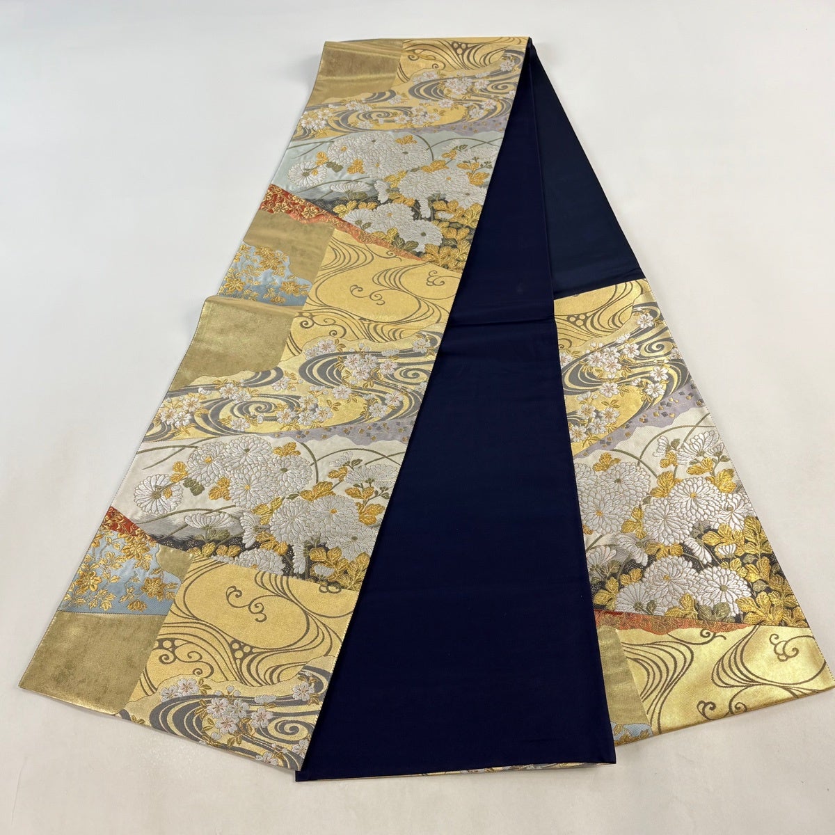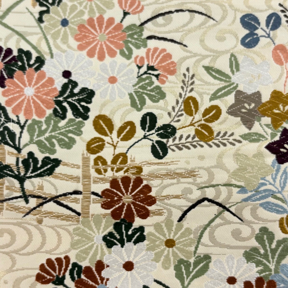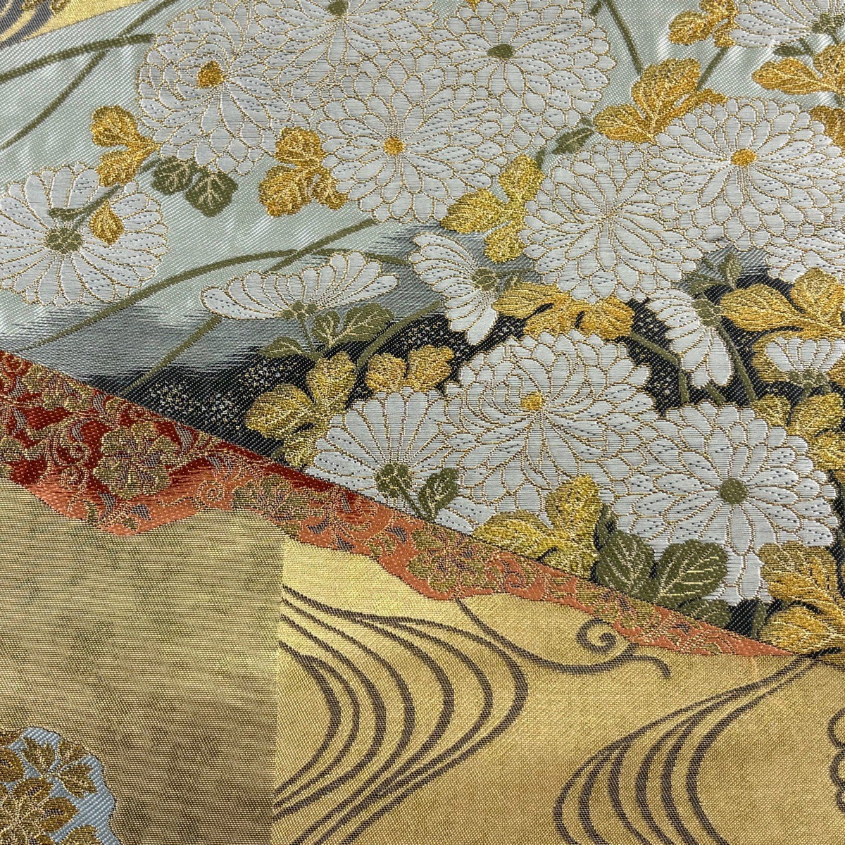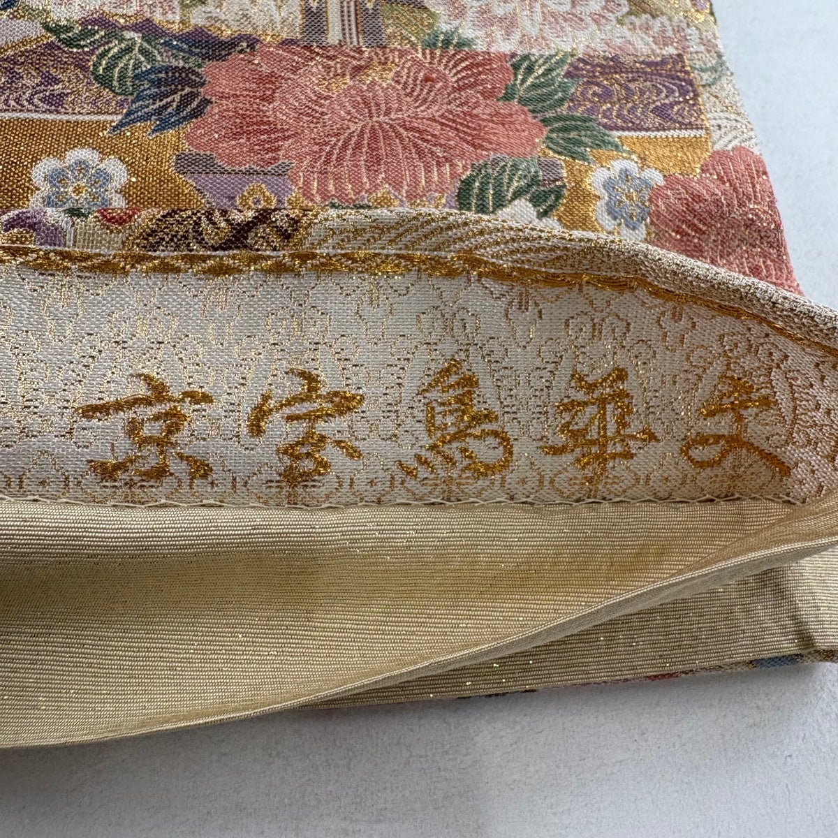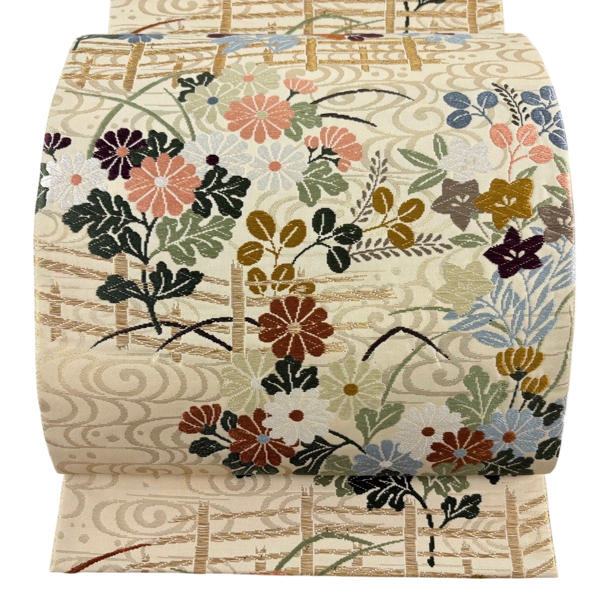 袋帯 秀品 菊 波頭 金糸 唐織 ベージュ 六通 正絹