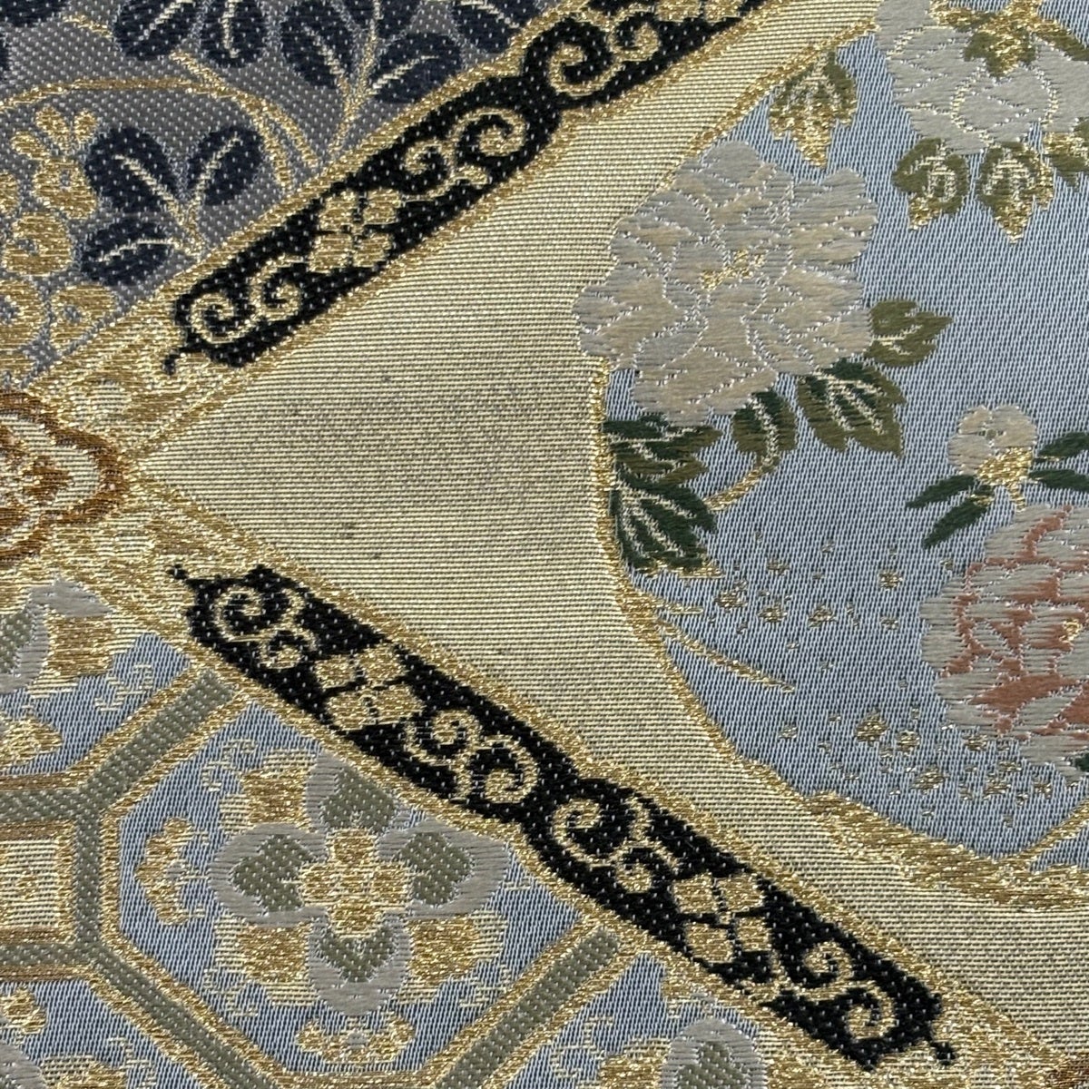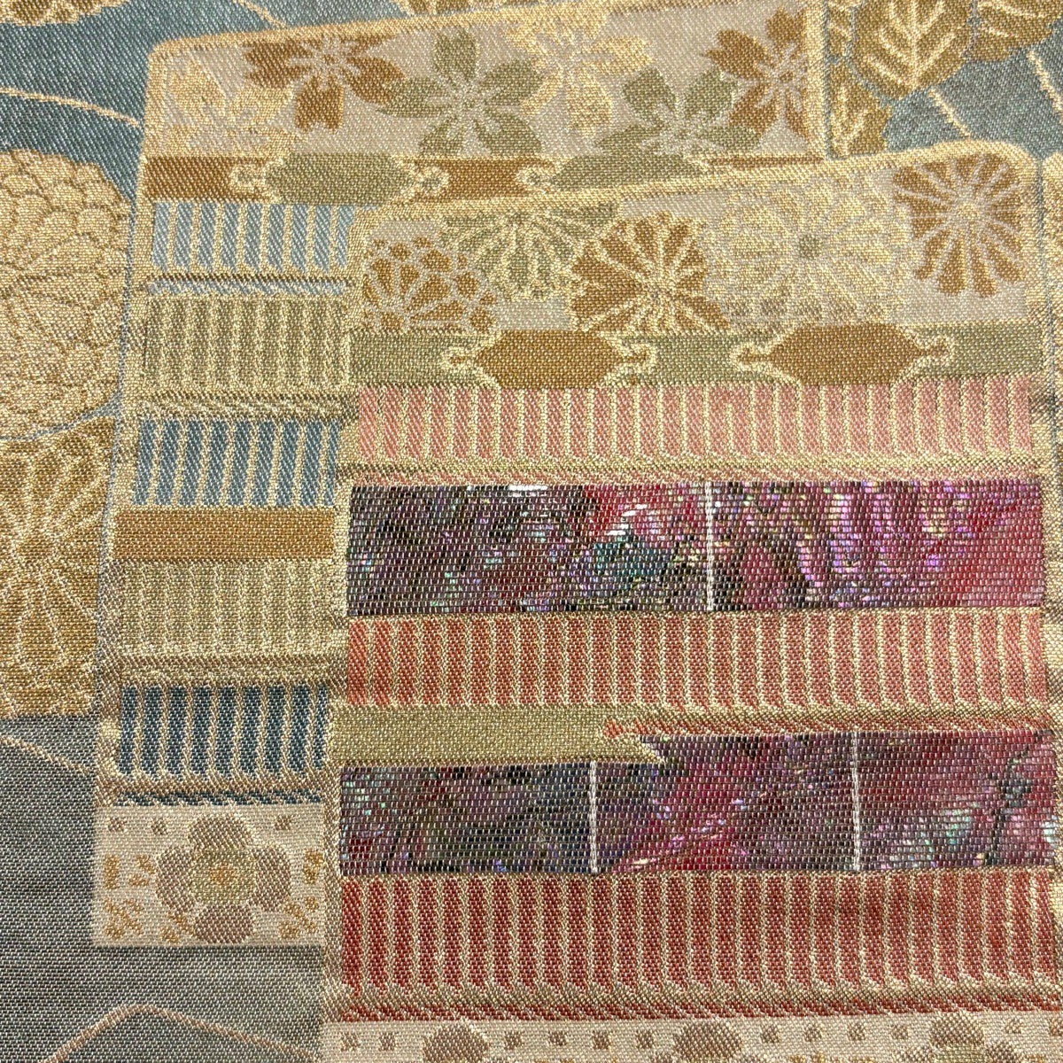 【美品】 袋帯 秀品 格天井 草花 金糸 箔 金色 六通 正絹