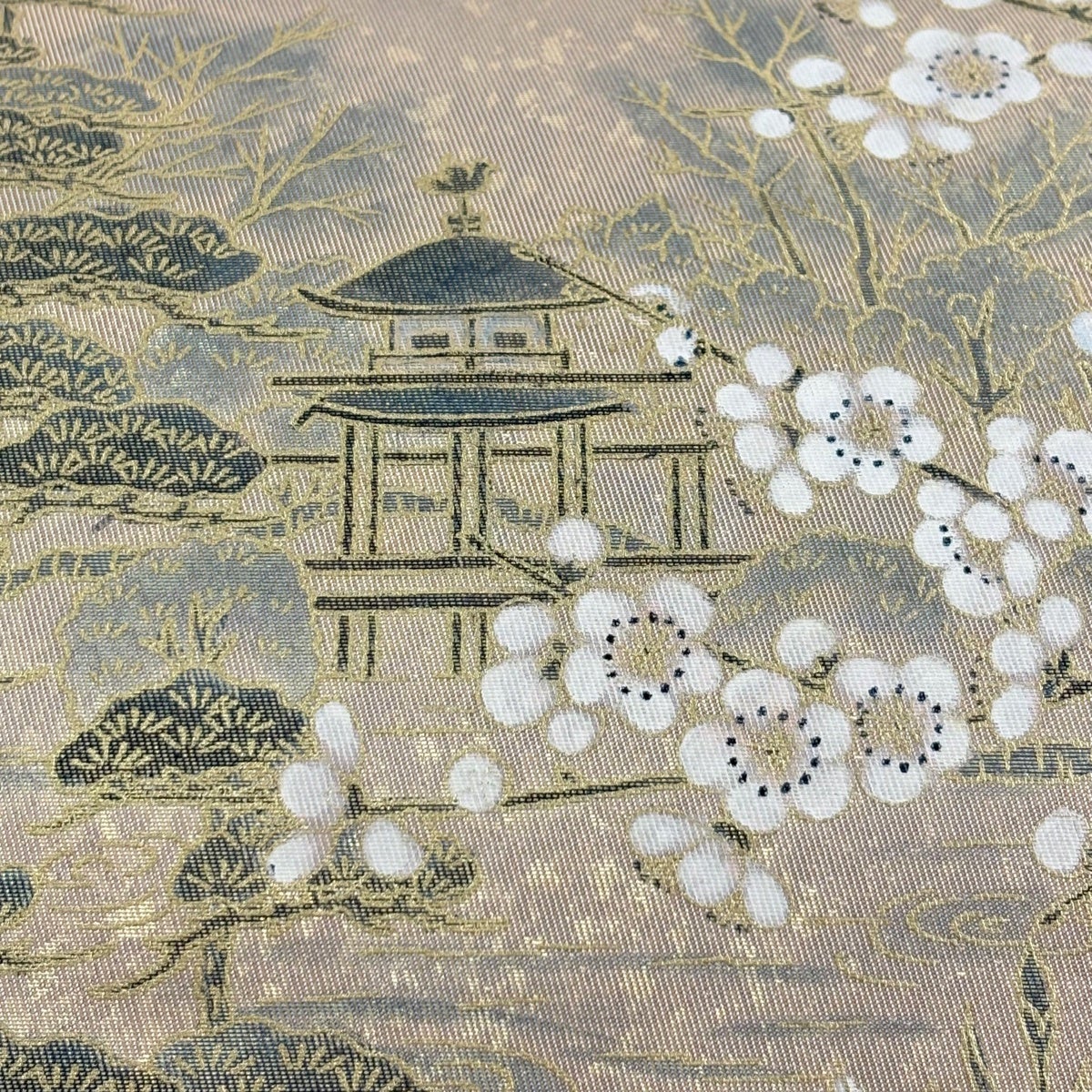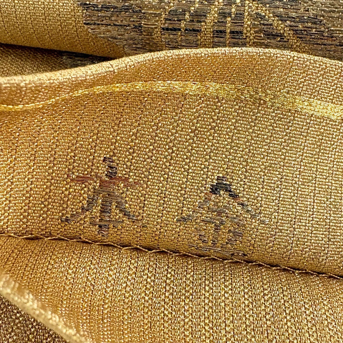袋帯 秀品 証紙あり 振袖向き 桜 麻の葉 唐織 箔 金茶 六通 正絹
