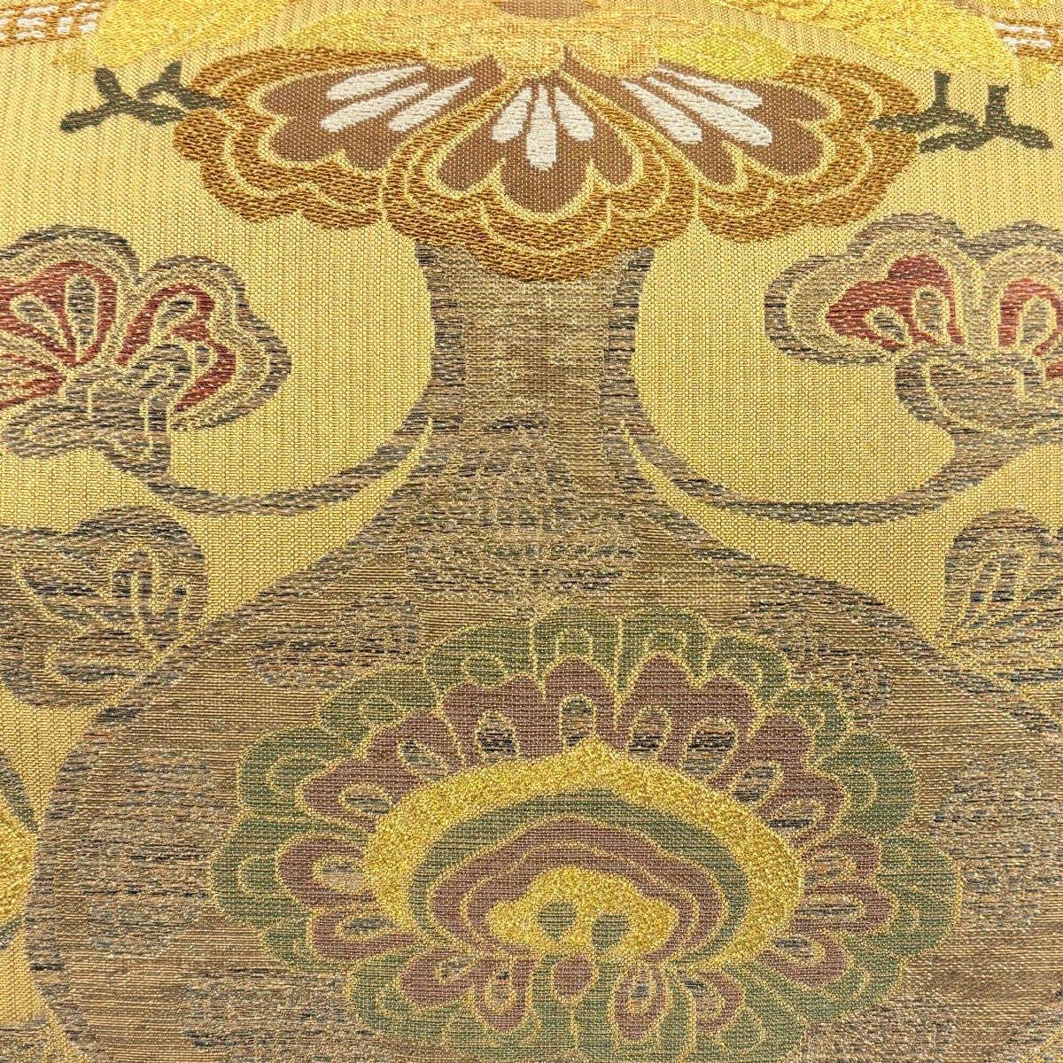 袋帯 名品 花菱 唐織 鶯色 六通 正絹