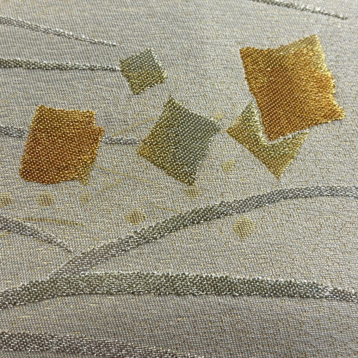 【美品】 袋帯 秀品 華文 幾何学 金糸 箔 金色 六通 正絹