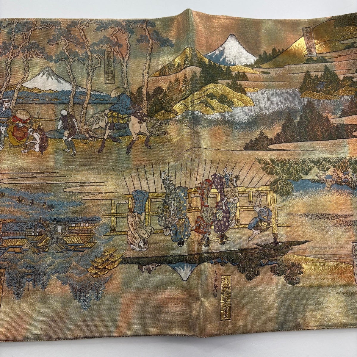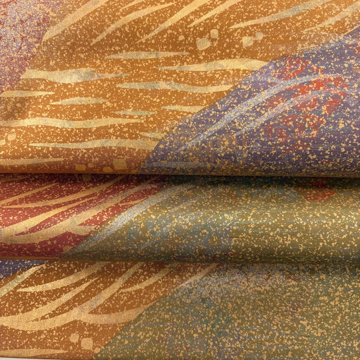 【美品】 袋帯 秀品 風景 草花 金糸 箔 金色 六通 正絹