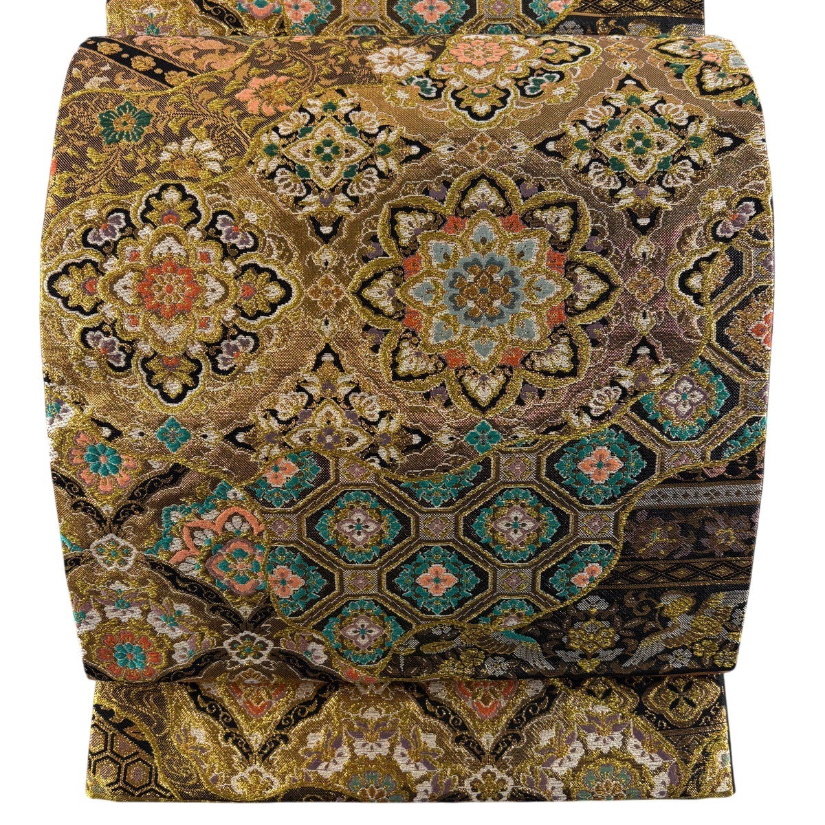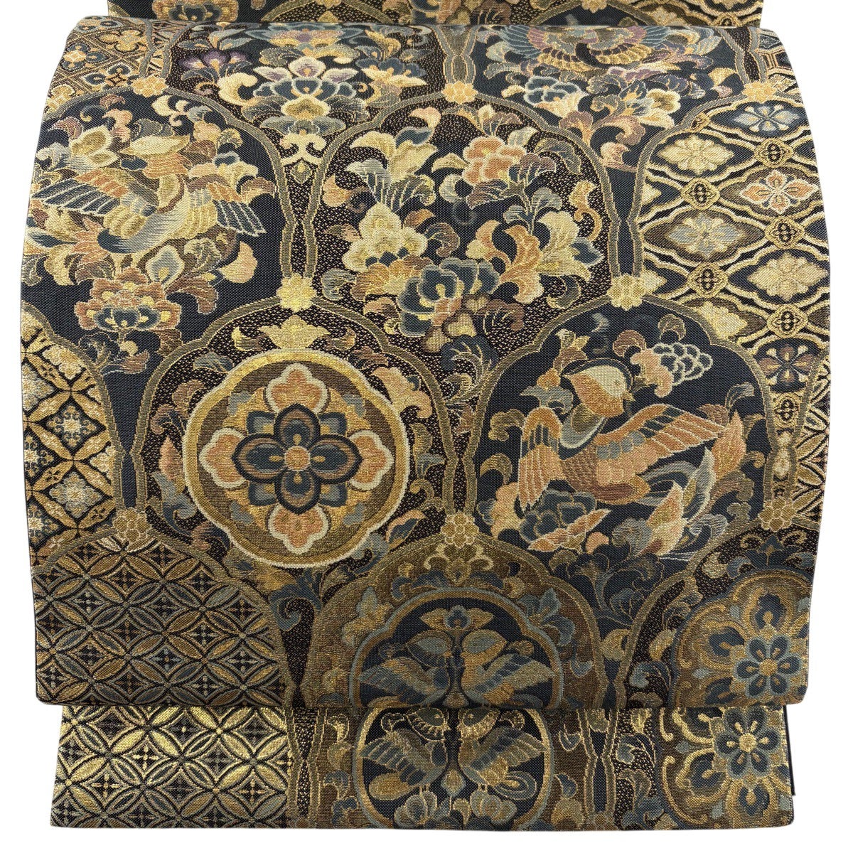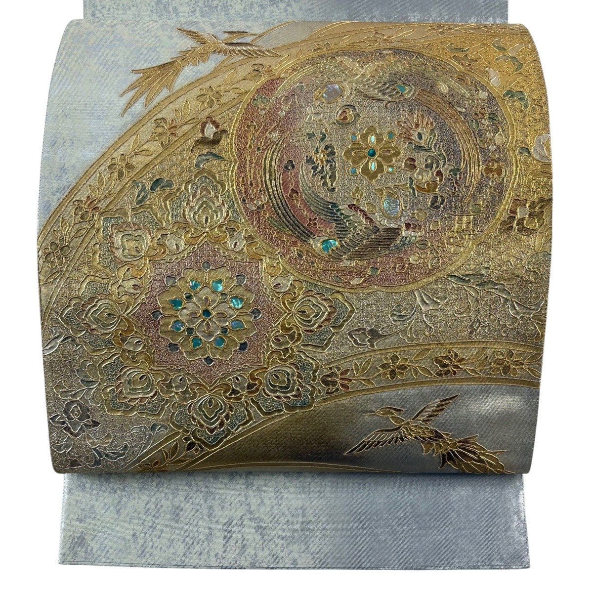 丸帯 逸品 色紙 花鳥 金糸 箔 金色 お太鼓柄 正絹