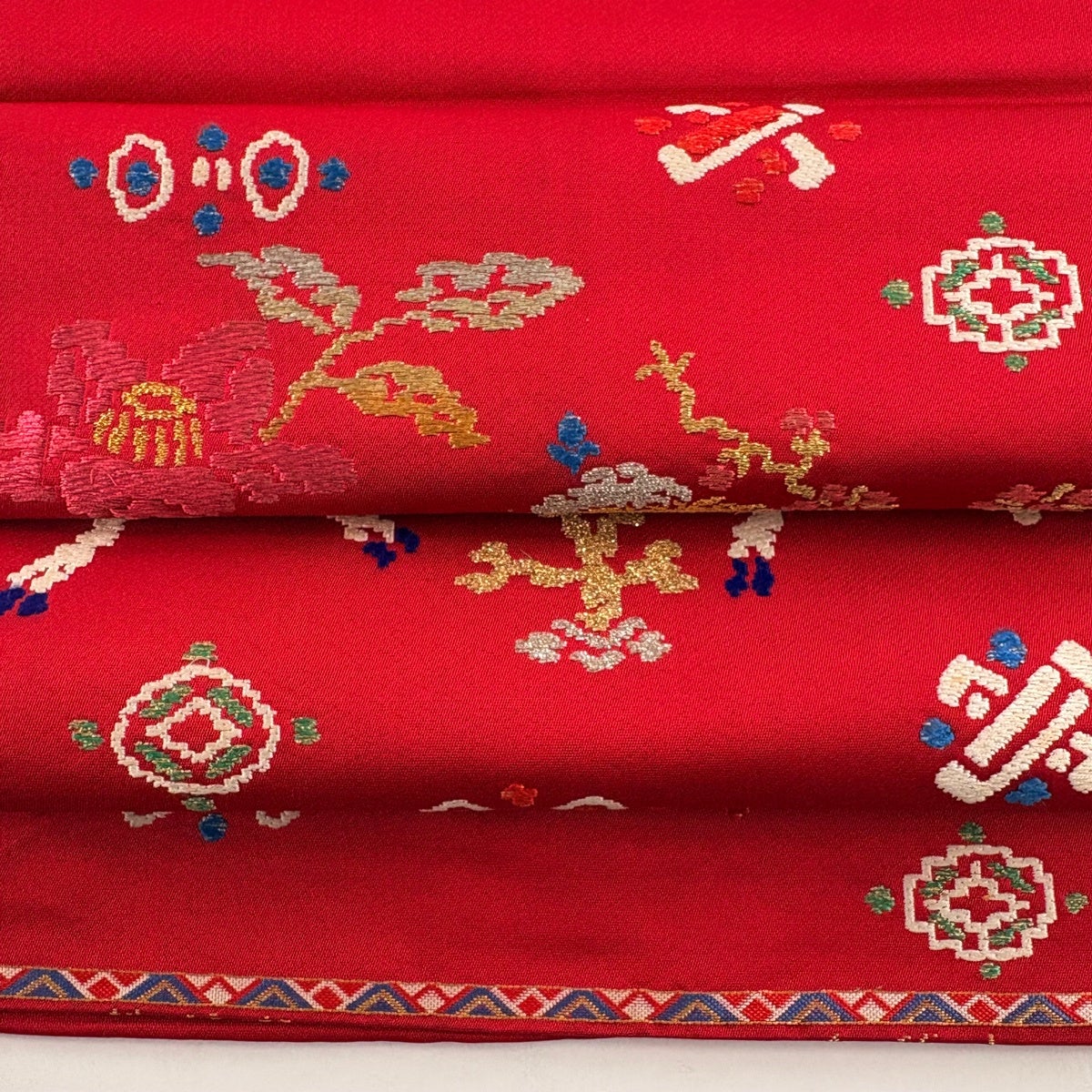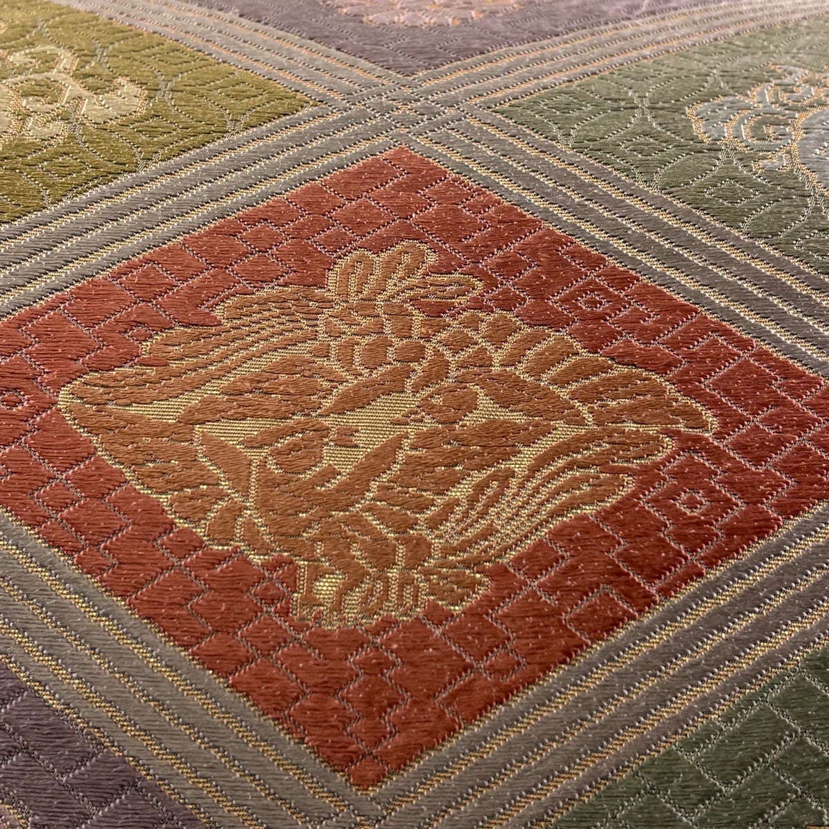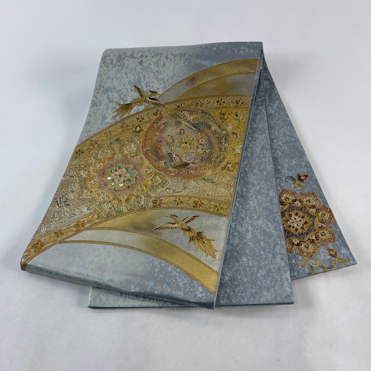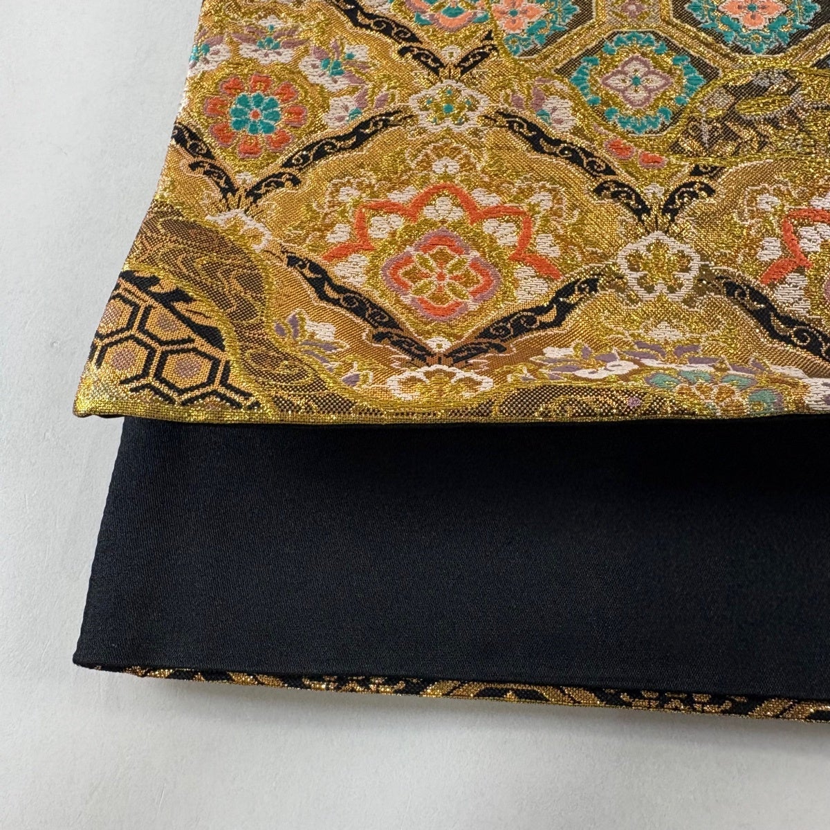 丸帯 逸品 色紙 花鳥 金糸 箔 金色 お太鼓柄 正絹