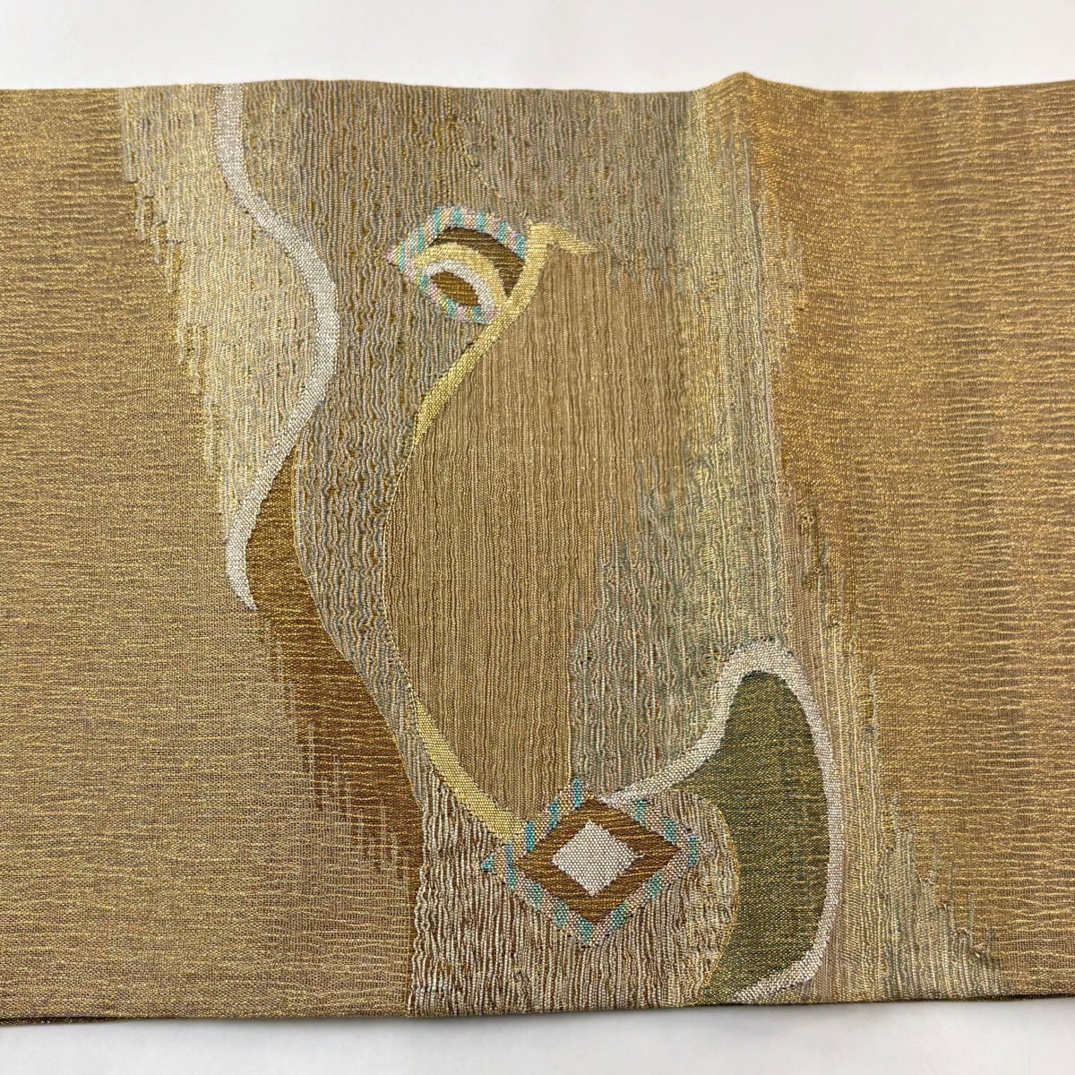 【美品】 袋帯 名品 落款あり 辻が花 金通し 箔 灰緑 お太鼓柄 正絹