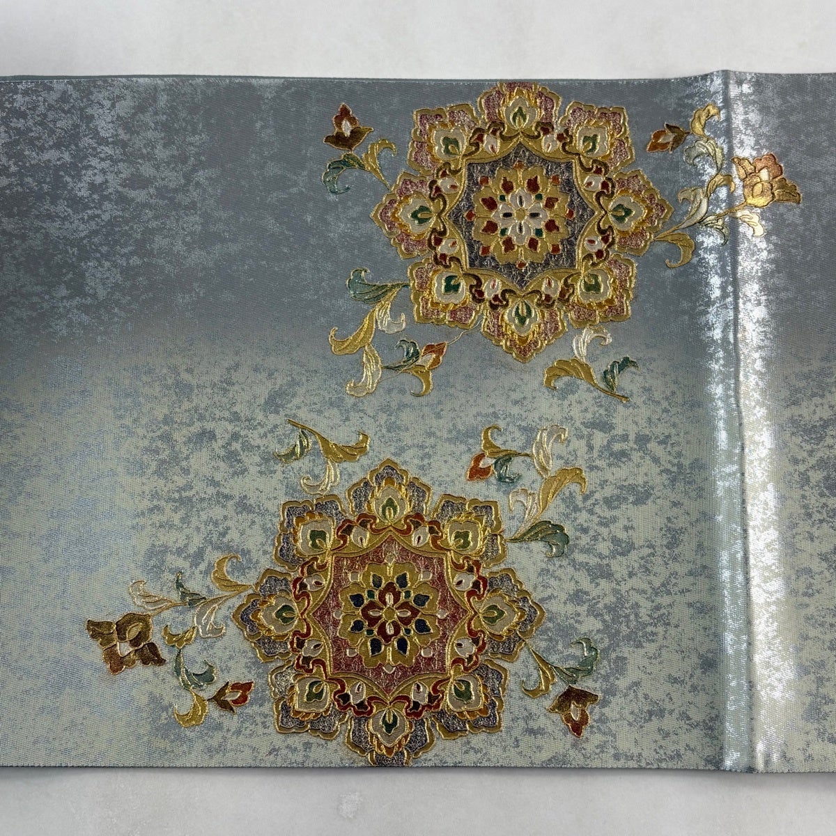 袋帯 秀品 花 立涌 金銀糸 箔 銀色 六通 正絹