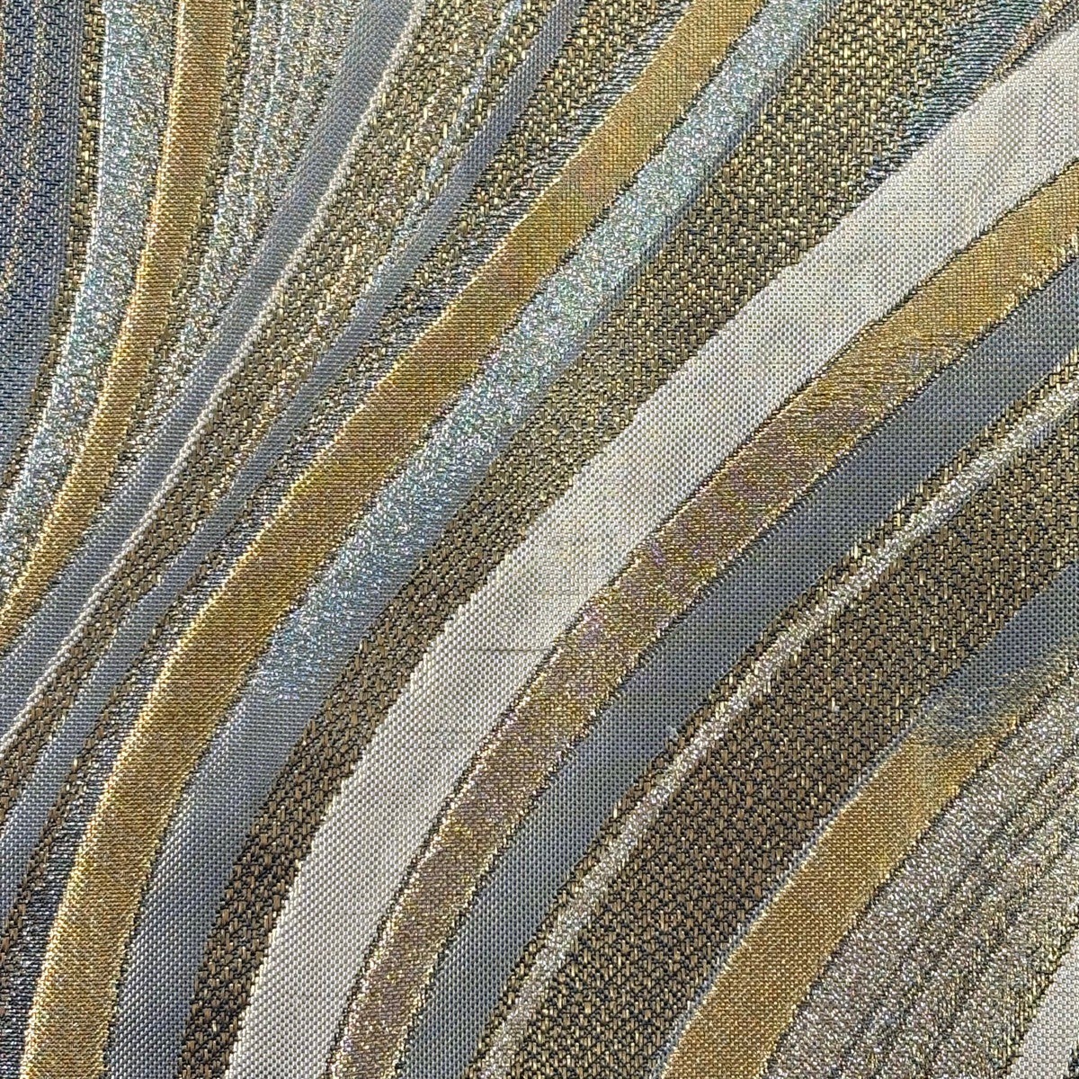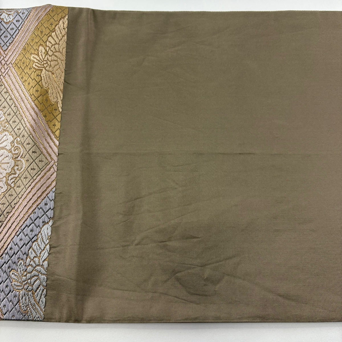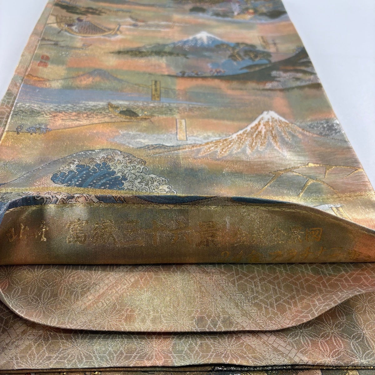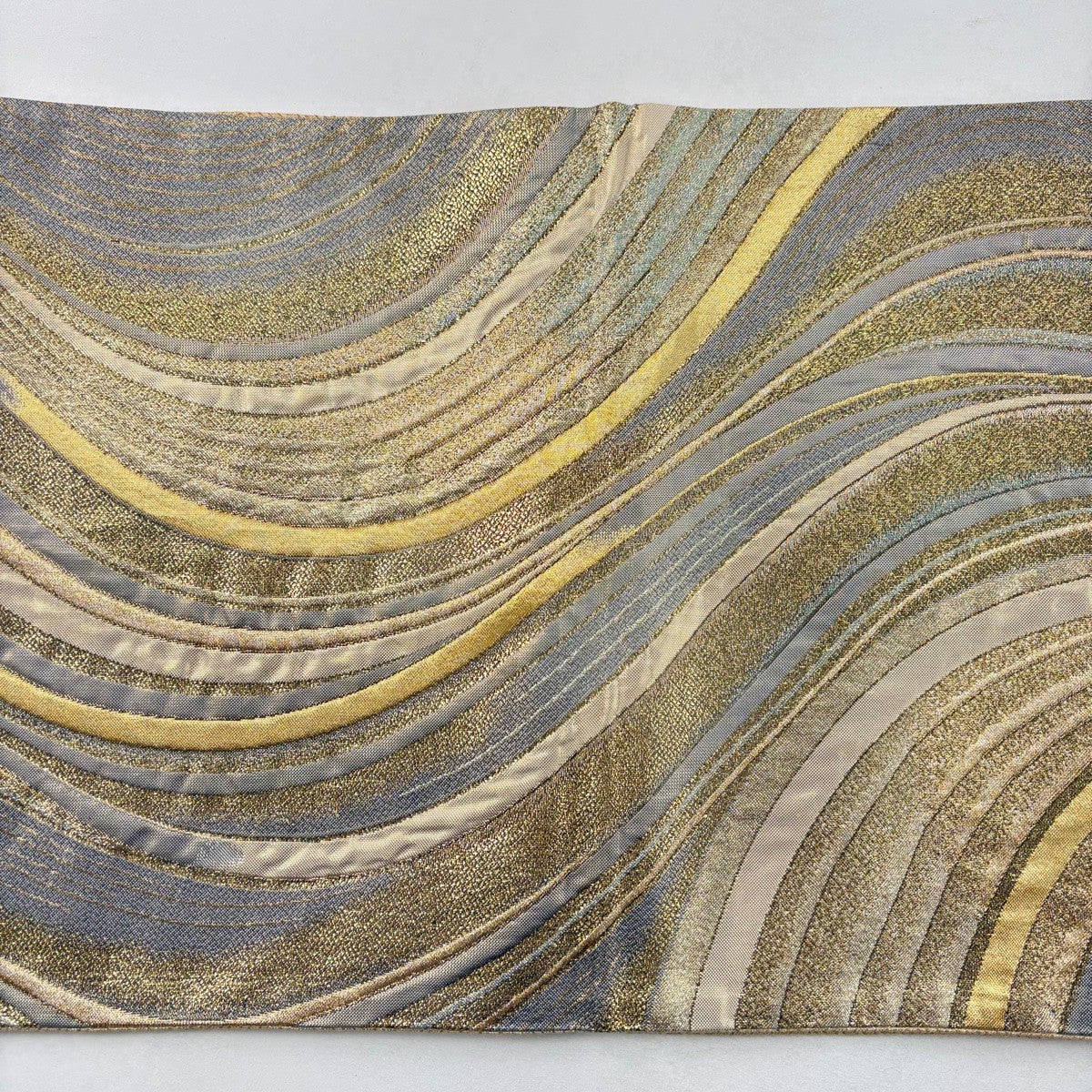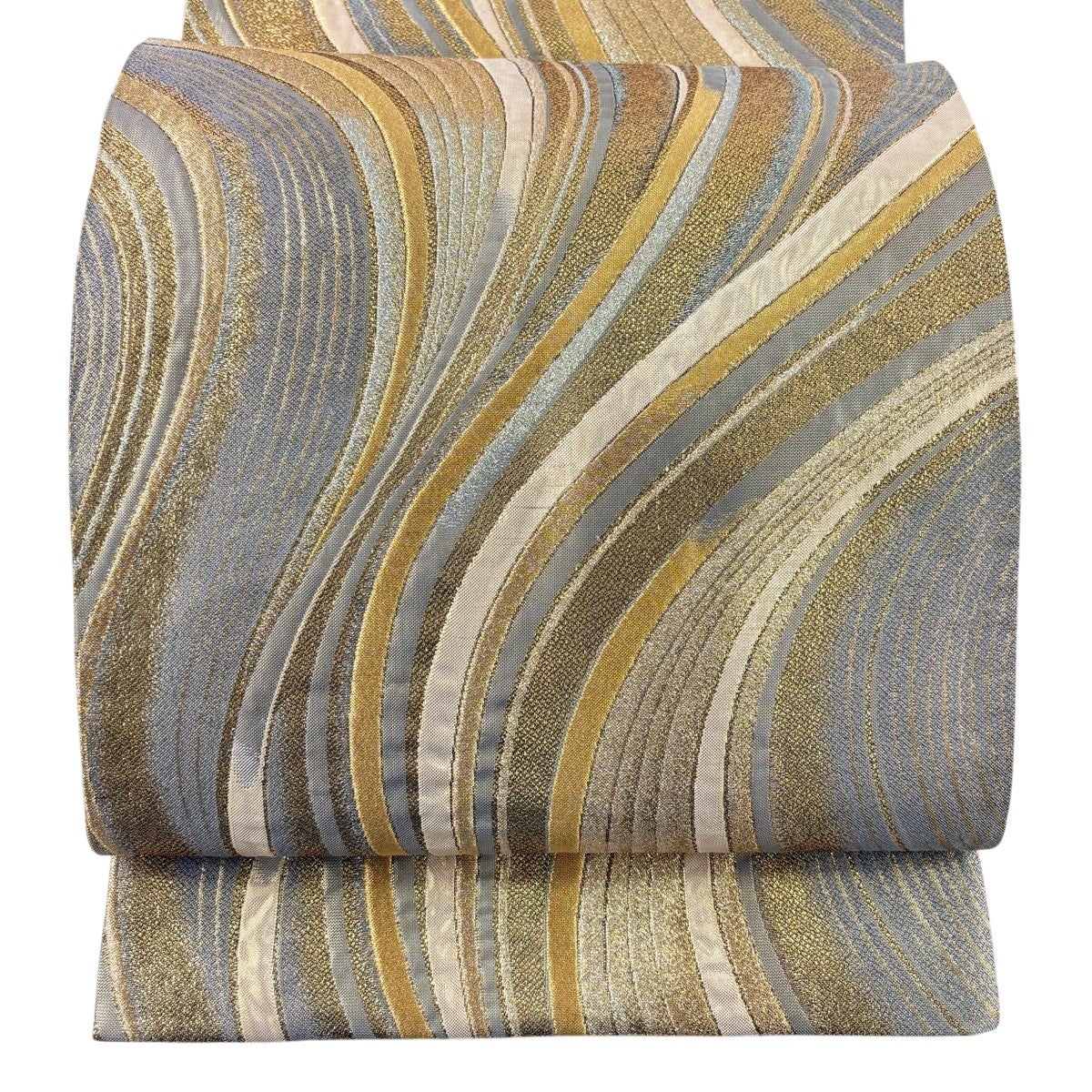 袋帯 秀品 波 桜 唐織 箔 灰緑 六通 正絹