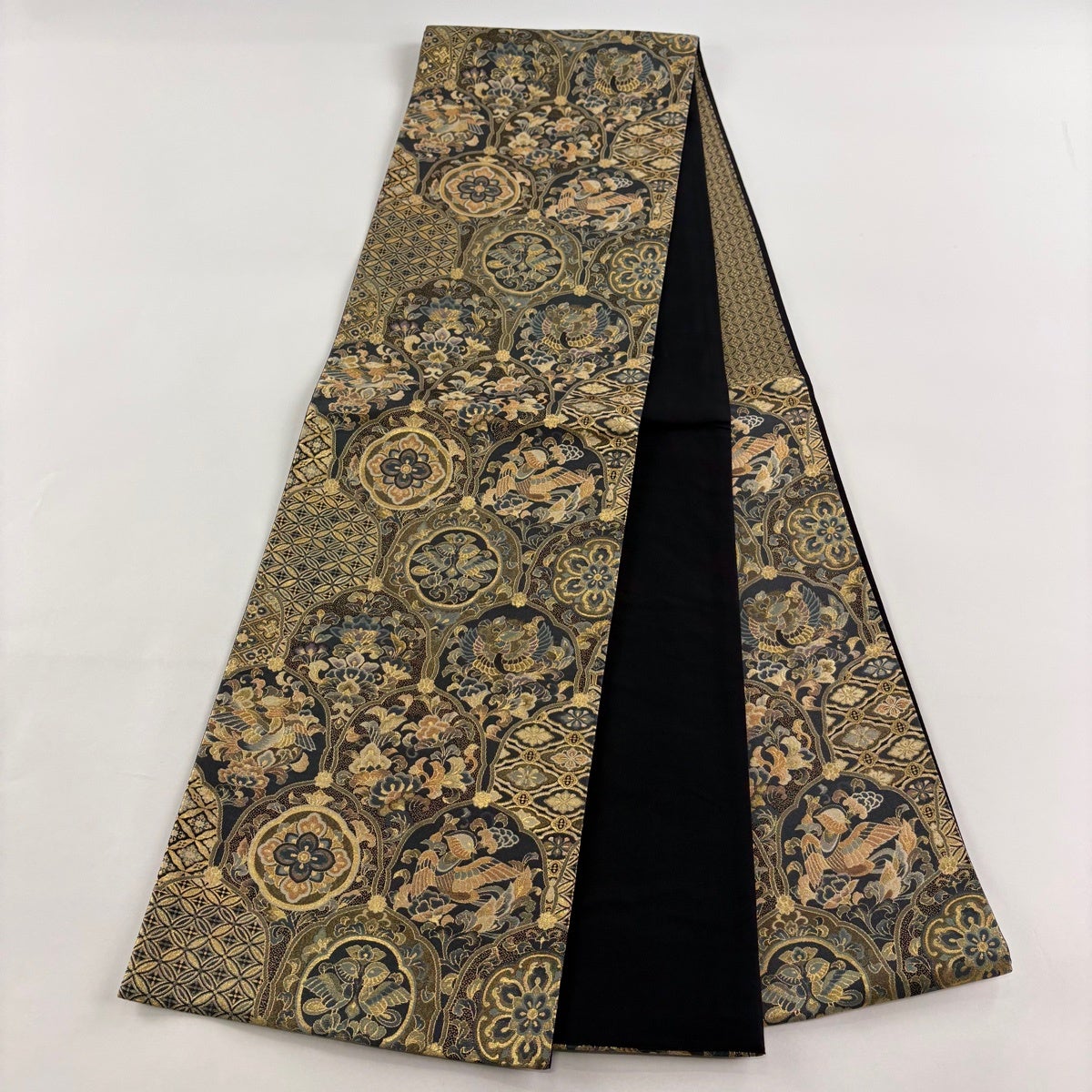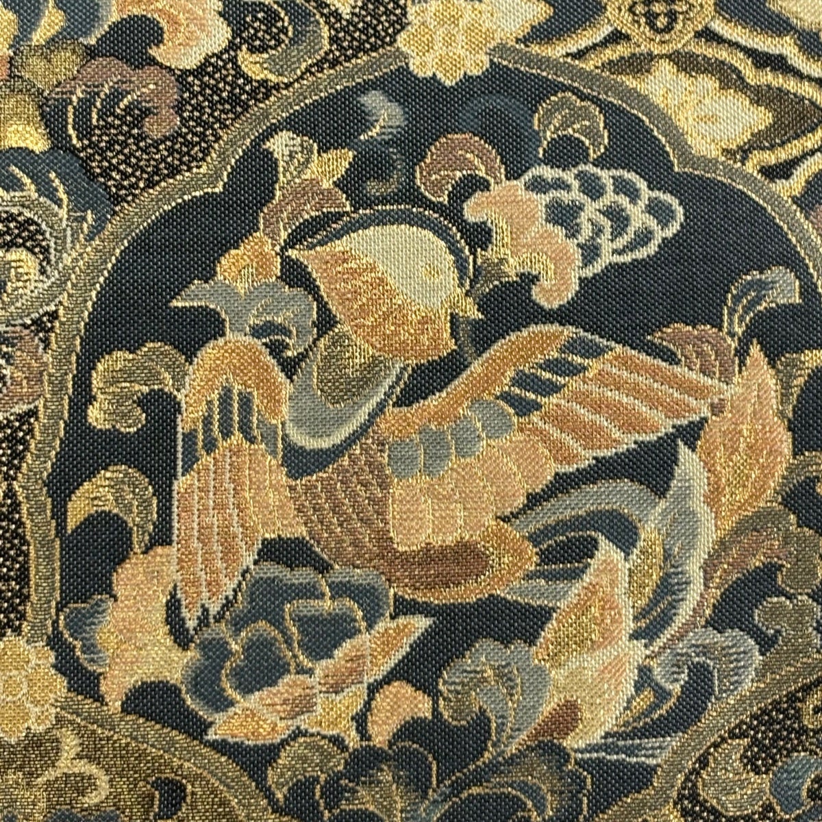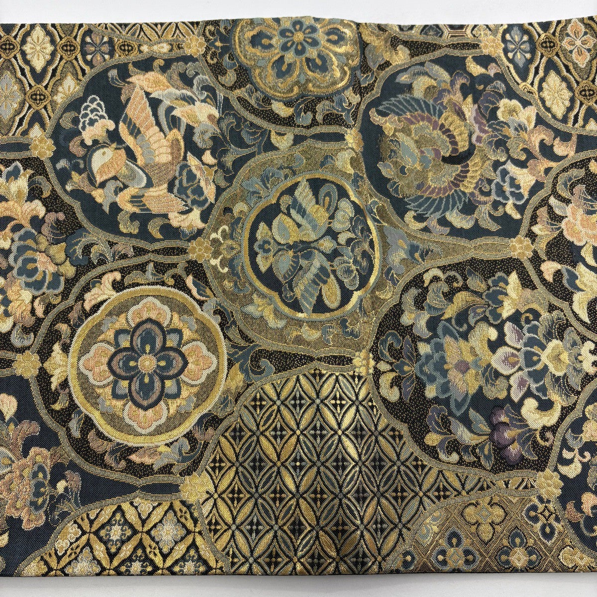 【美品】 袋帯 秀品 華文 鳥 金糸 箔 金色 六通 正絹