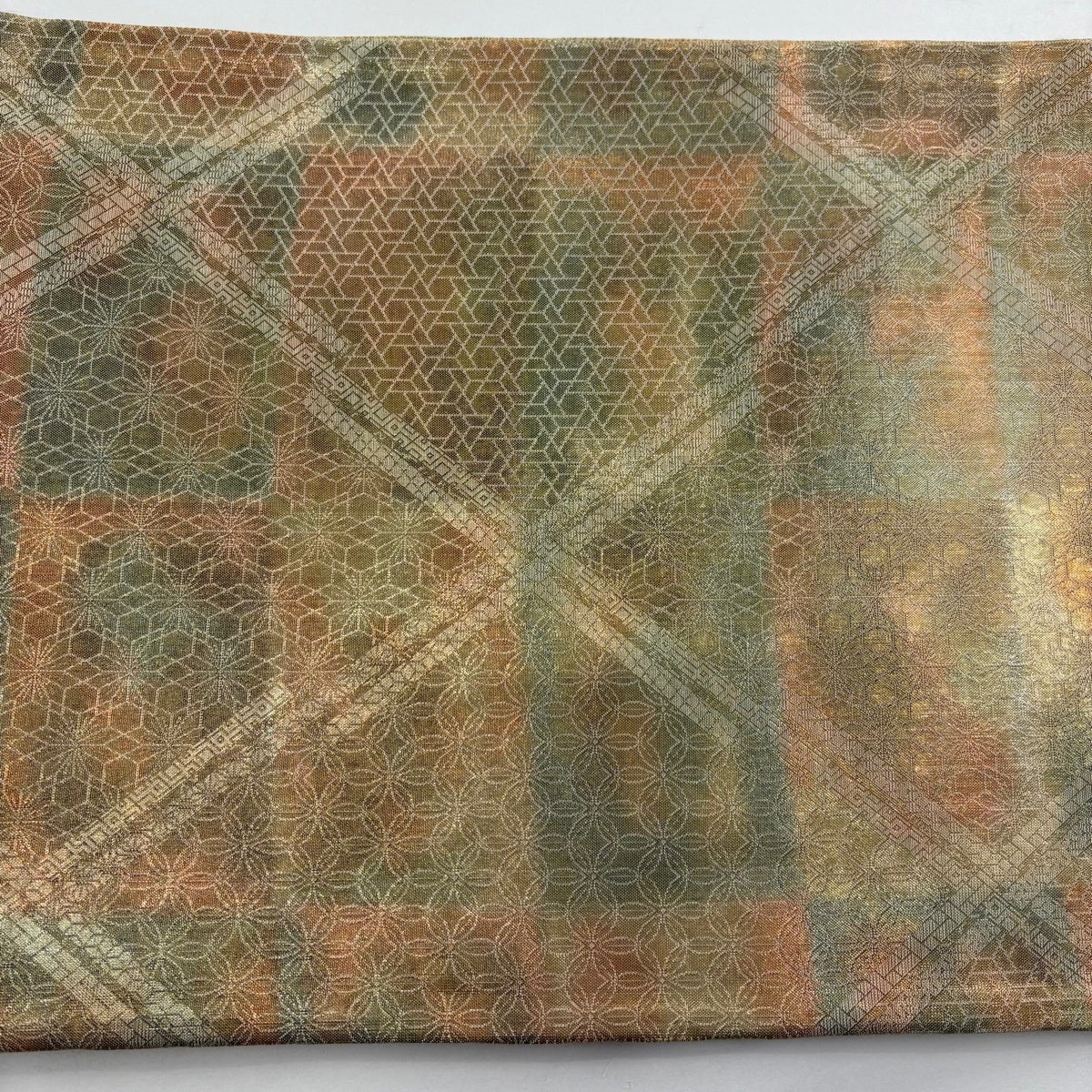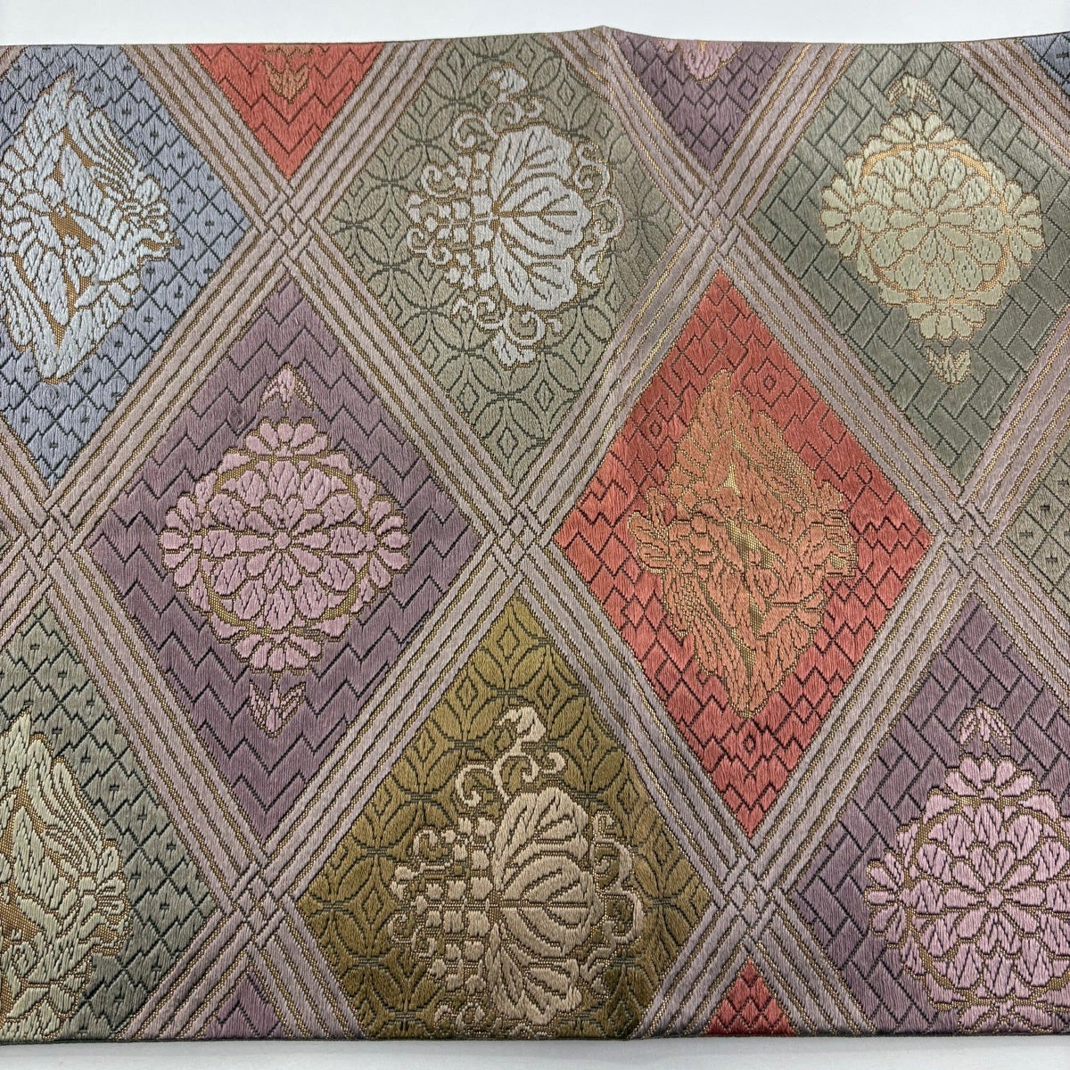 袋帯 秀品 華文 菱 金銀糸 刺繍 ピンクベージュ 六通 正絹