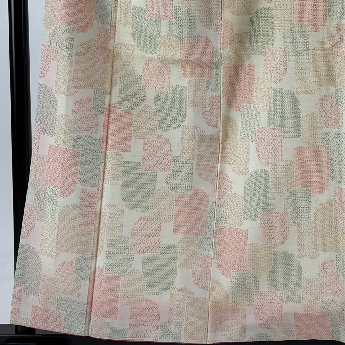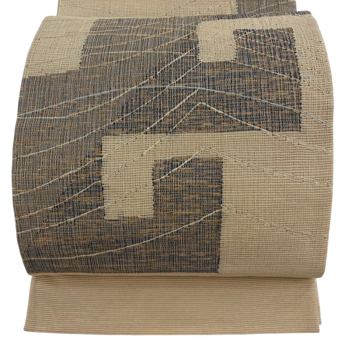 【美品】 名古屋帯 秀品 夏帯 八寸名古屋帯 松葉仕立て 幾何学 ベージュ 正絹