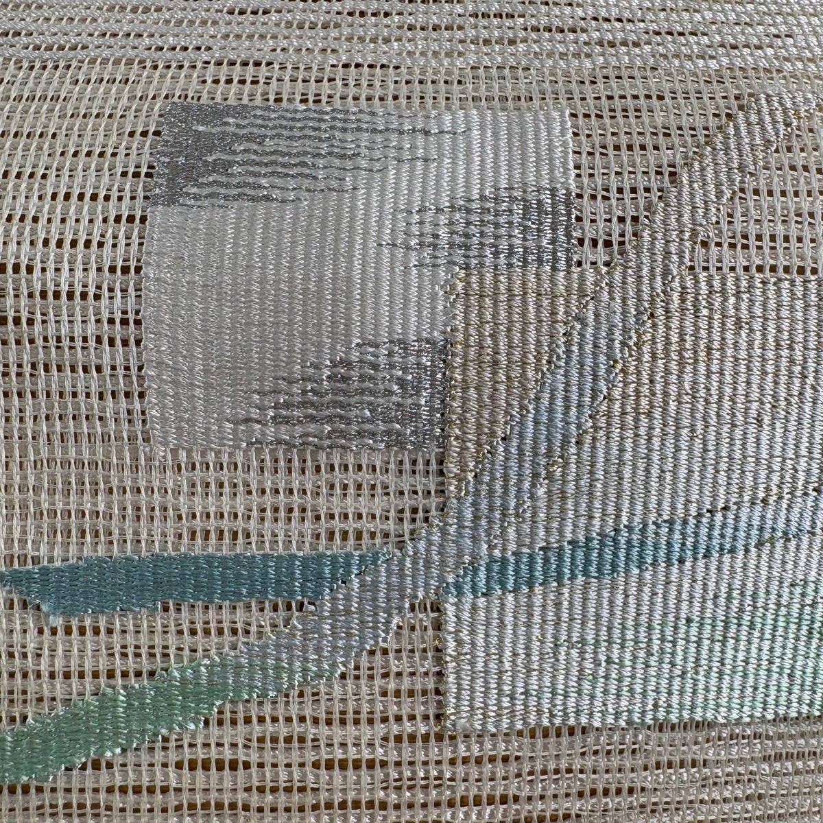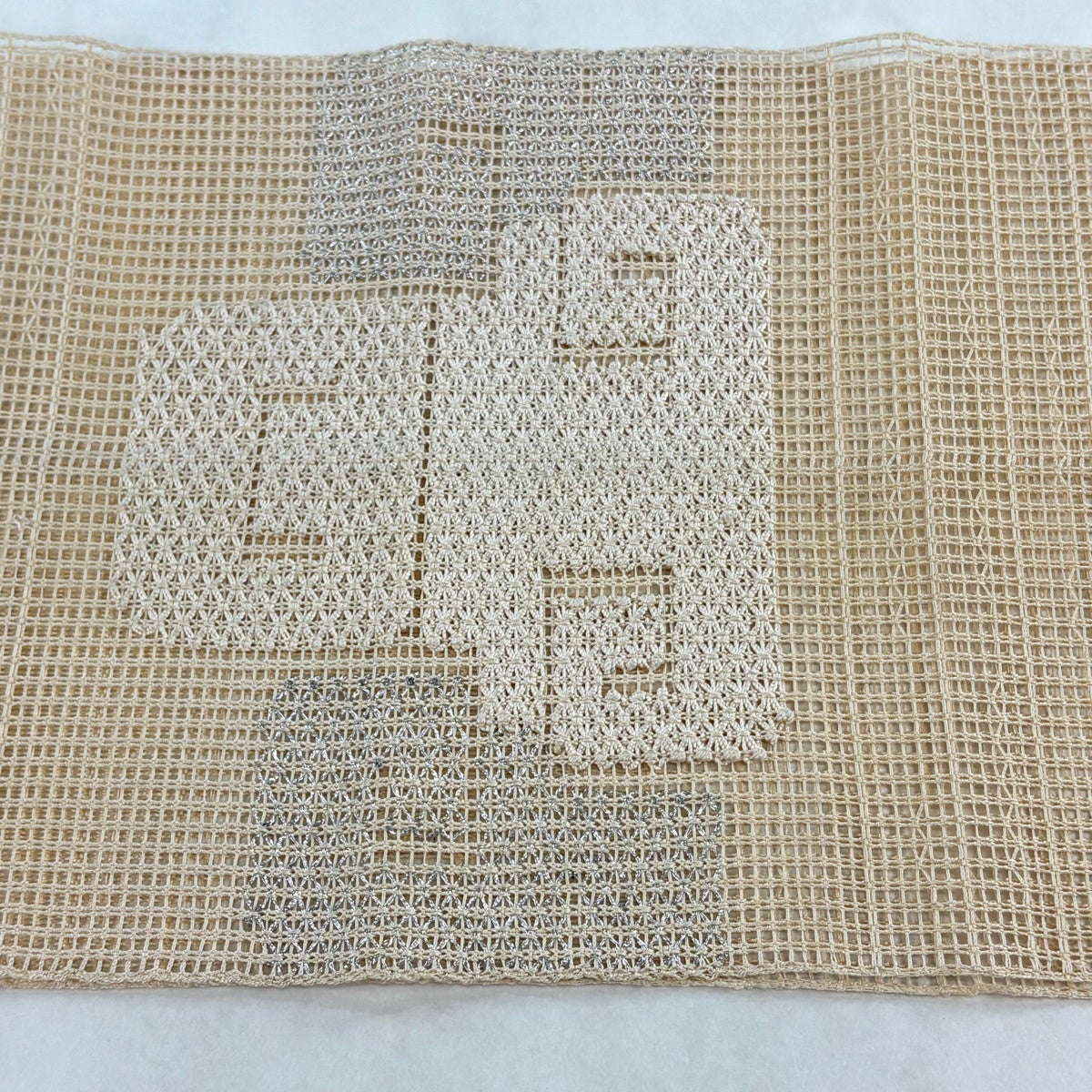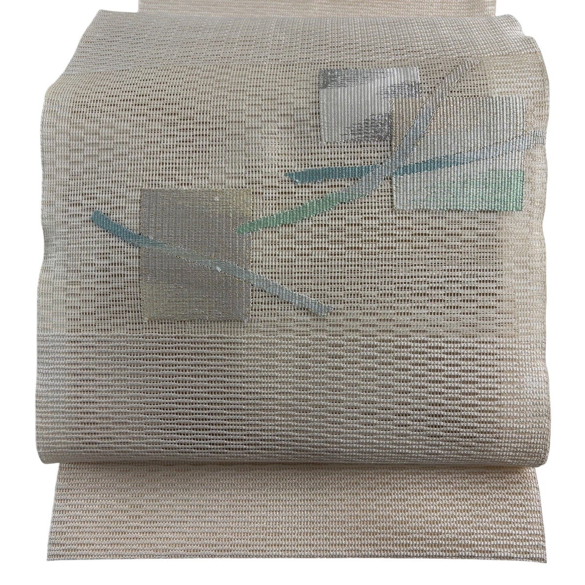 名古屋帯 秀品 夏帯 八寸名古屋帯 幾何学 銀糸 クリーム 正絹