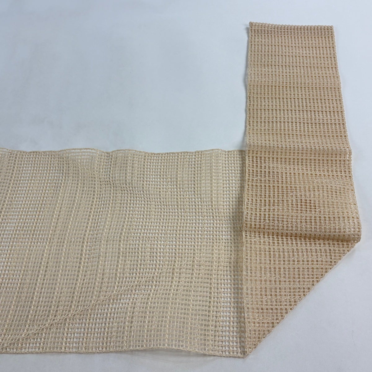 名古屋帯 秀品 夏帯 八寸名古屋帯 松葉仕立て トンネル仕立て 縞 ベージュ 正絹