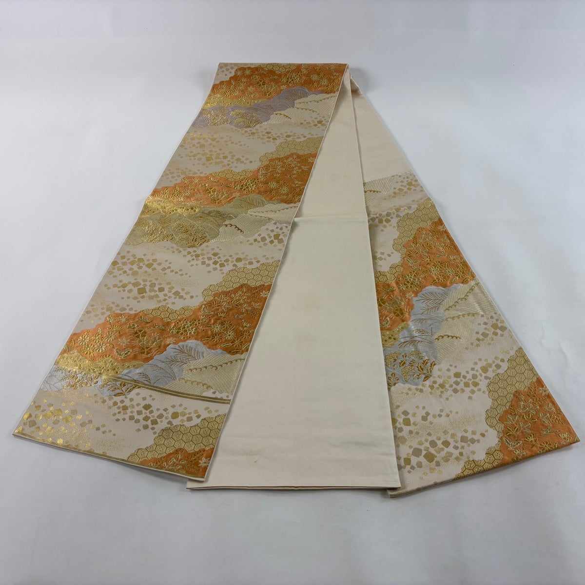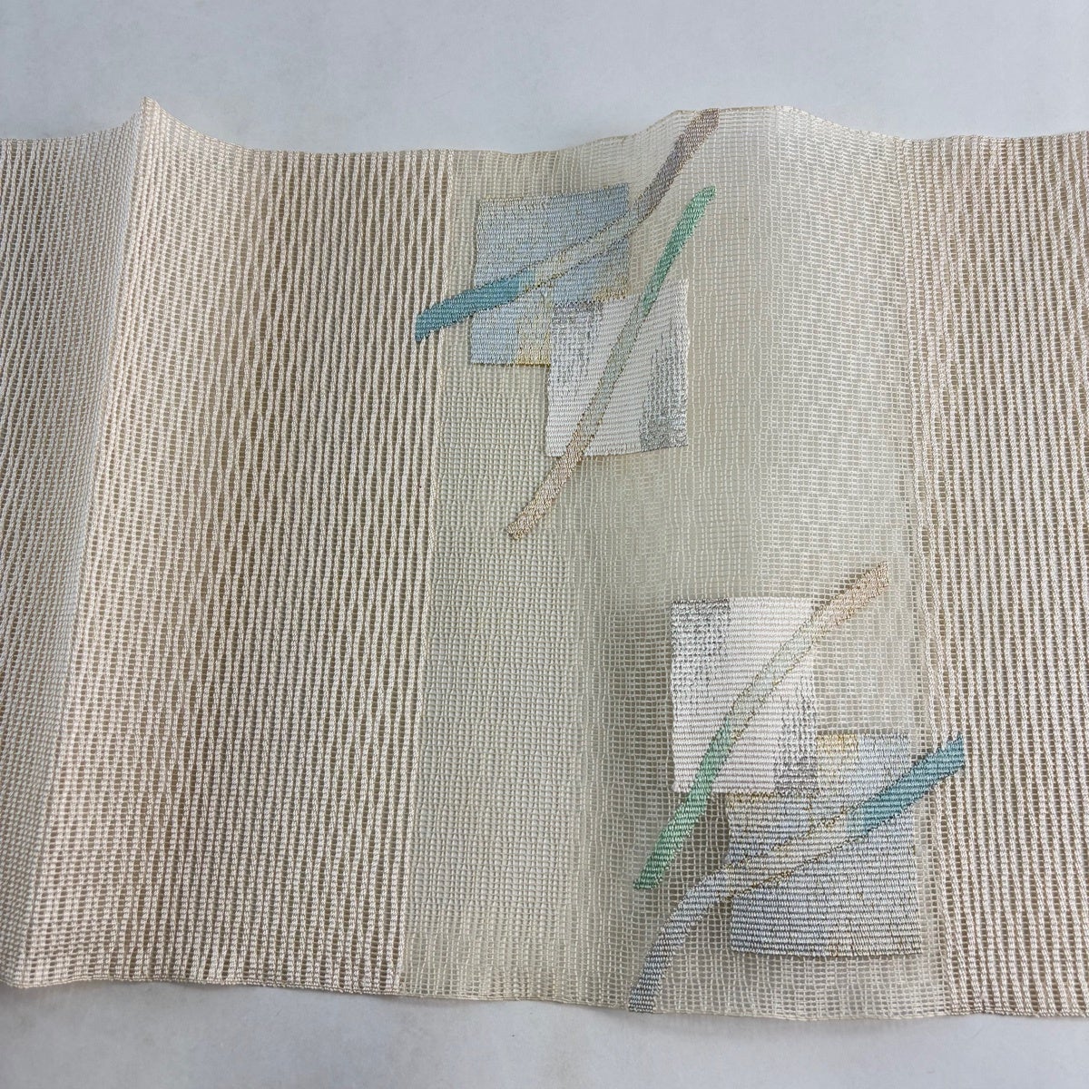 【美品】 袋帯 秀品 夏帯 幾何学模様 金銀糸 ベージュ 六通 正絹
